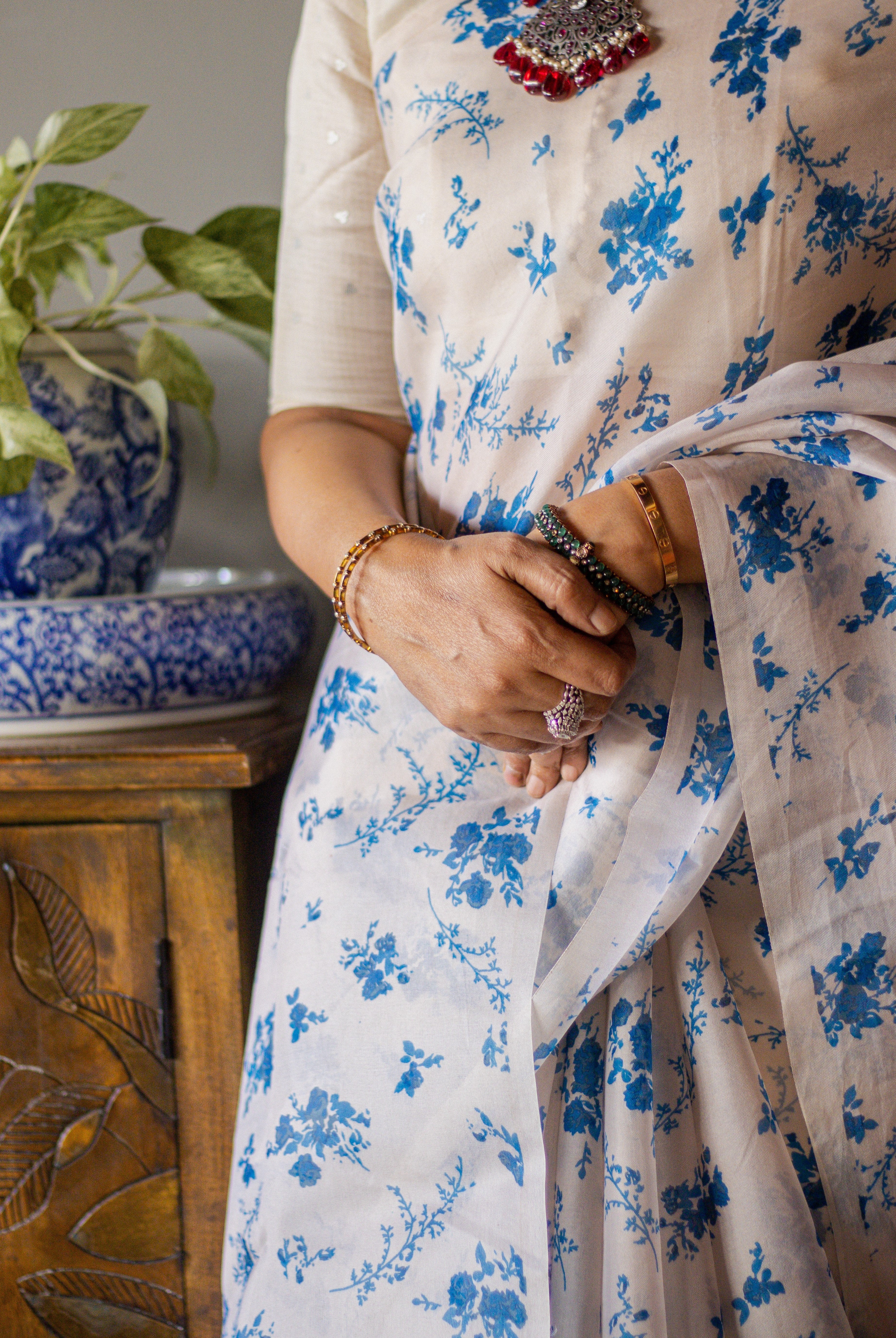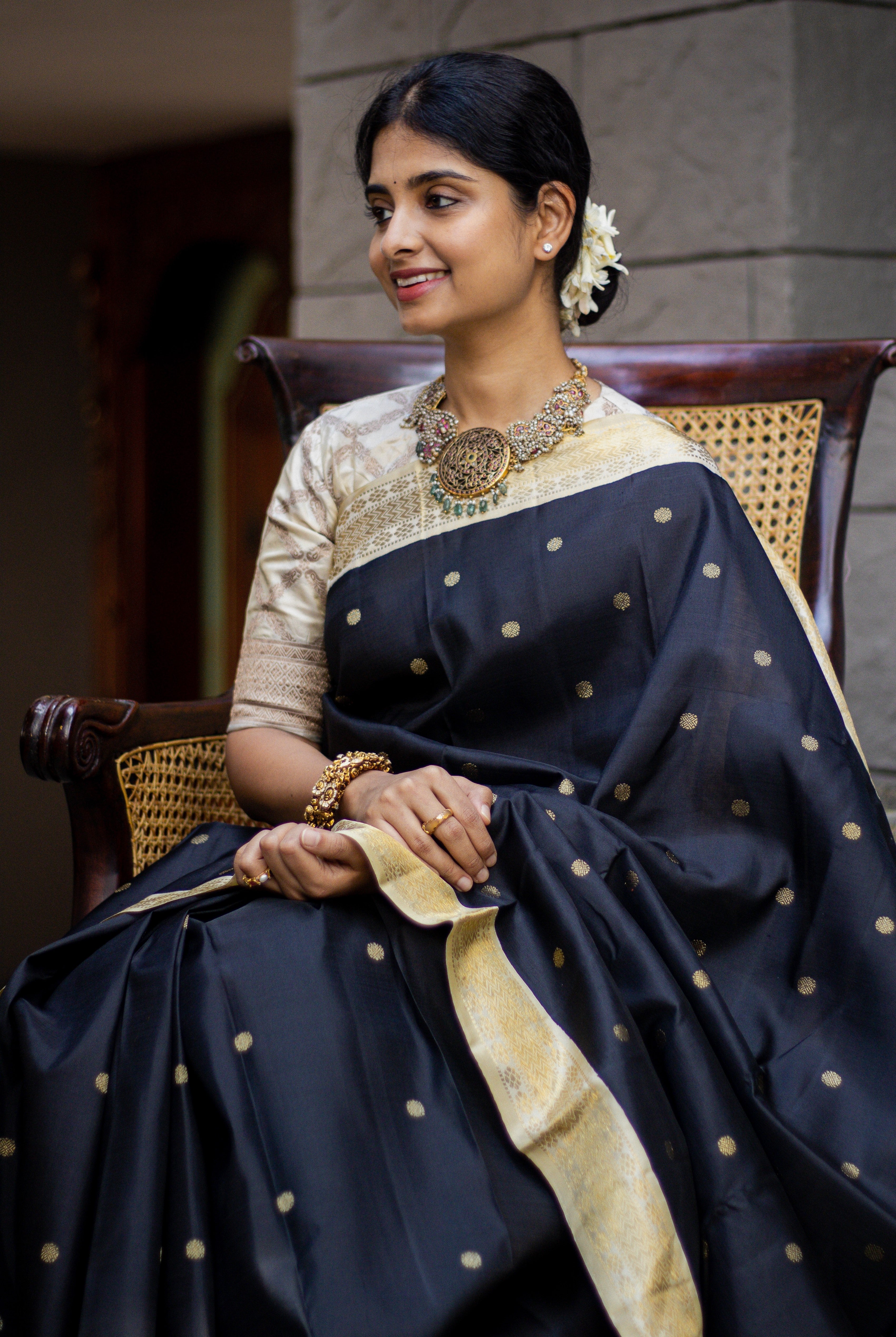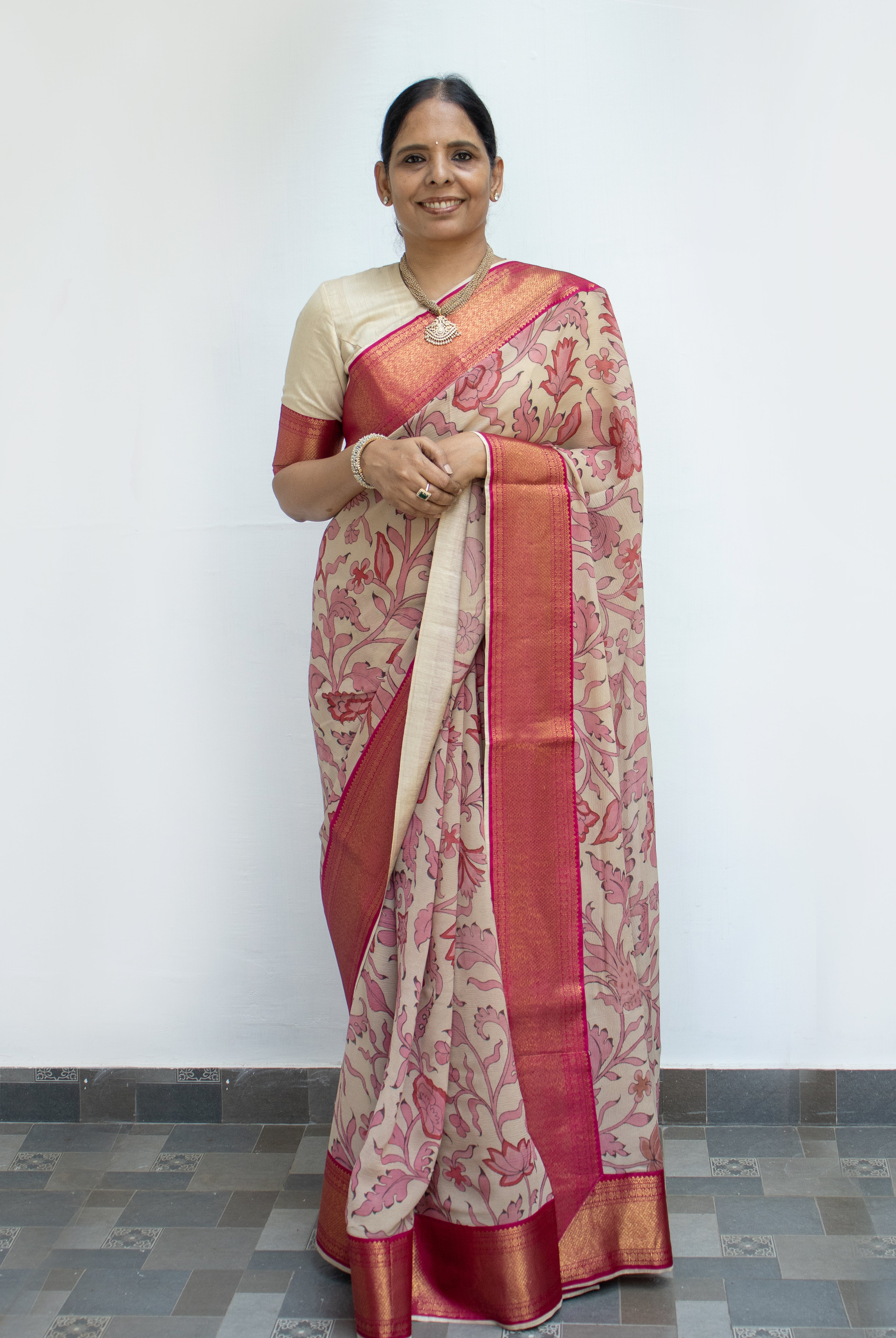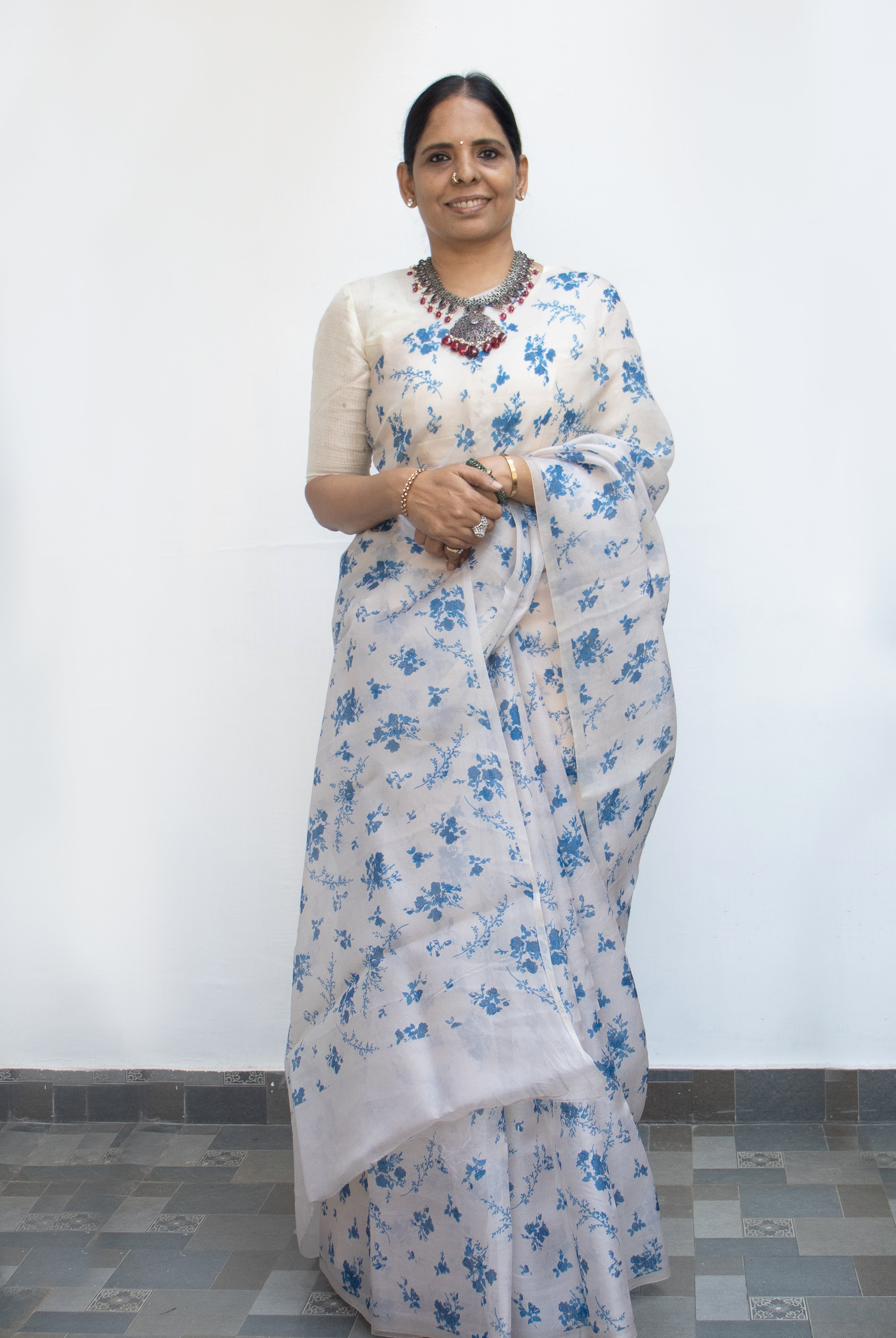 I remember the first of her sarees that I owned - a black and red chiffon saree - bought when she was operating from her home. Since then, I’ve been buying sarees from Shanti every time I visited Trivandrum (and online too) and each one has felt like a true find. Her eye for styling and detail is unmatched. Whether it’s a classic weave or something with a contemporary twist, every piece reflects her taste. Over the years, I’ve recommended her to several friends and each of them has been just as pleased as I am
