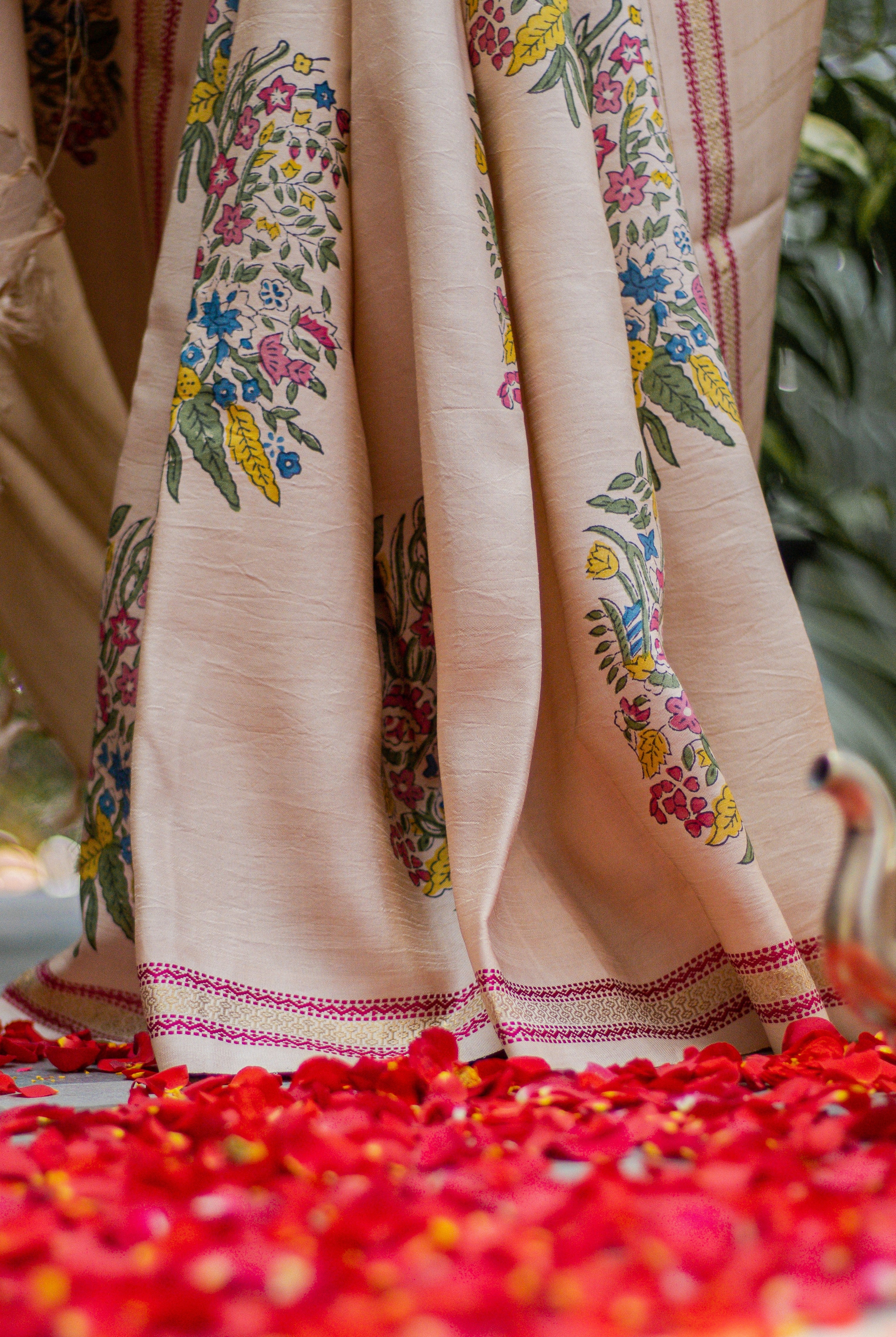 Silkyway's origin cannot be traced back to a design studio but to the quiet chambers of a family home in Kerala. Started to dress herself and close family, the passion project soon garnered word of mouth. What began in quiet devotion soon found a voice, carried softly from one heart to another, growing with every thread, every whispered praise.