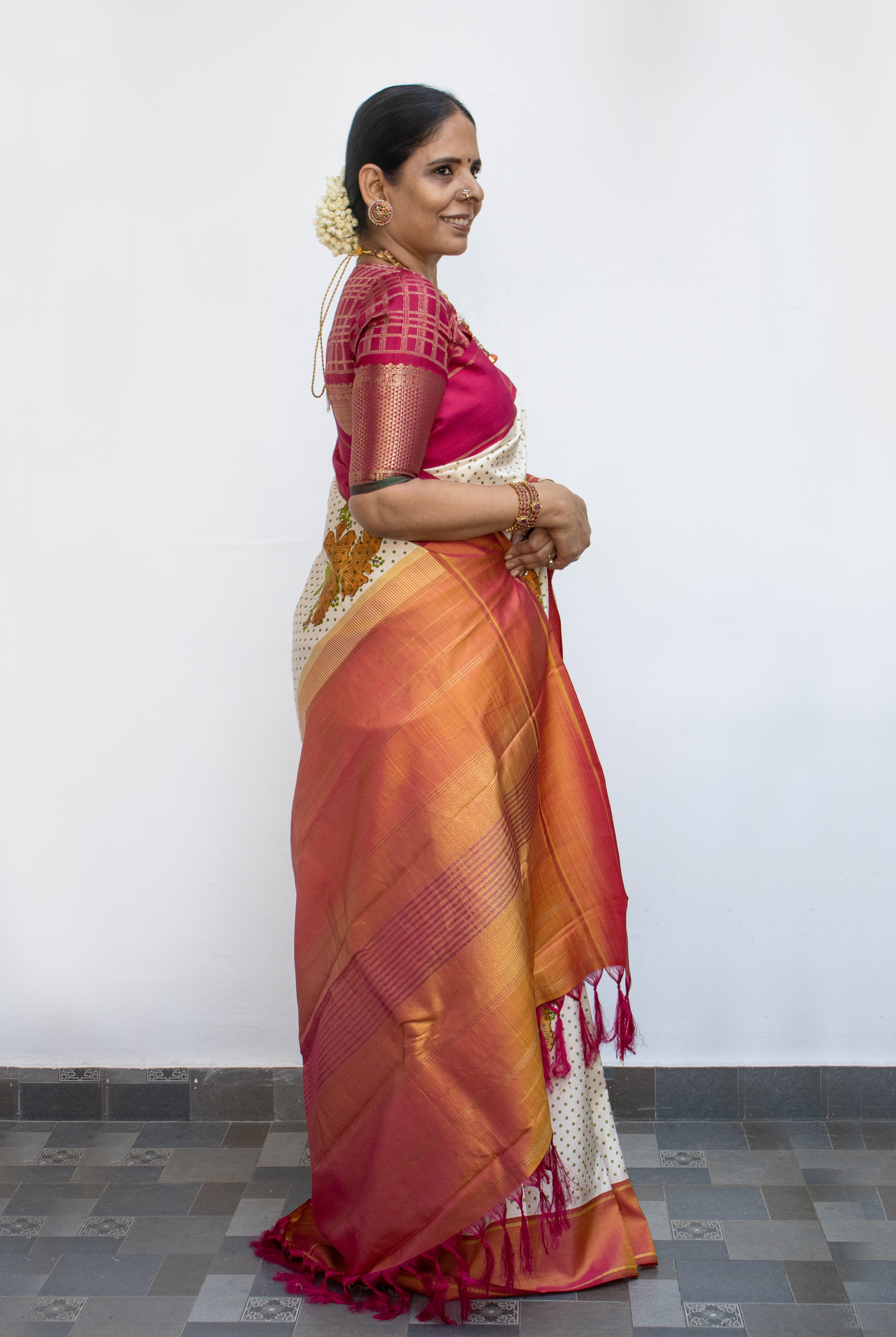 I wore it for my very first Sankranti after marriage. I was initially nervous about the day, but the way the saree draped so effortlessly and the endless "Where did you get that?" compliments from my new family—made me feel completely at ease. Now, every time I wear it, I’m back in that moment: my mother-in-law’s proud smile, the smell of fresh Pongal and the joy of feeling perfectly me while embracing new traditions.