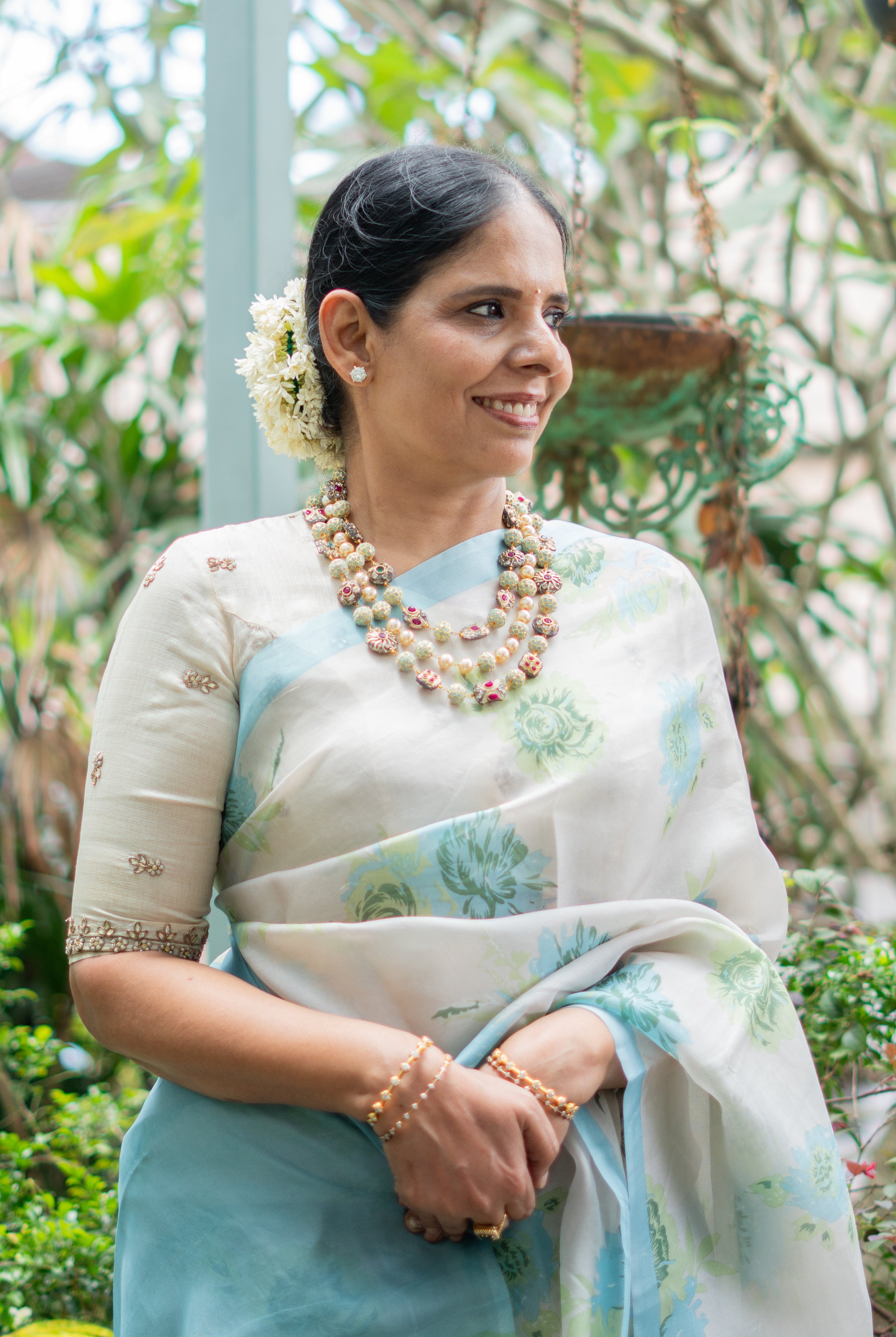I remember the first of her sarees that I owned - a black and red chiffon saree - bought when she was operating from her home. Since then, I’ve been buying sarees from Shanti every time I visited Trivandrum (and online too) and each one has felt like a true find. Her eye for styling and detail is unmatched. Whether it’s a classic weave or something with a contemporary twist, every piece reflects her taste. Over the years, I’ve recommended her to several friends and each of them has been just as pleased as I am