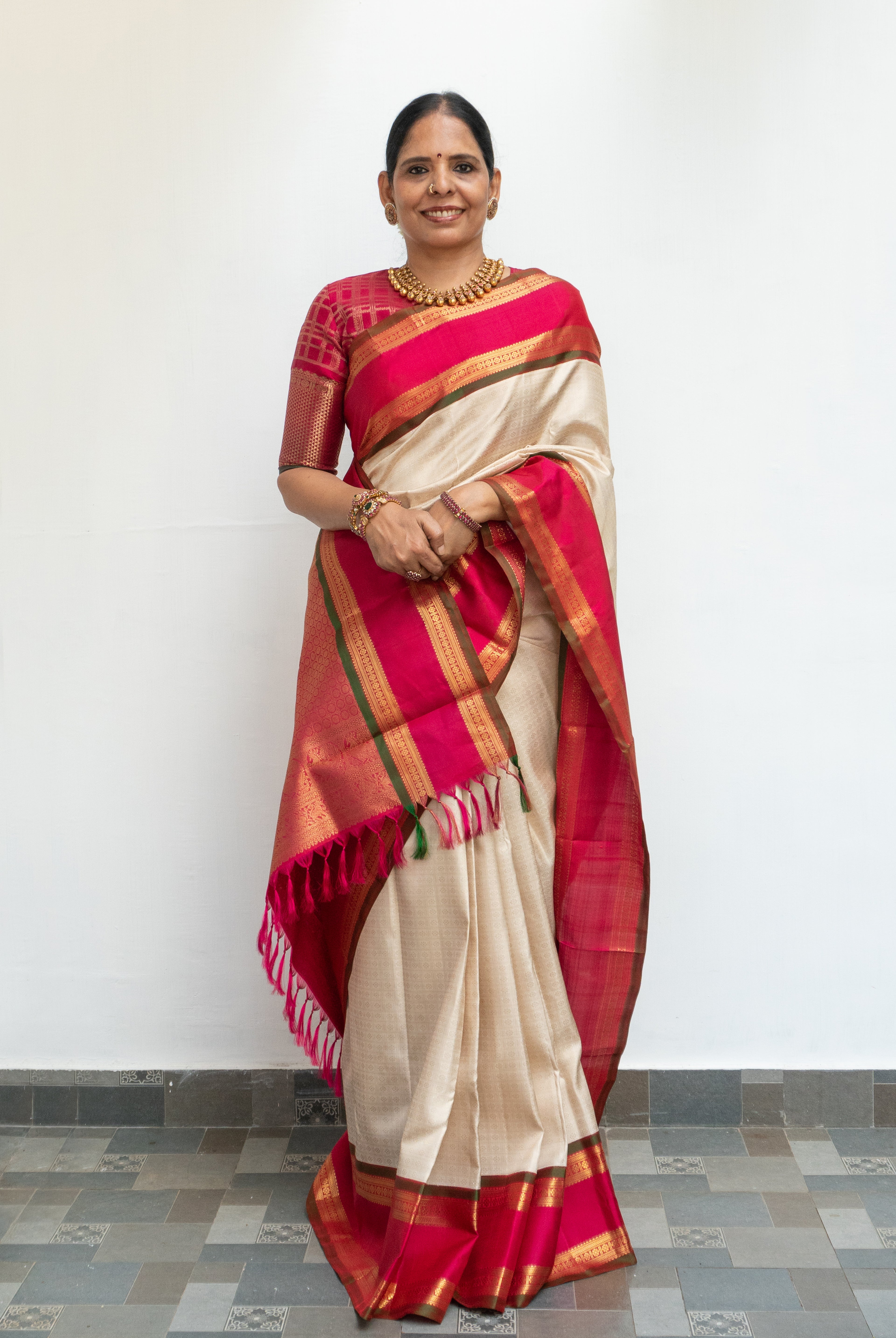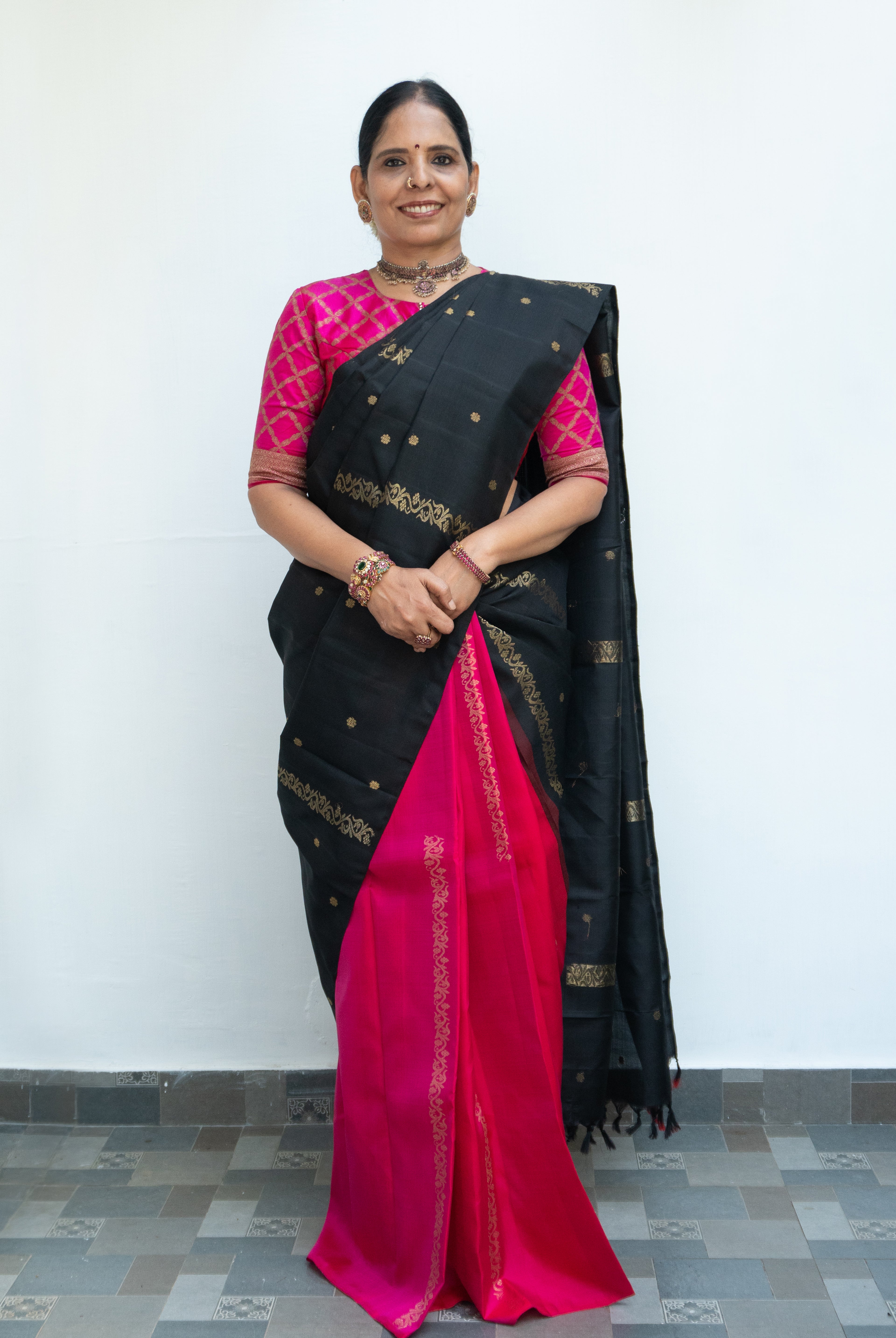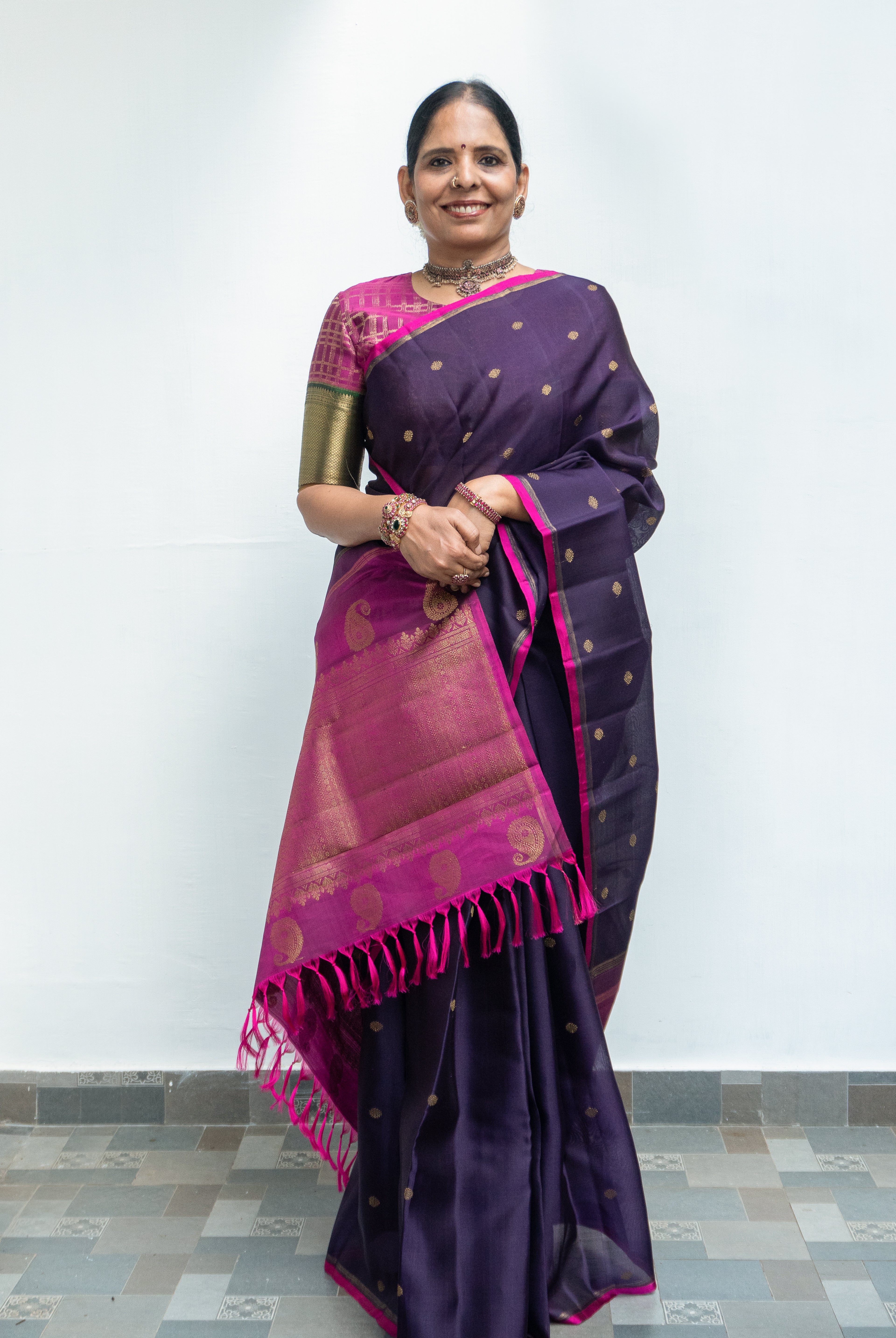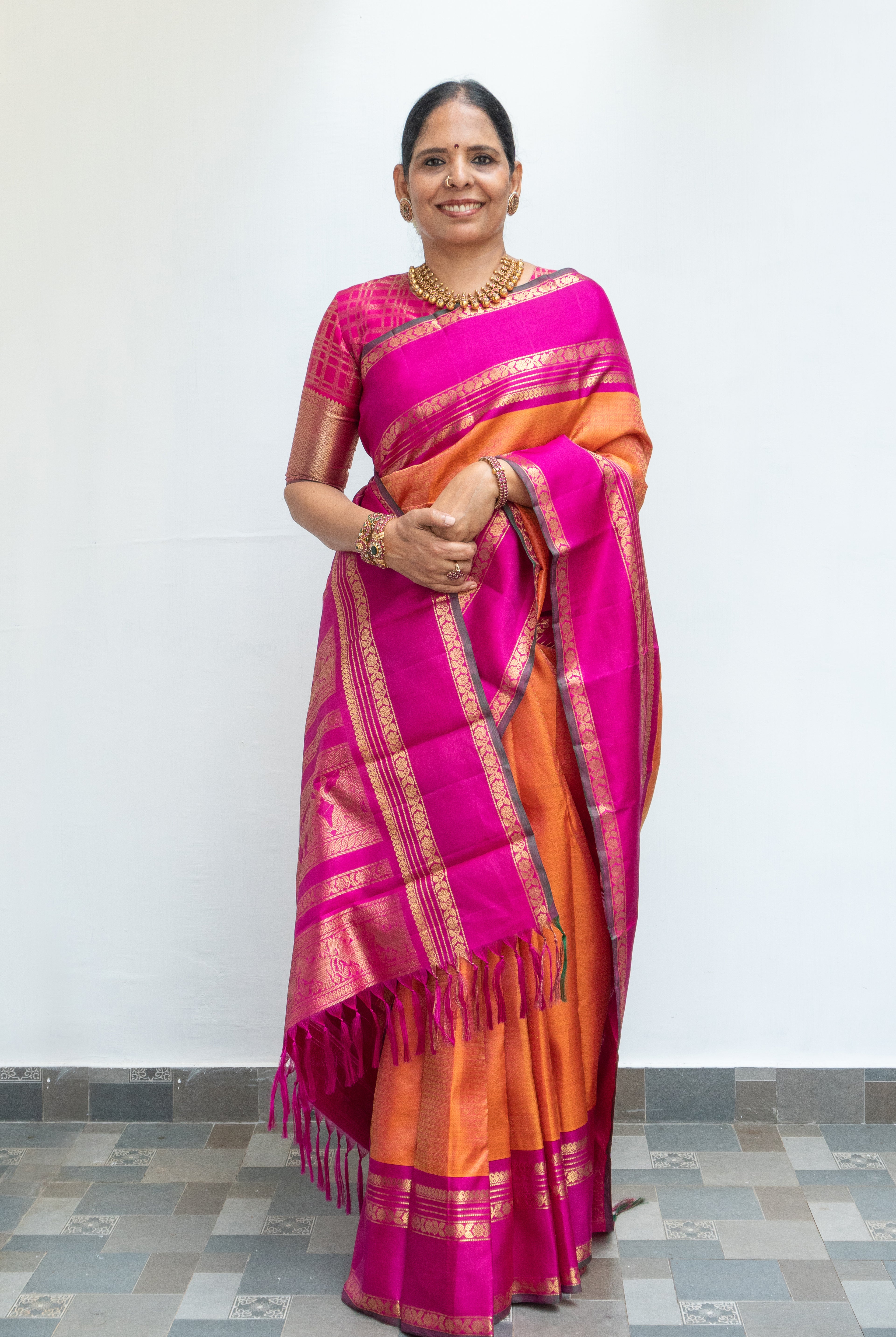 Santhi's Silkyway is a one stop solution for weddings, parties and regular wear. Her sarees are perfect examples of her exceptional craftsmanship and attention to detail. Her talent and creativity is remarkable that every piece is so beautiful and unique.Appreciate her sincere efforts and express my gratitude for helping us drape elegantly.