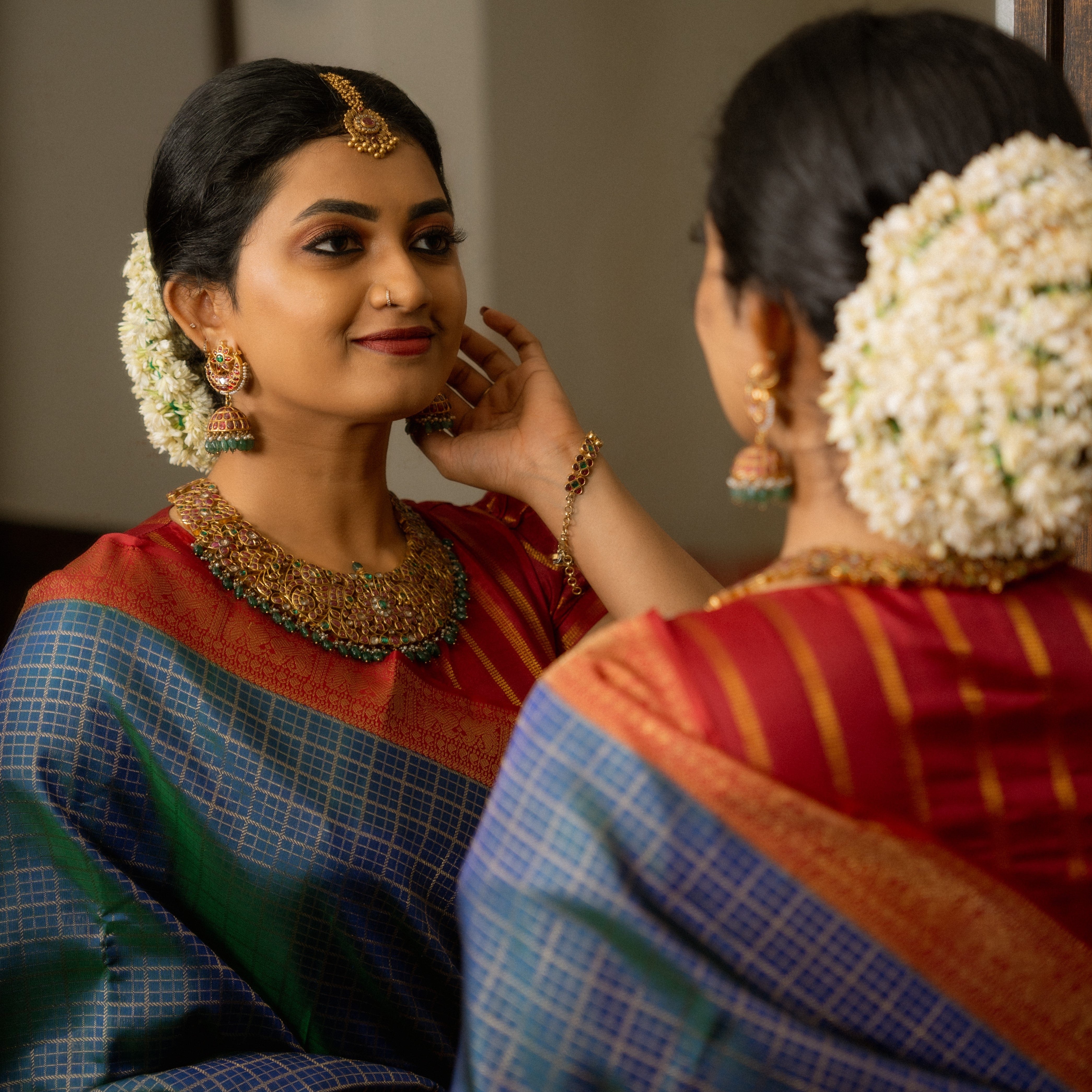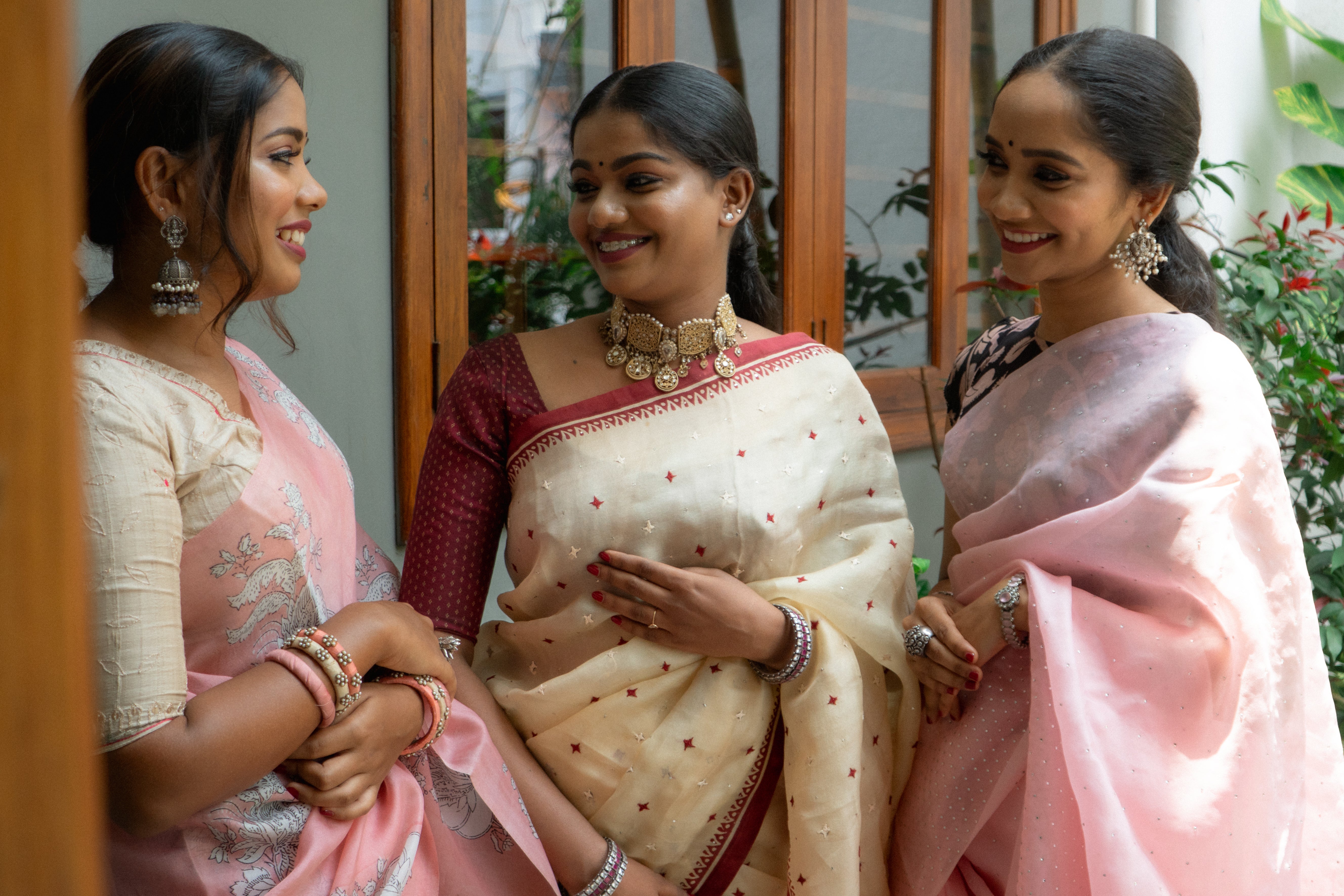 Silkyway's origin cannot be traced back to a design studio but to the quiet chambers of a family home in Kerala. Started to dress herself and close family, the passion project soon garnered word of mouth. What began in quiet devotion soon found a voice, carried softly from one heart to another, growing with every thread, every whispered praise.