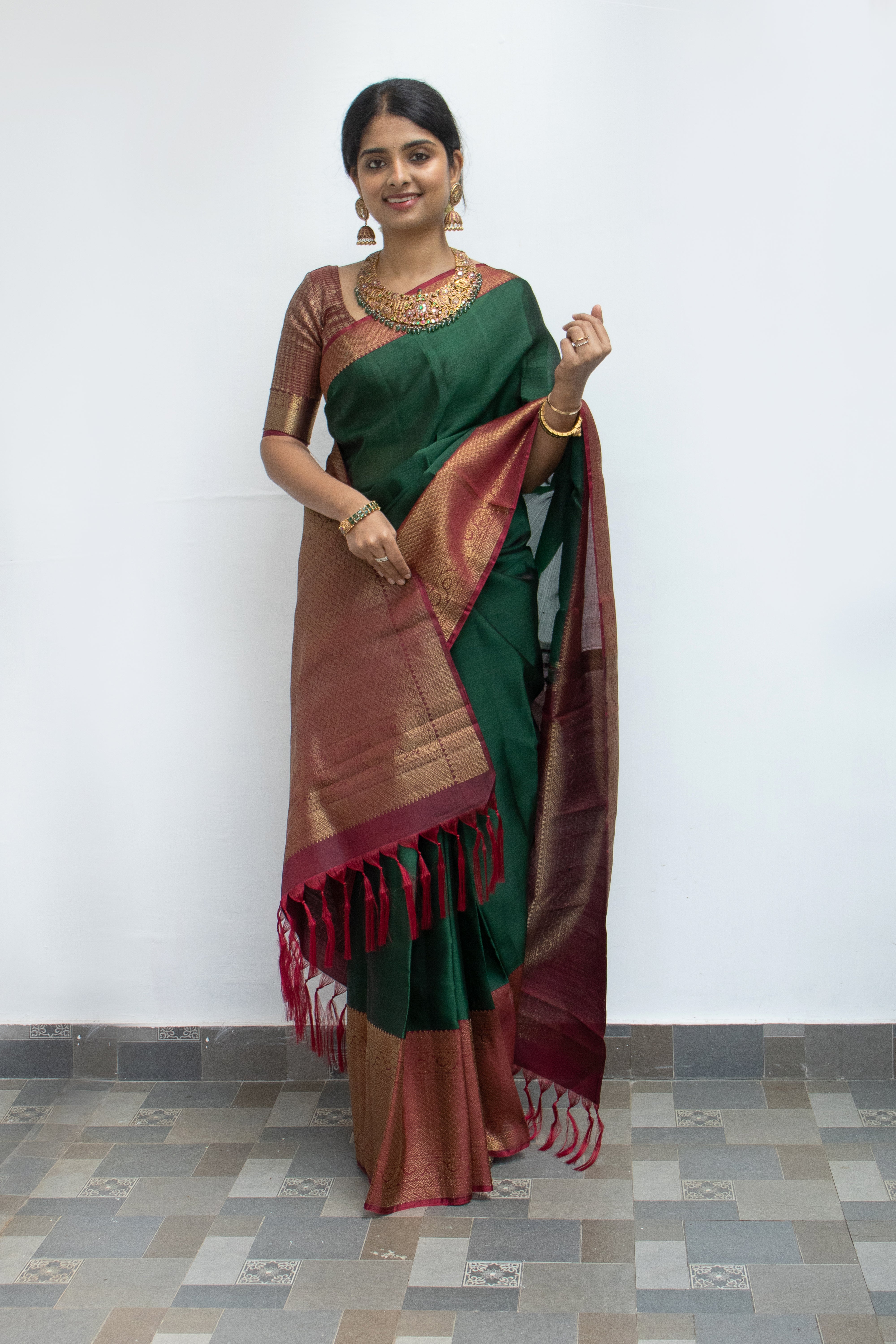 I wore it for my very first Sankranti after marriage. I was initially nervous about the day, but the way the saree draped so effortlessly and the endless "Where did you get that?" compliments from my new family—made me feel completely at ease. Now, every time I wear it, I’m back in that moment: my mother-in-law’s proud smile, the smell of fresh Pongal and the joy of feeling perfectly me while embracing new traditions.