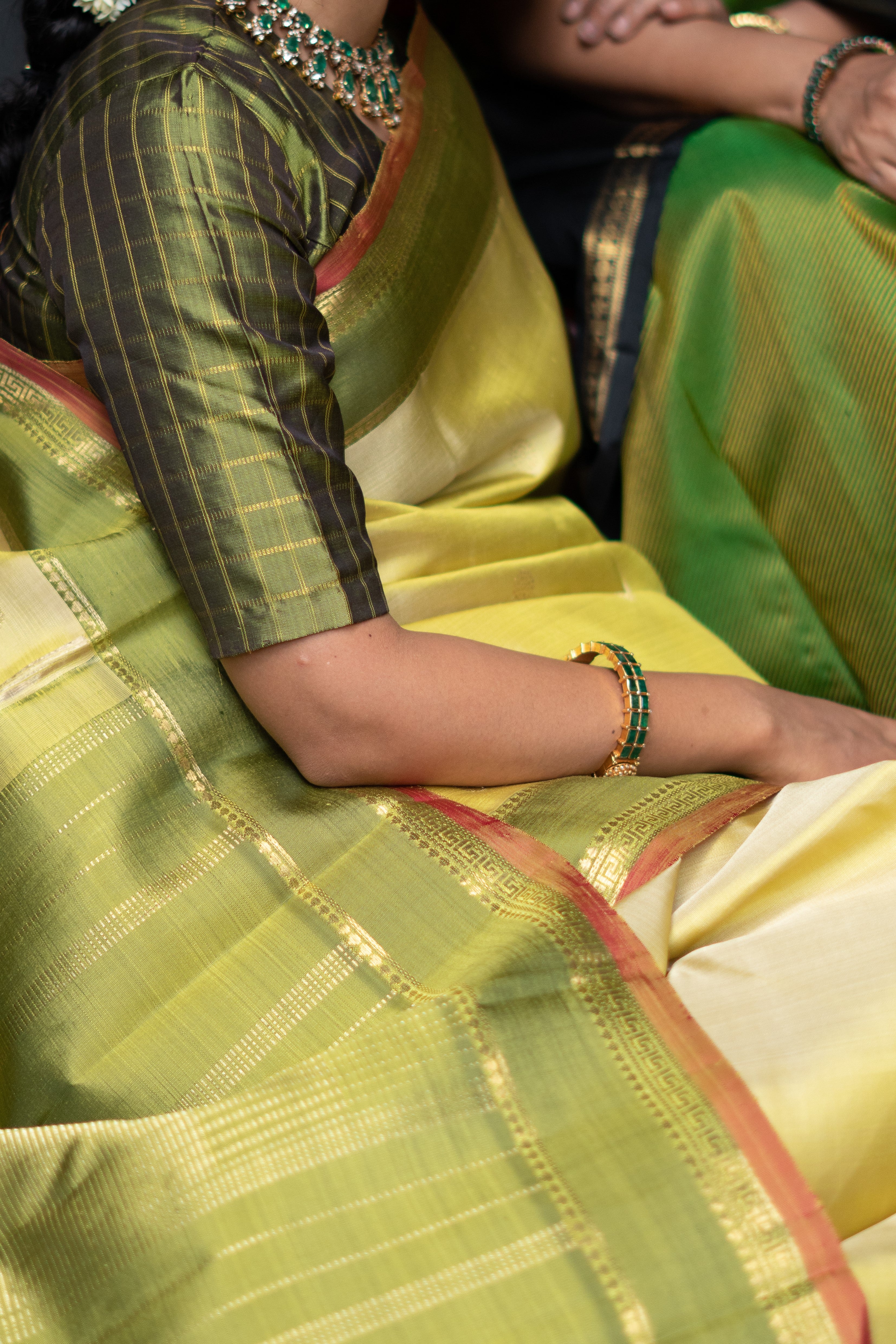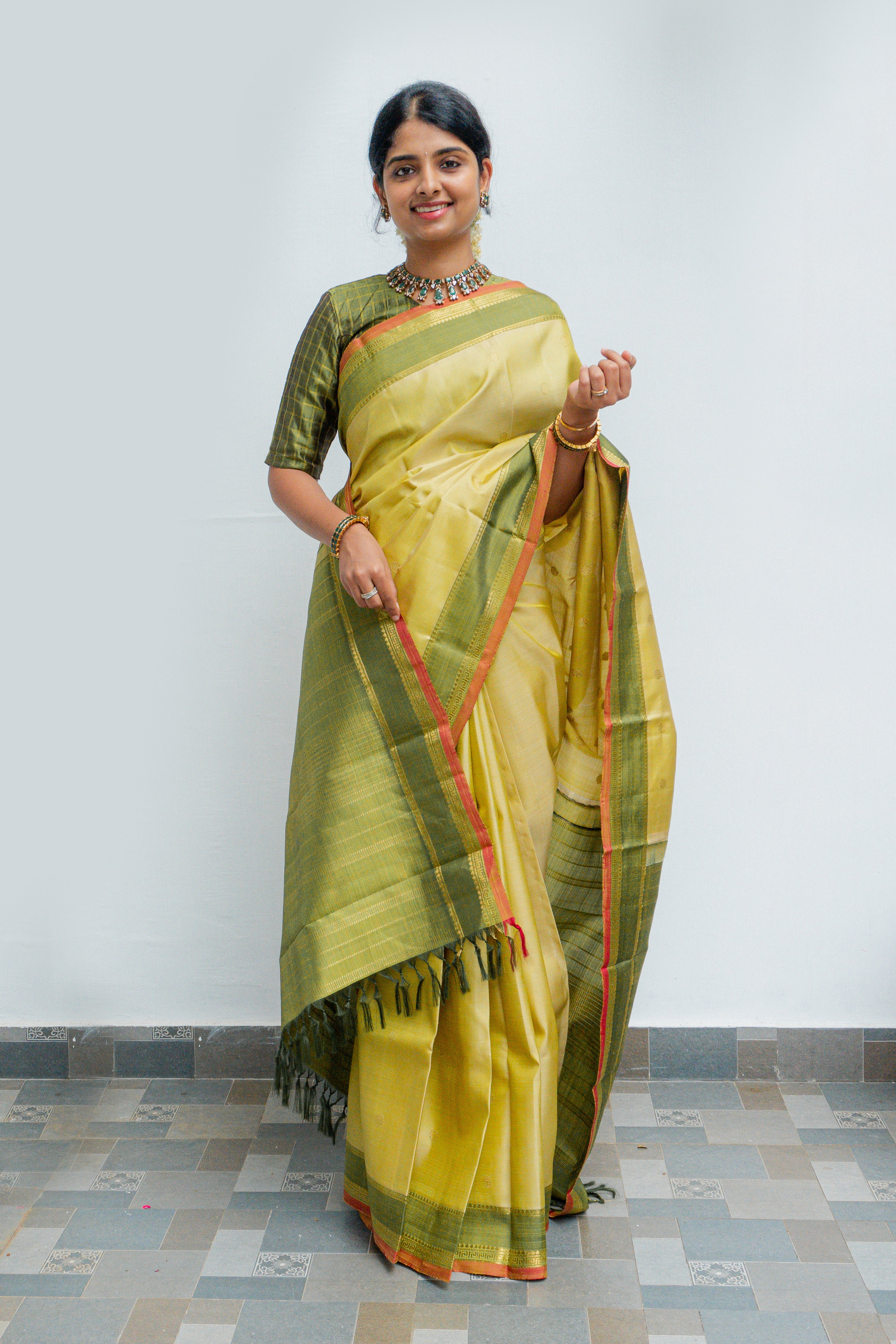Apple Green Kanjivaram Silk Saree with Olive Green Border