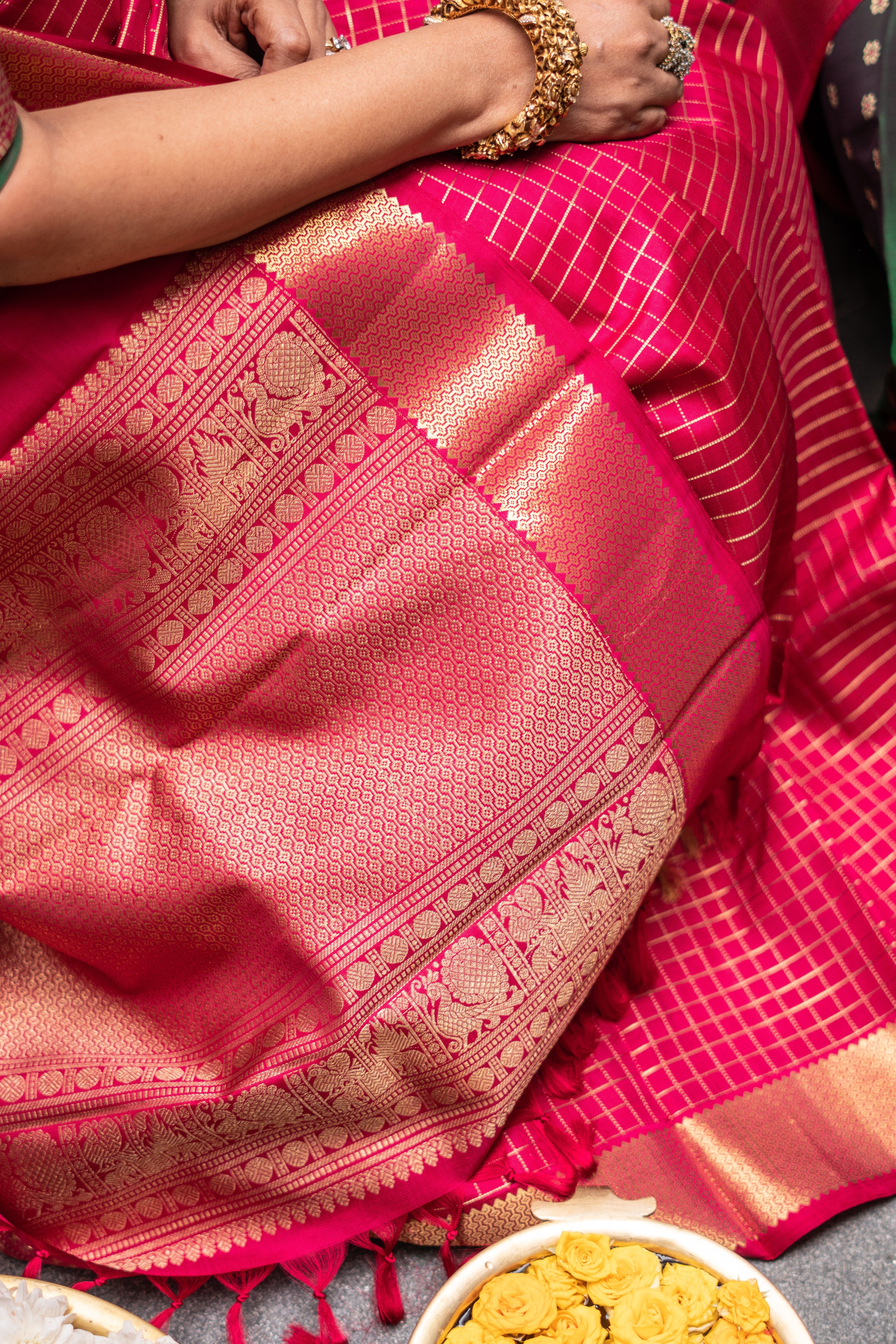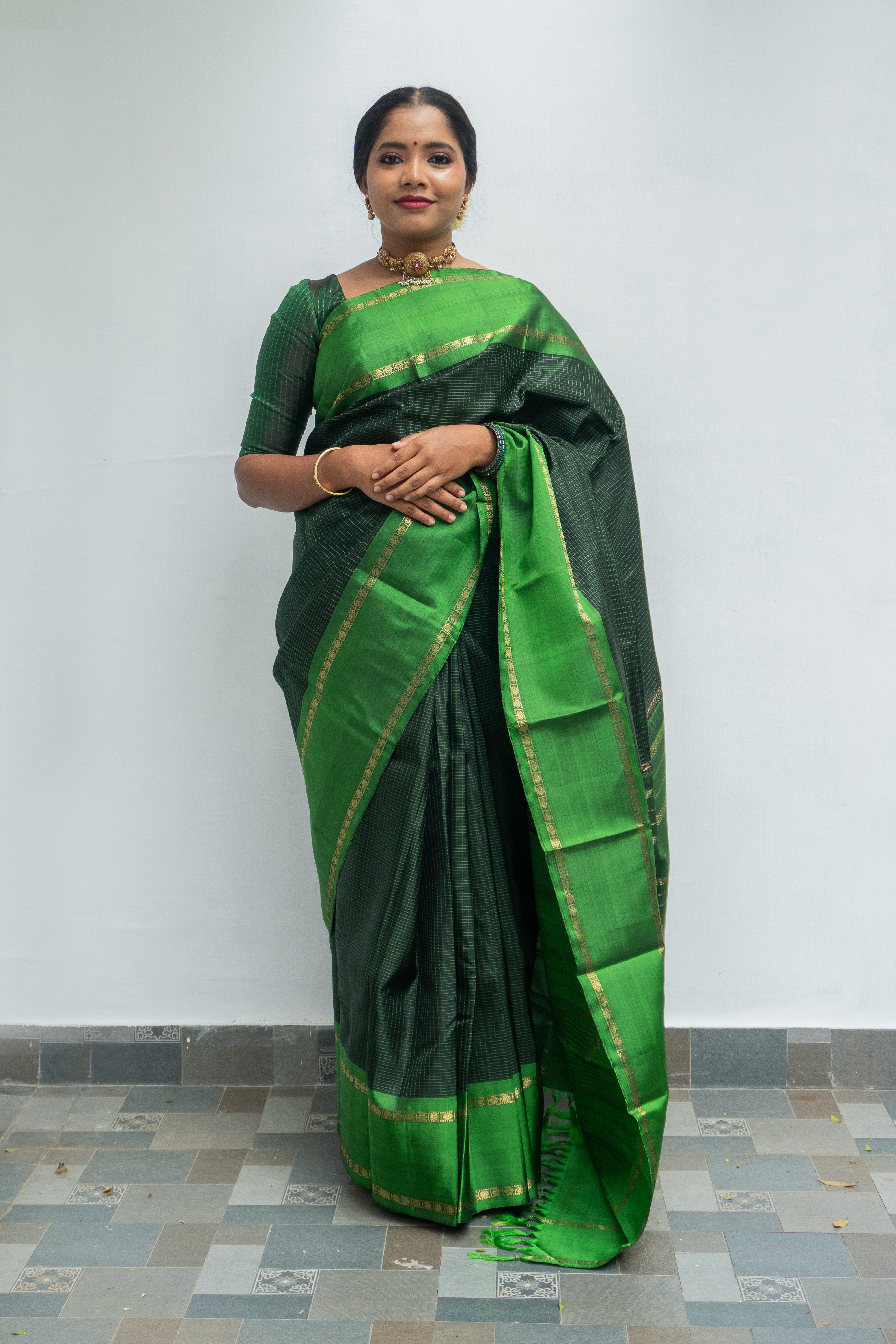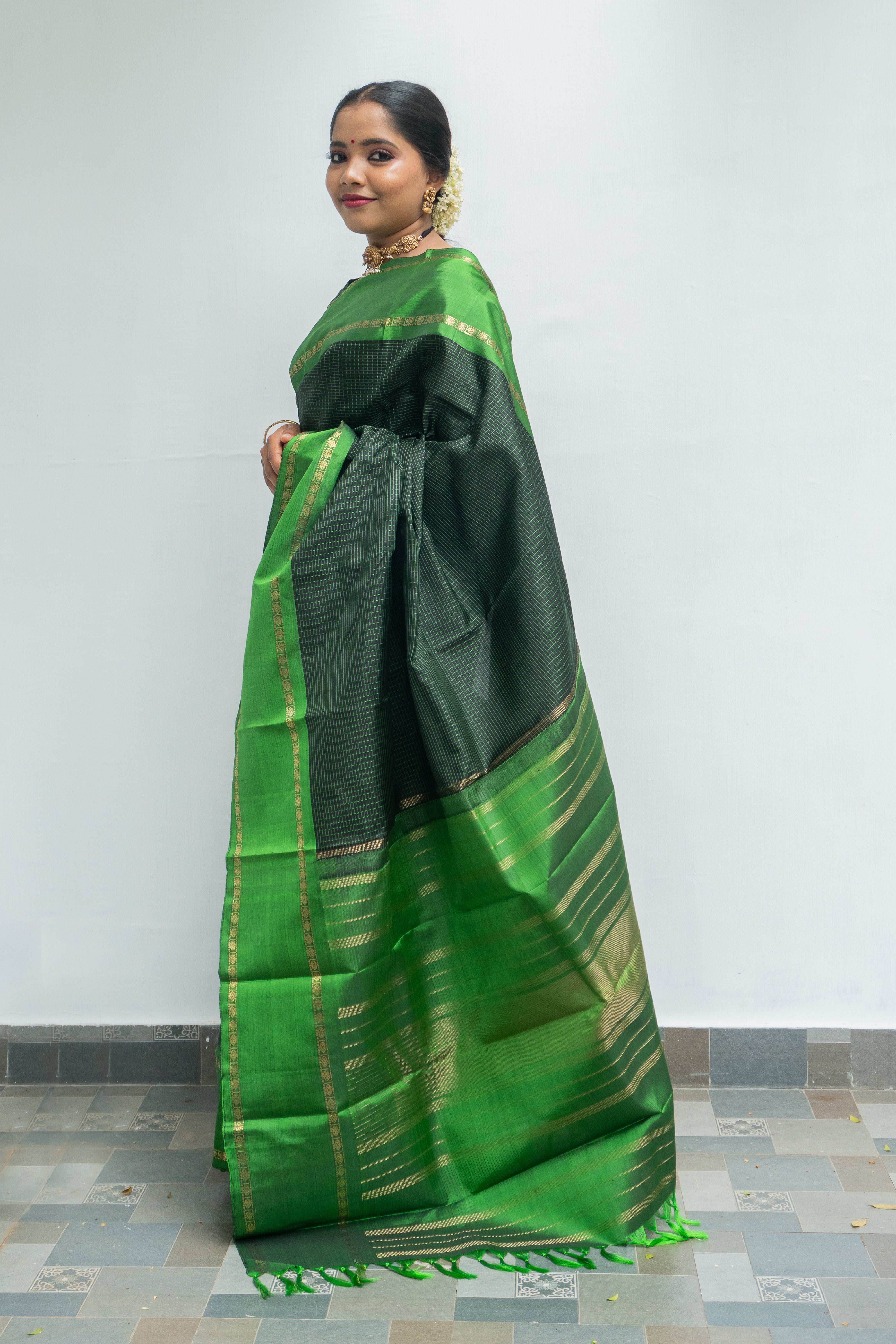Arakku Kanjivaram Silk Saree with Zari Checks
