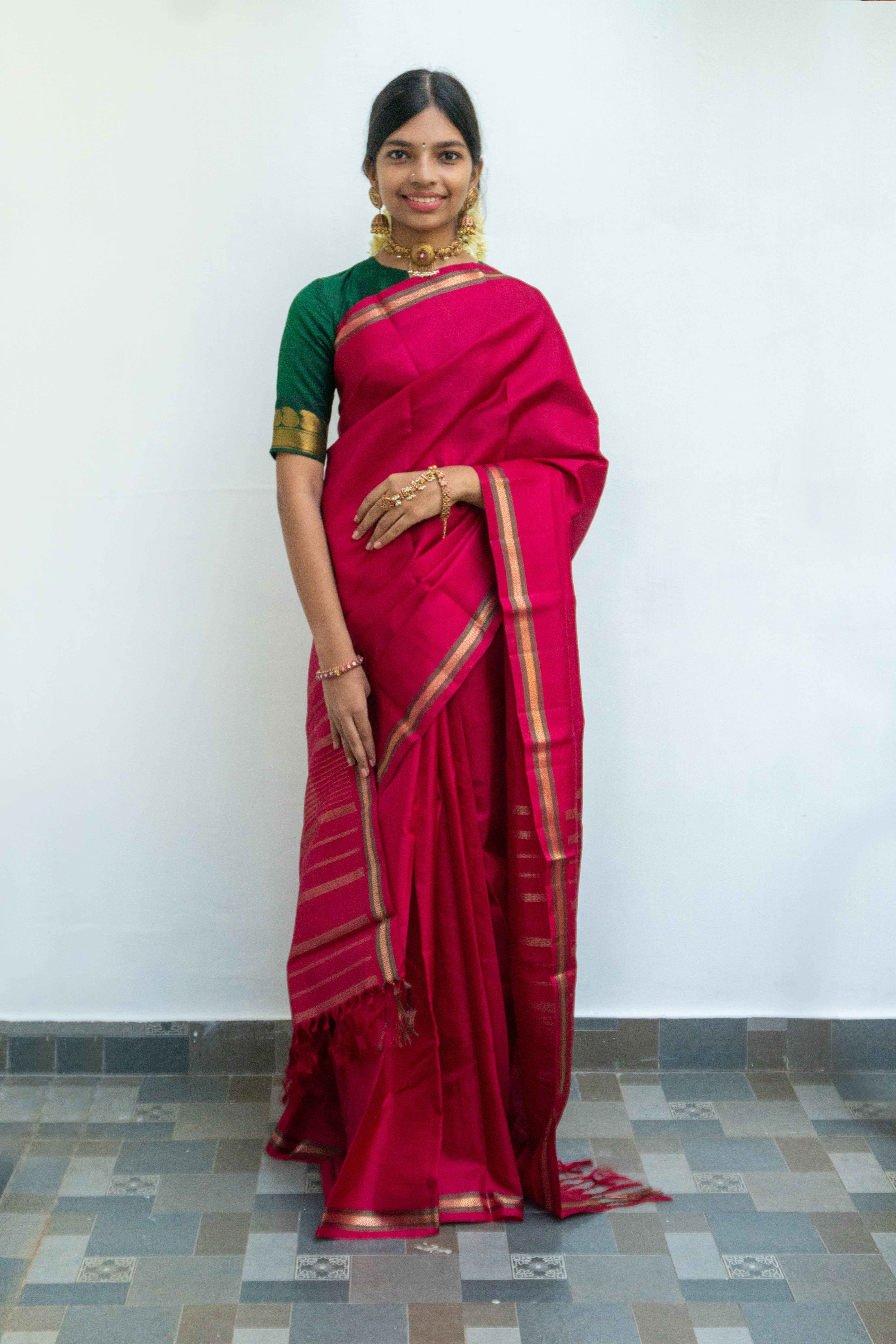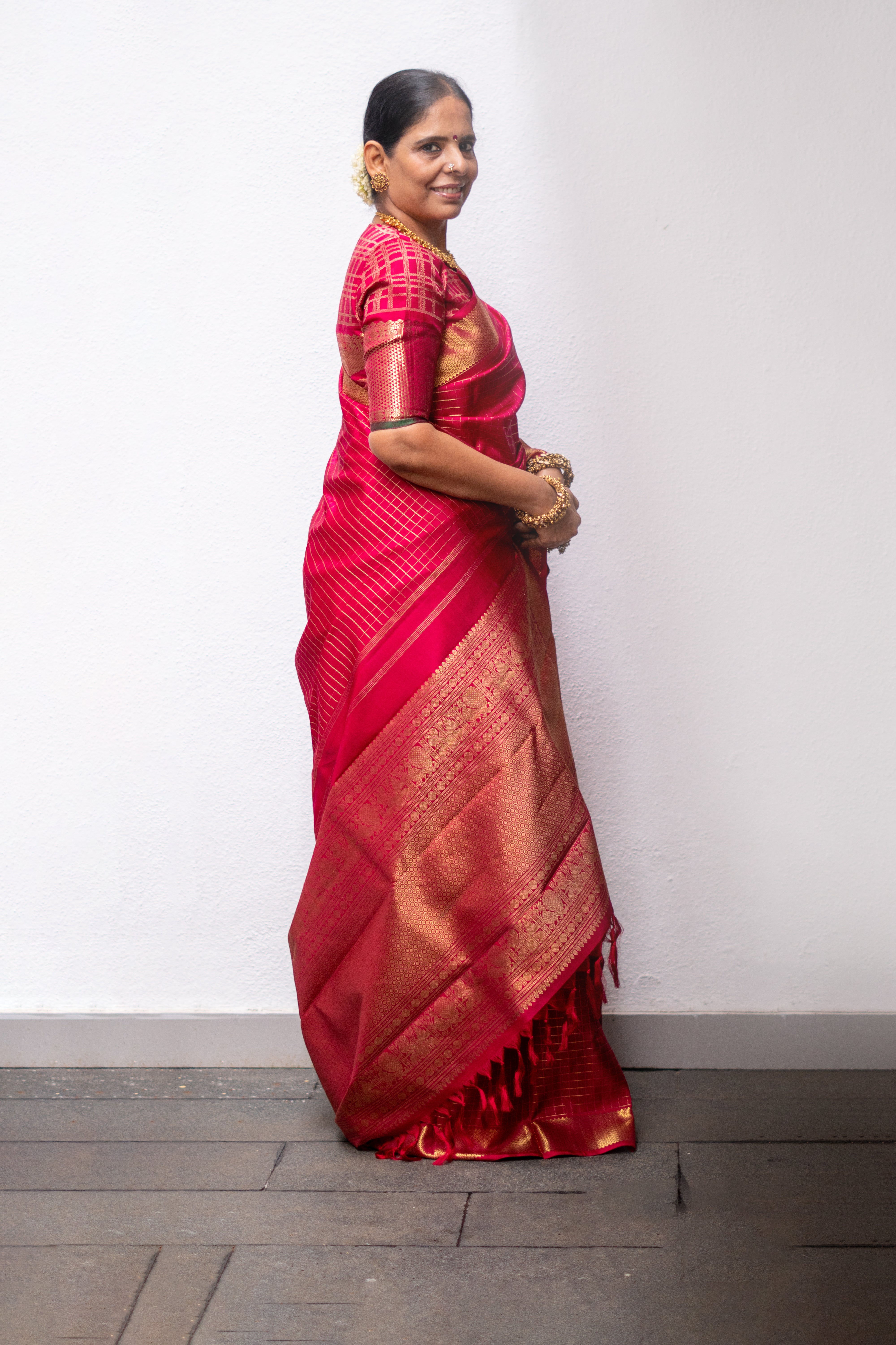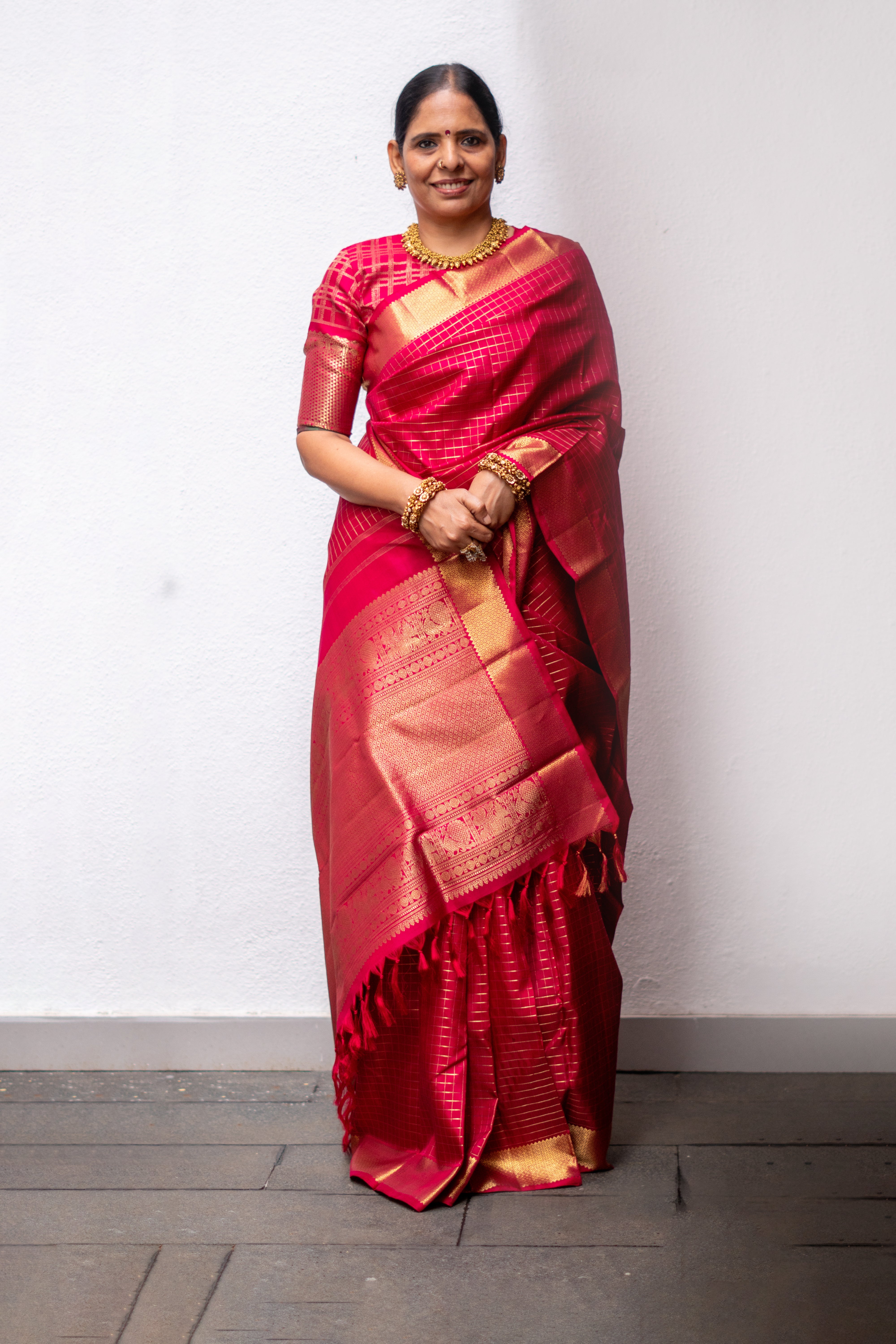 Arakku Kanjivaram Silk Saree with Zari Checks