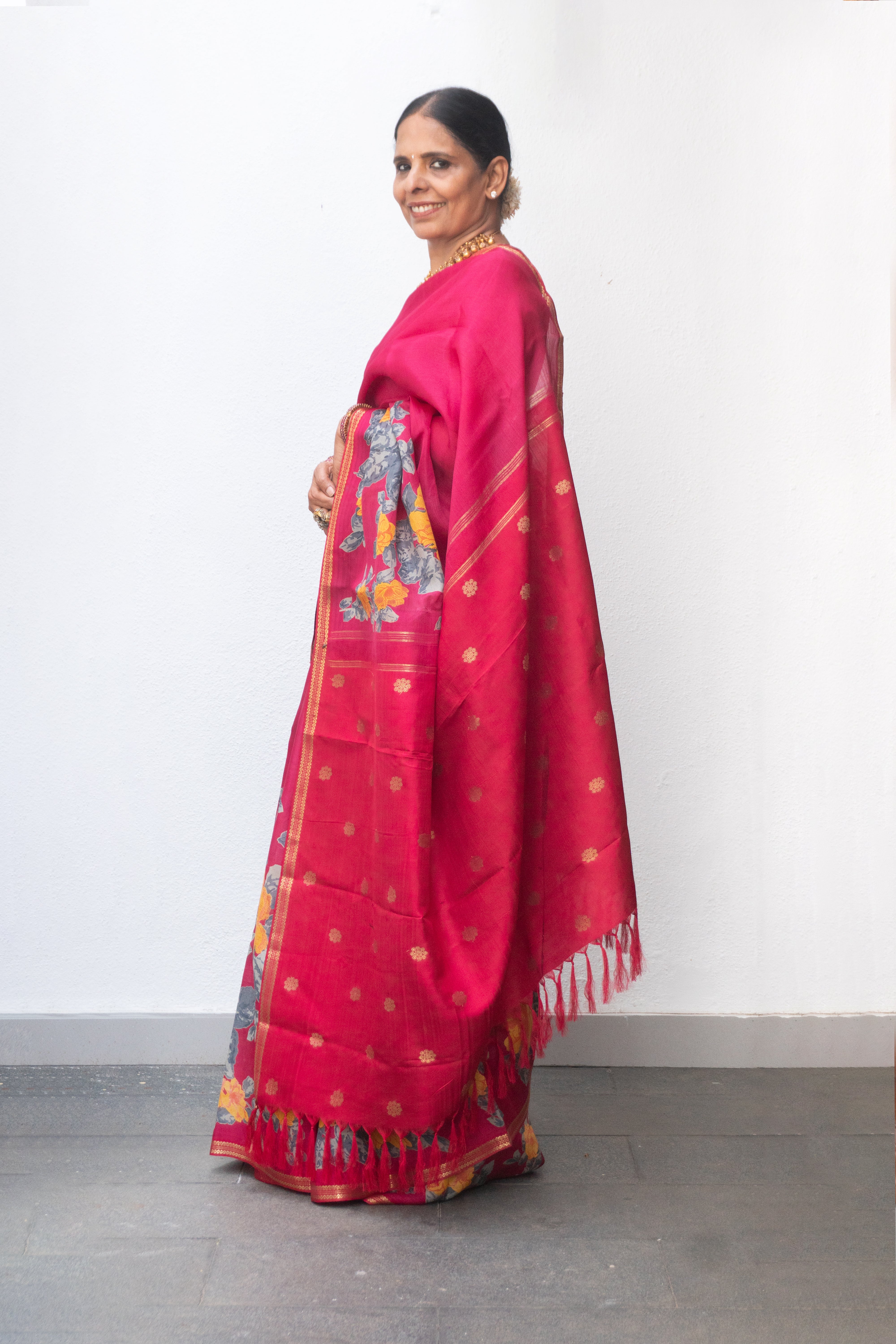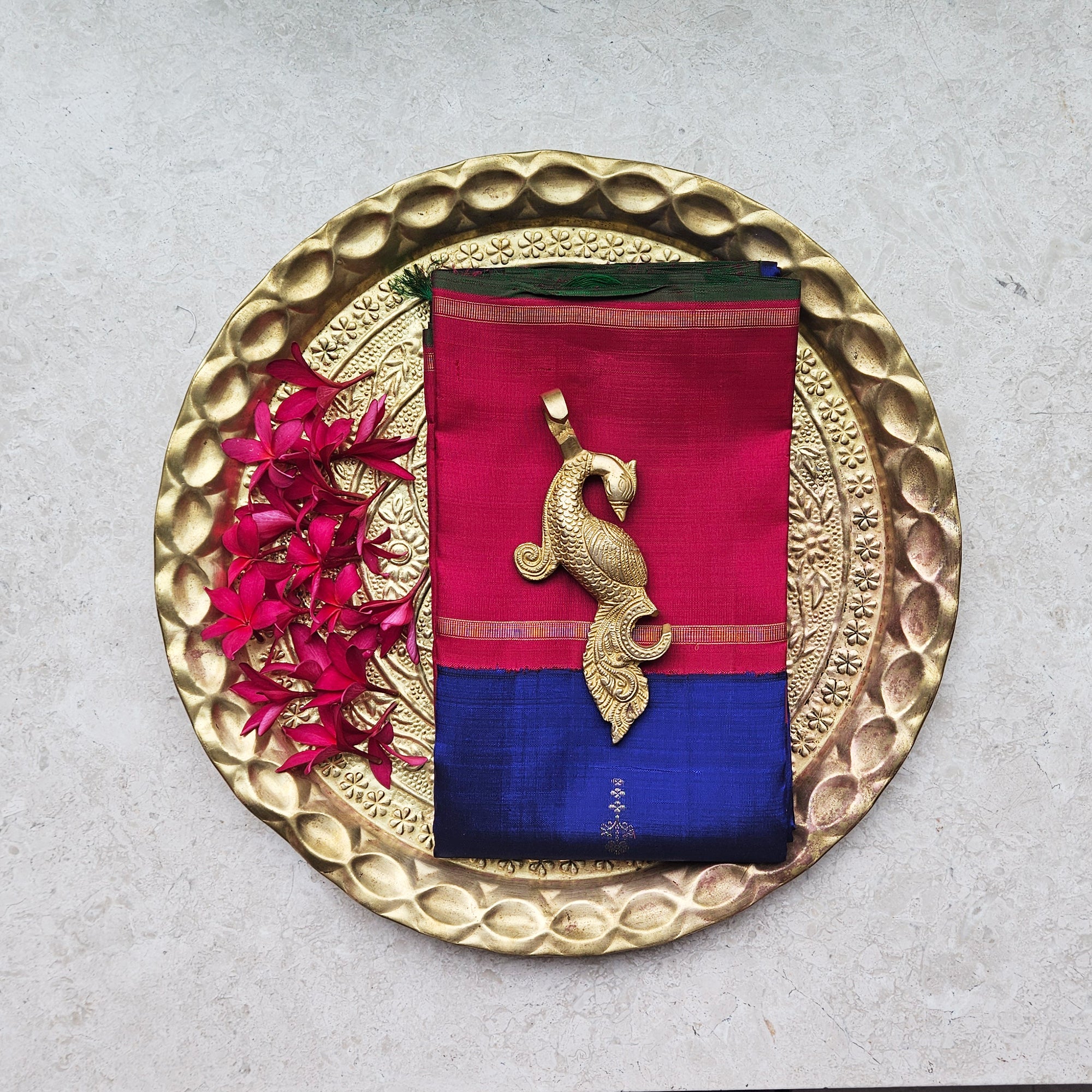 Arakku Red Kanjivaram Silk Fabric With Mayil And Chakram
