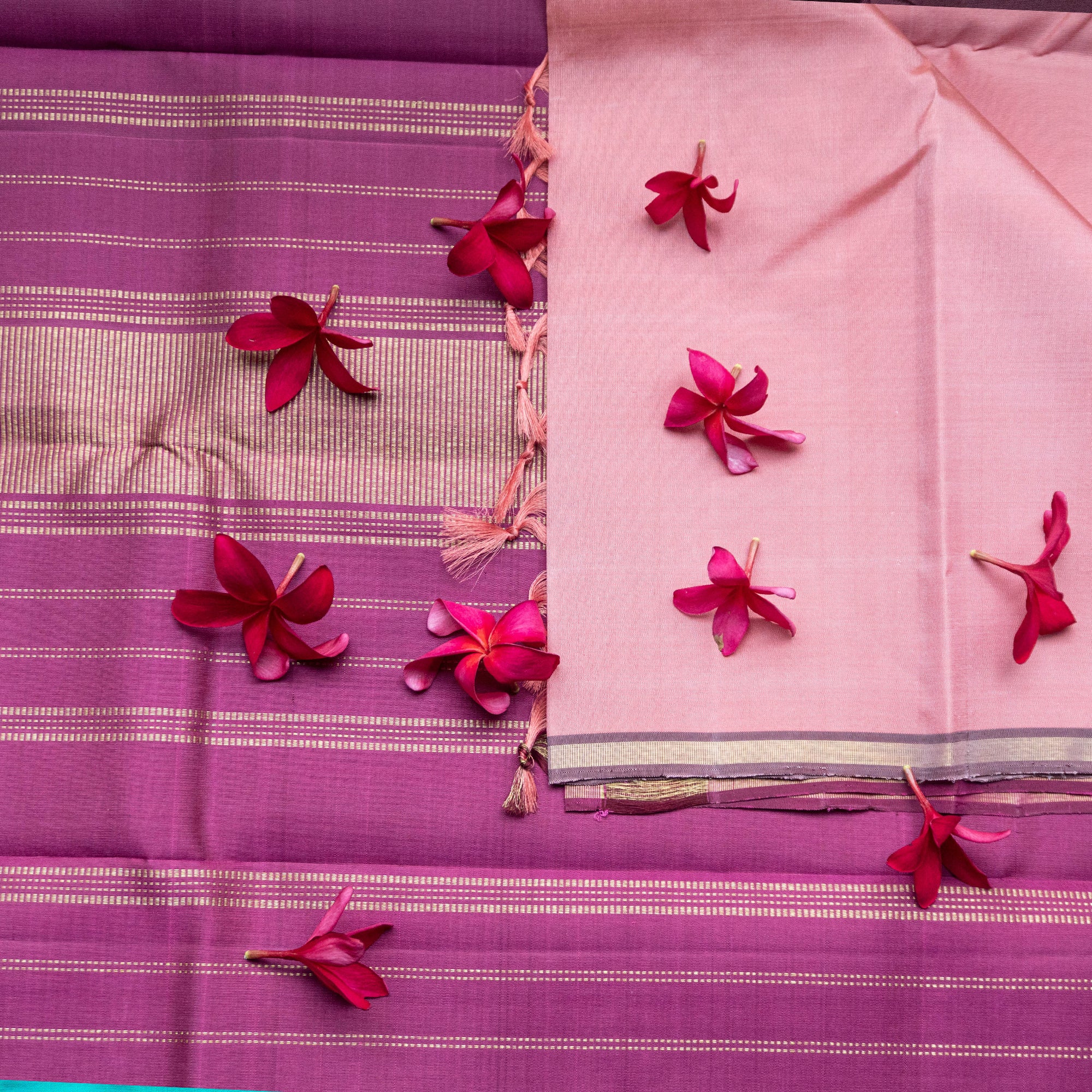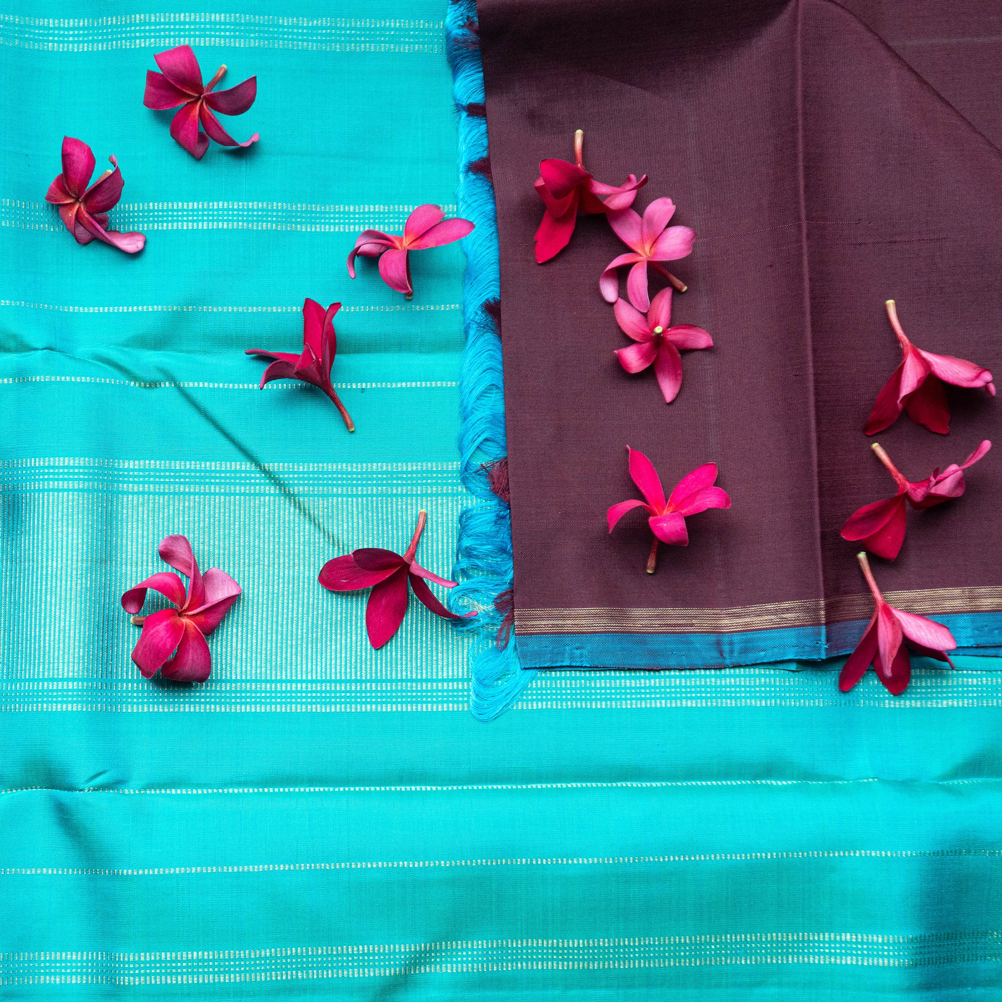 The blouse styled with each saree is from our exclusive in-house collection and may differ from the blouse piece provided with the saree.