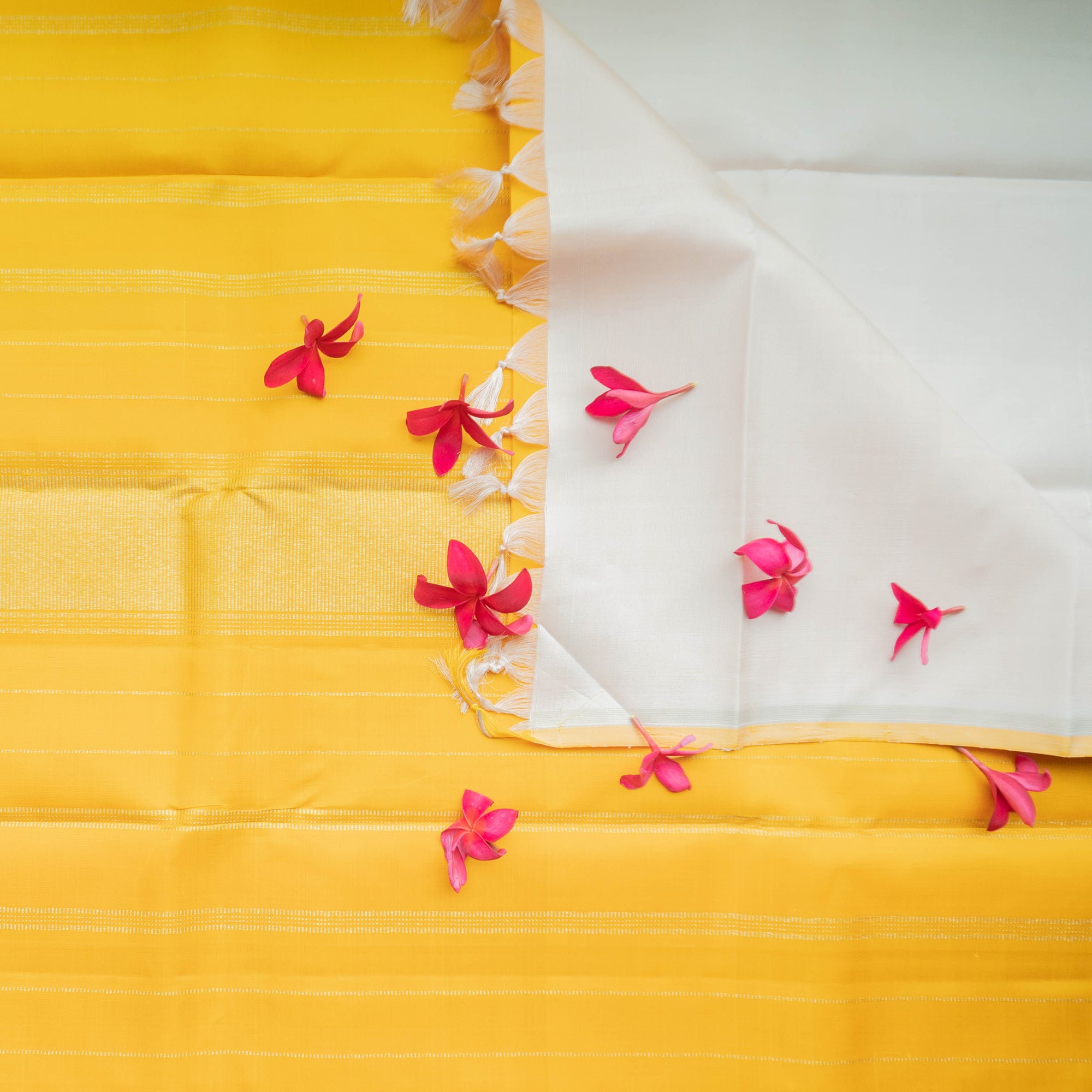 • If you store your saris folded, please ensure you open them and change the fold every so often. Fold lines can "settle" if not refolded, creating fade marks and weakening the weave and brocade patterns along the fold line stress points.