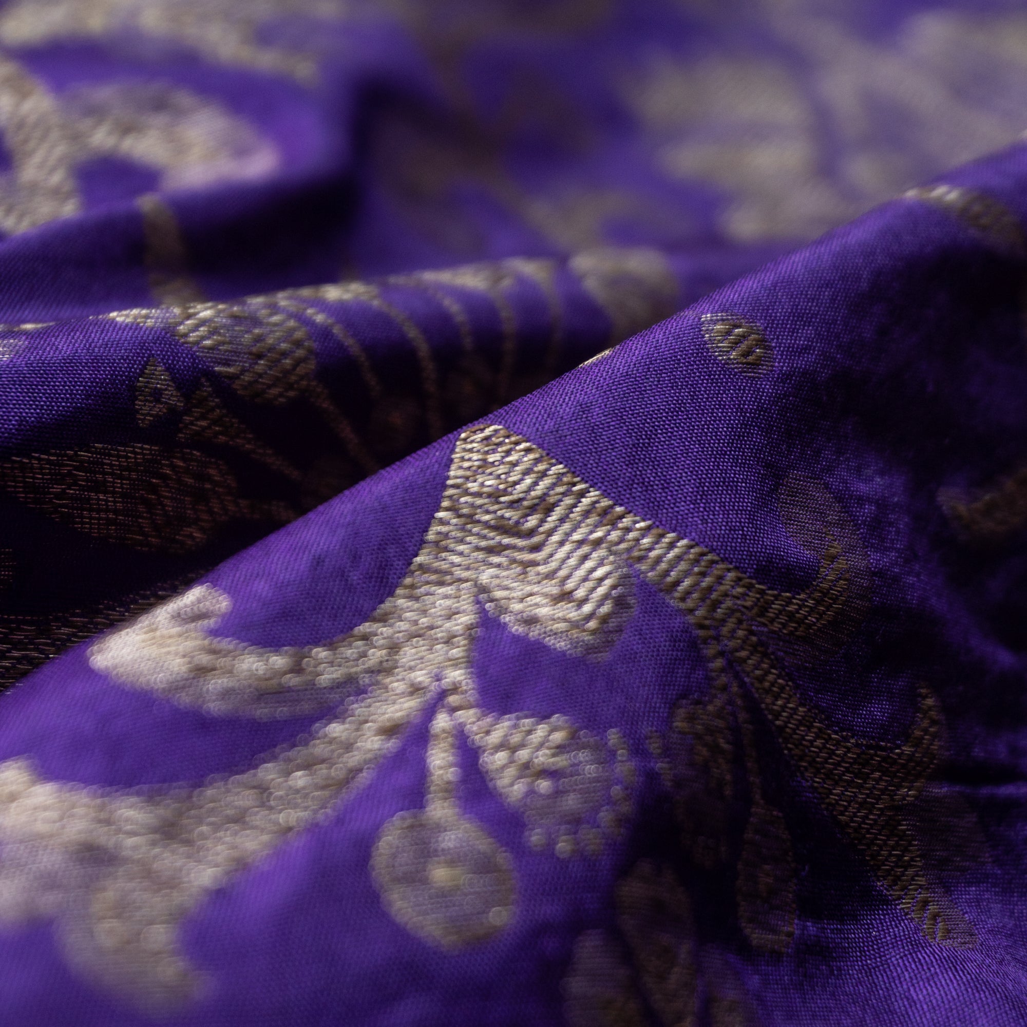Purple Brocade Banarasi Silk Fabric