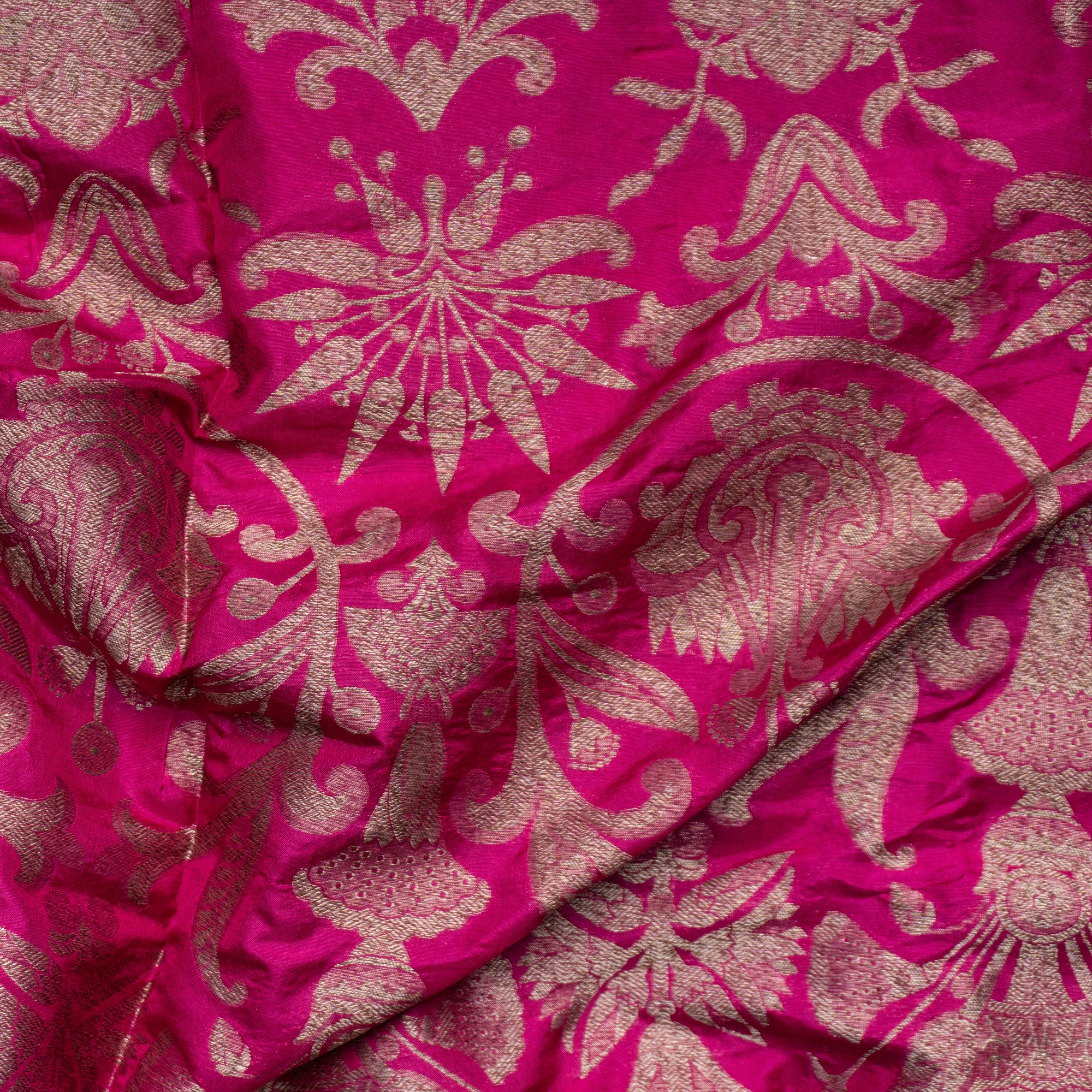 Cream With Pink Brocade Banarasi Silk Fabric