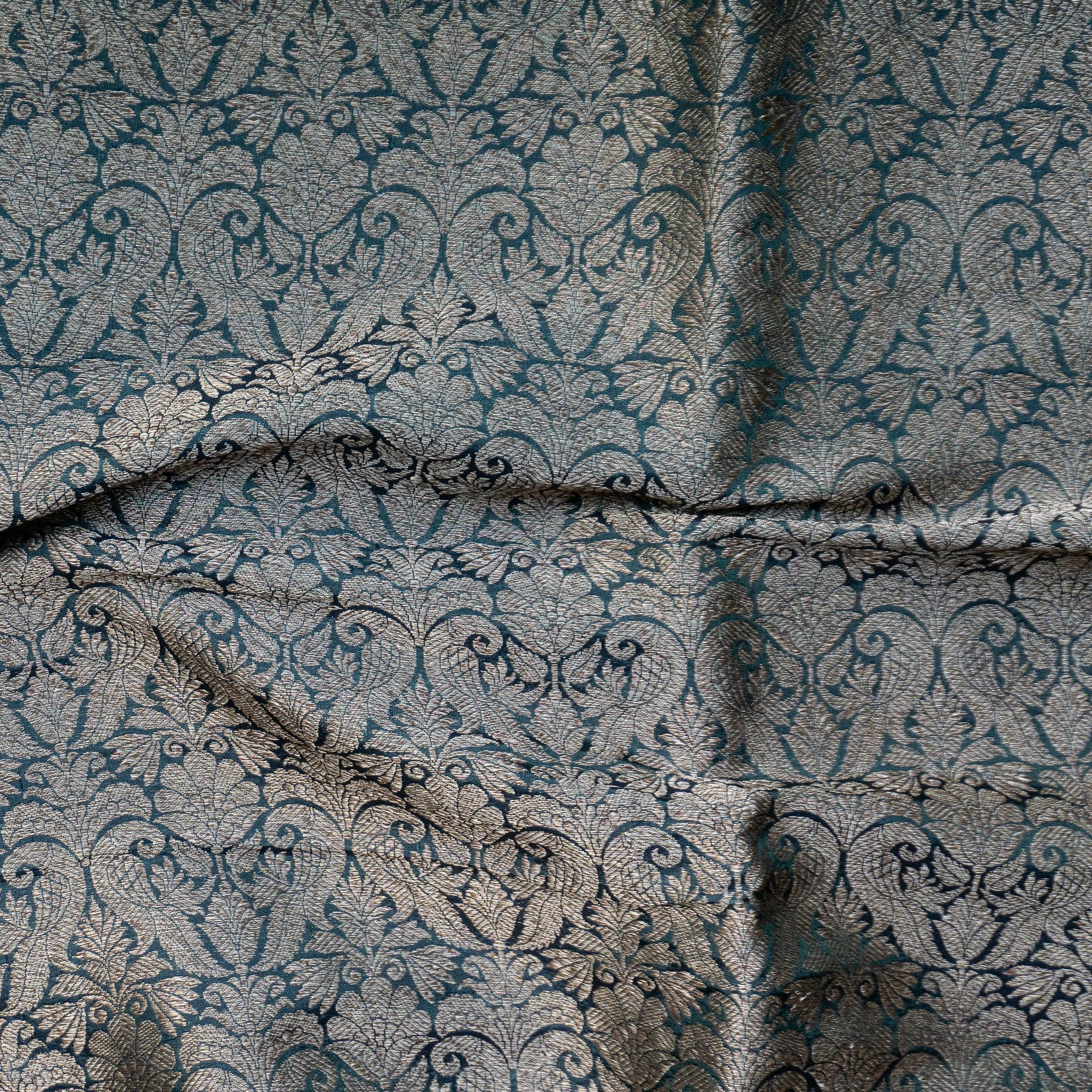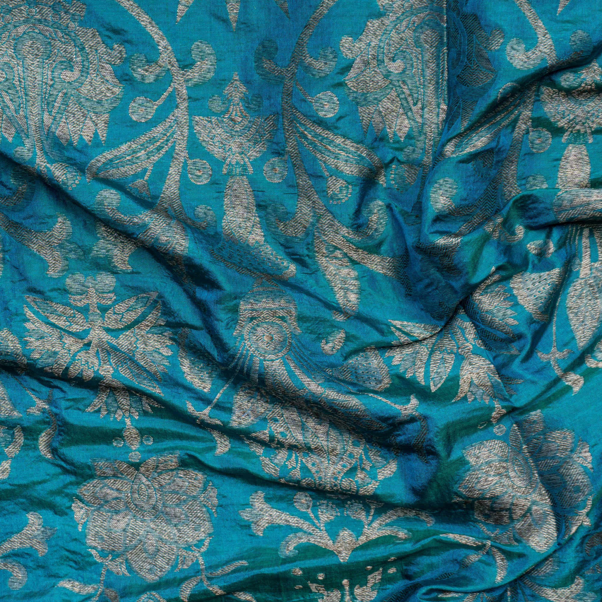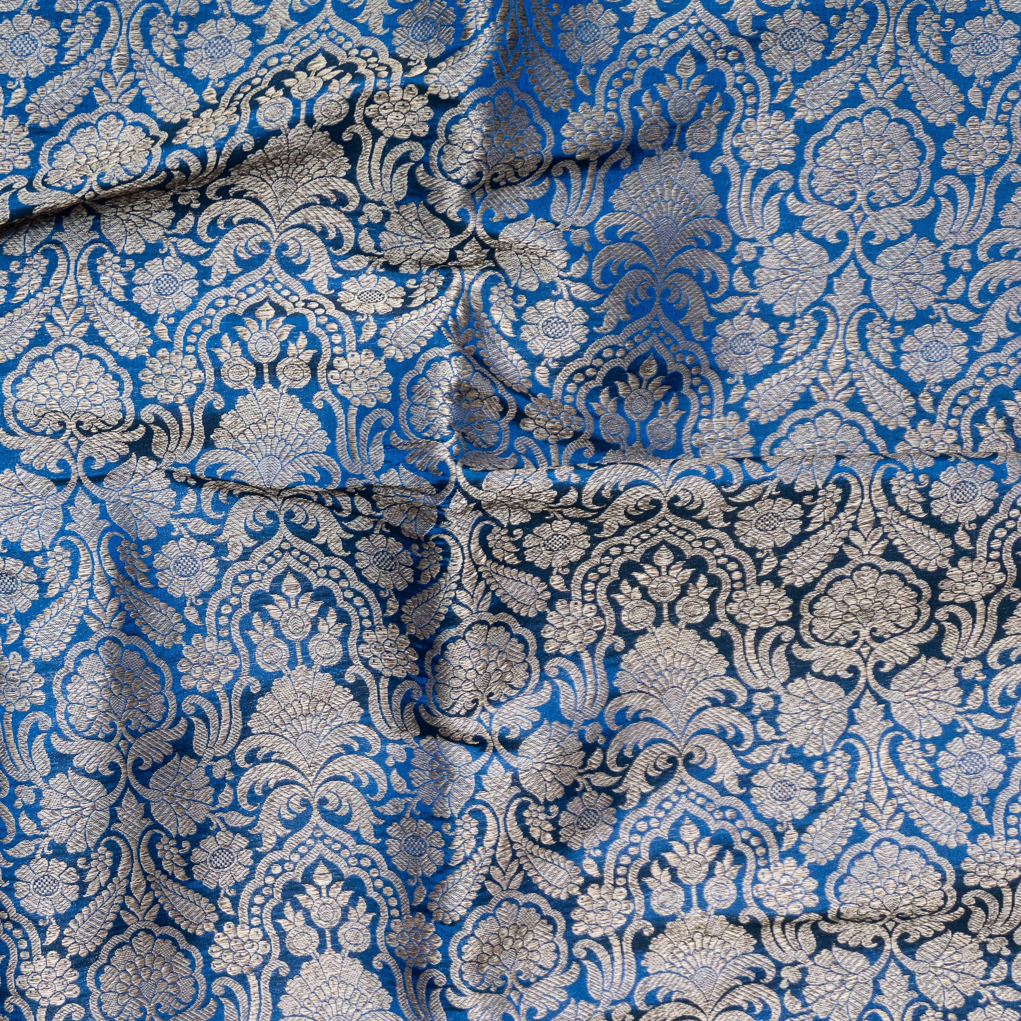 Peacock Blue Brocade Banarasi Silk