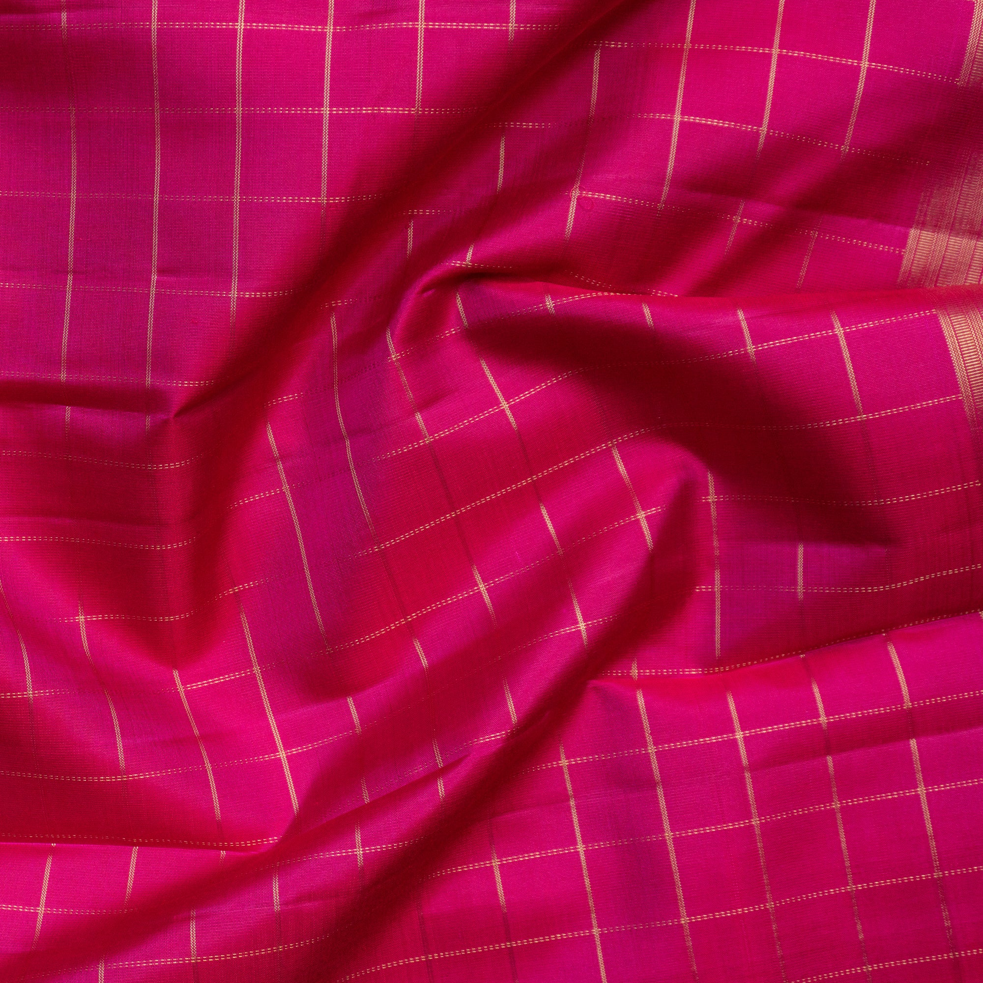 Rani Pink Checked Border Kanjivaram Silk Fabric