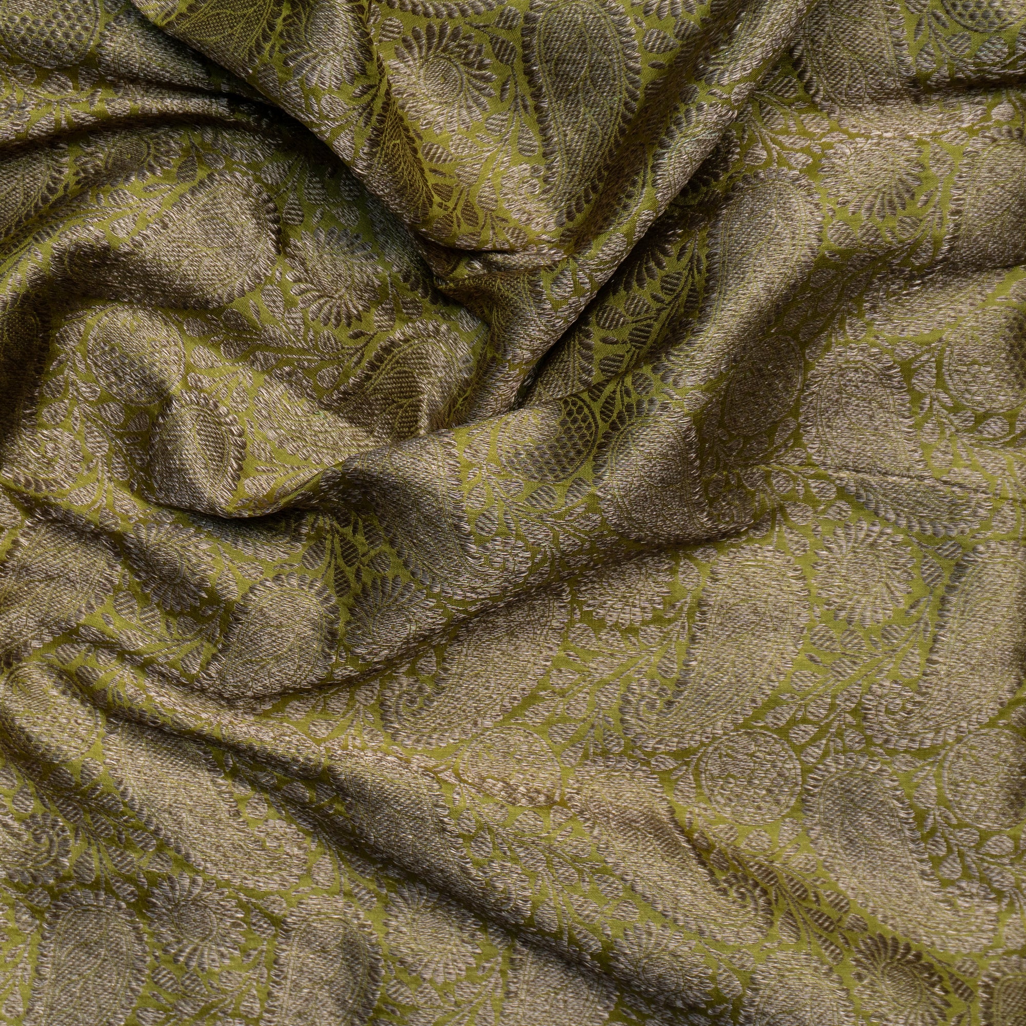 Lemon Green Brocade Banarasi Silk Fabric
