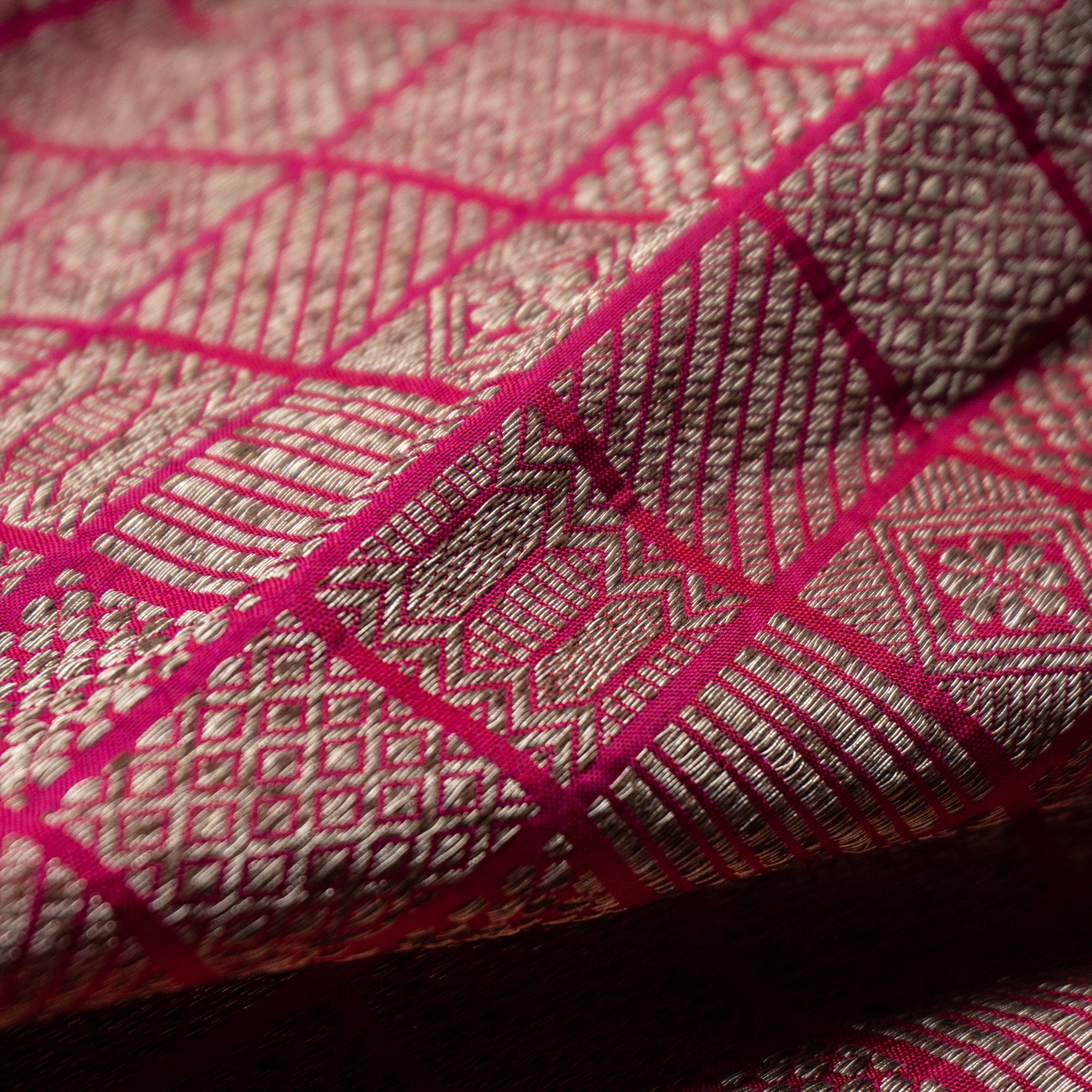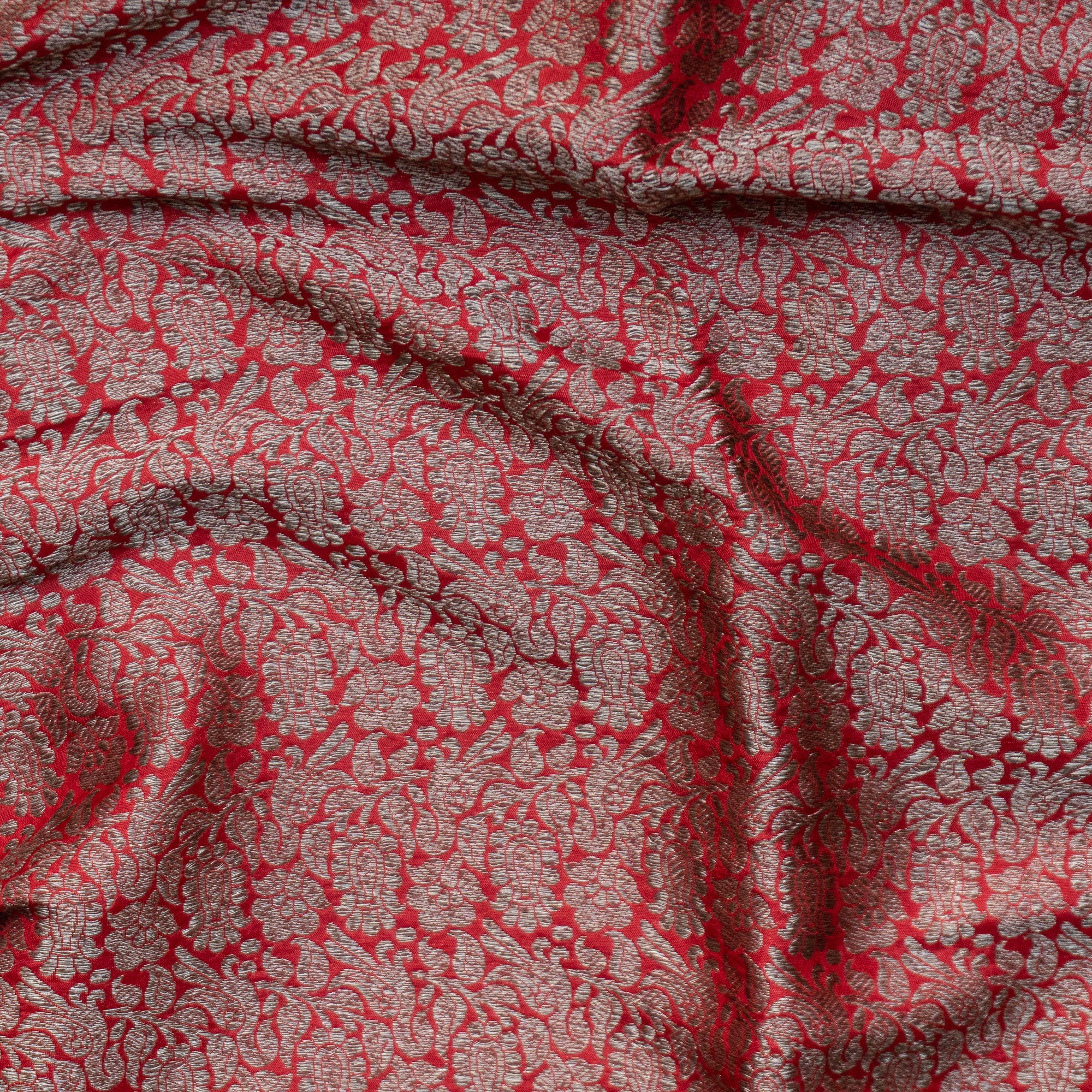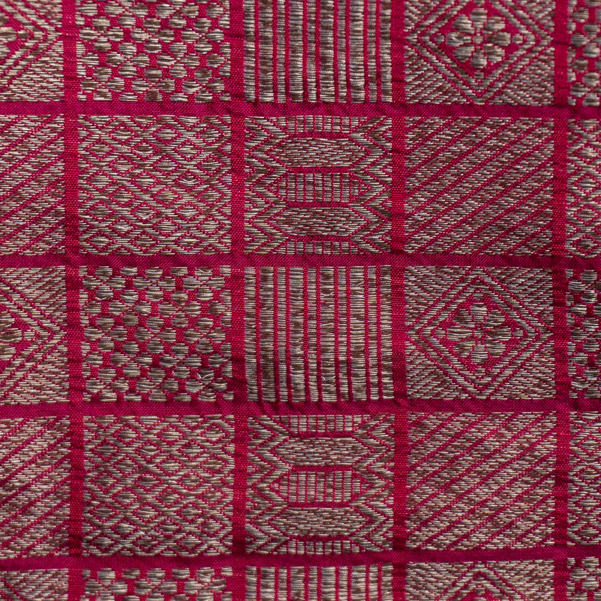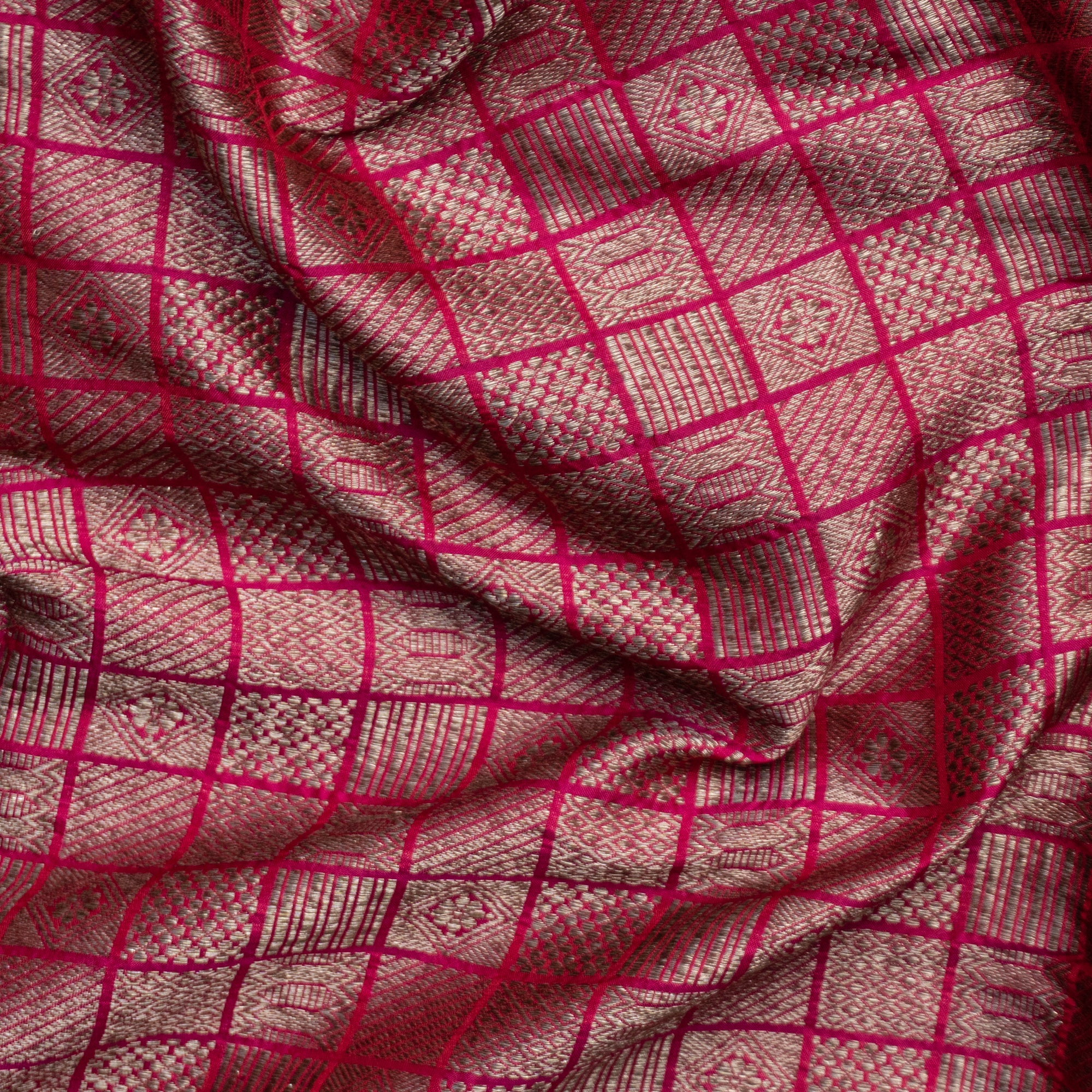Red Checkered Brocade Banarasi Silk Fabric