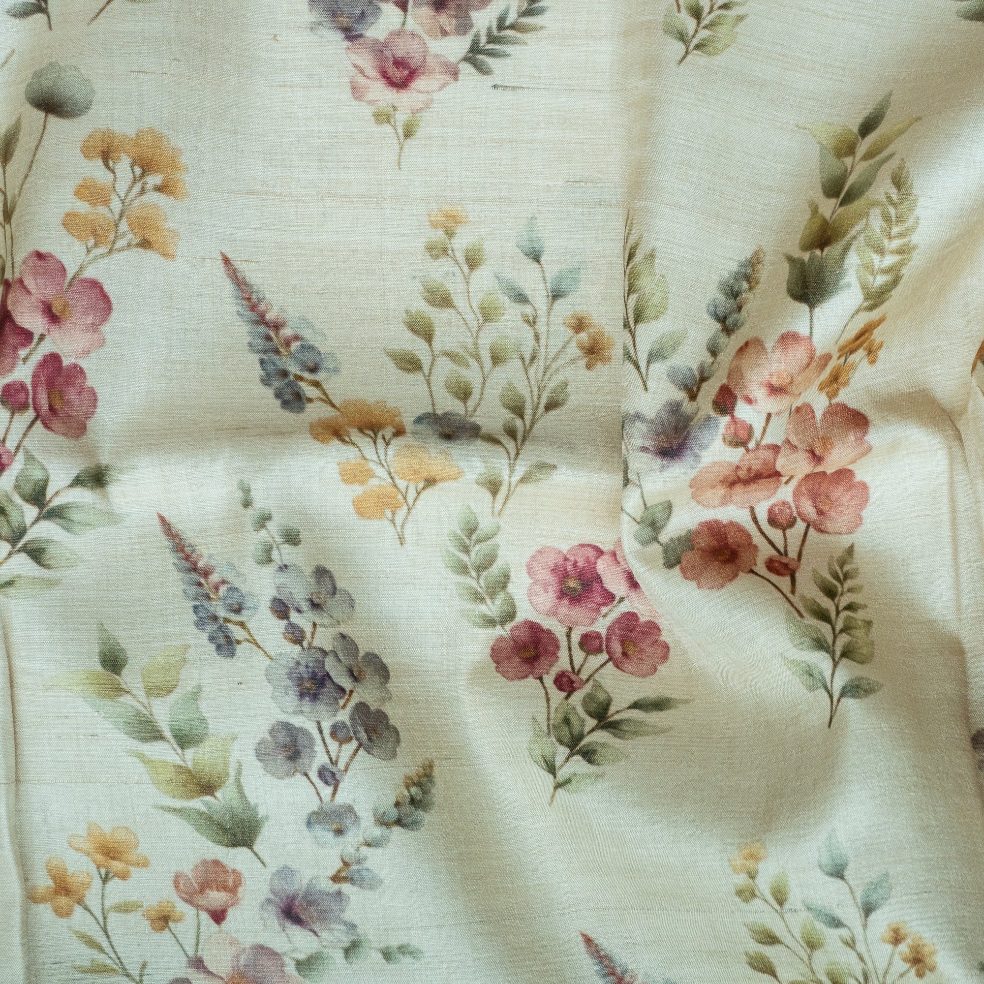 Ivory Floral Tussar Silk