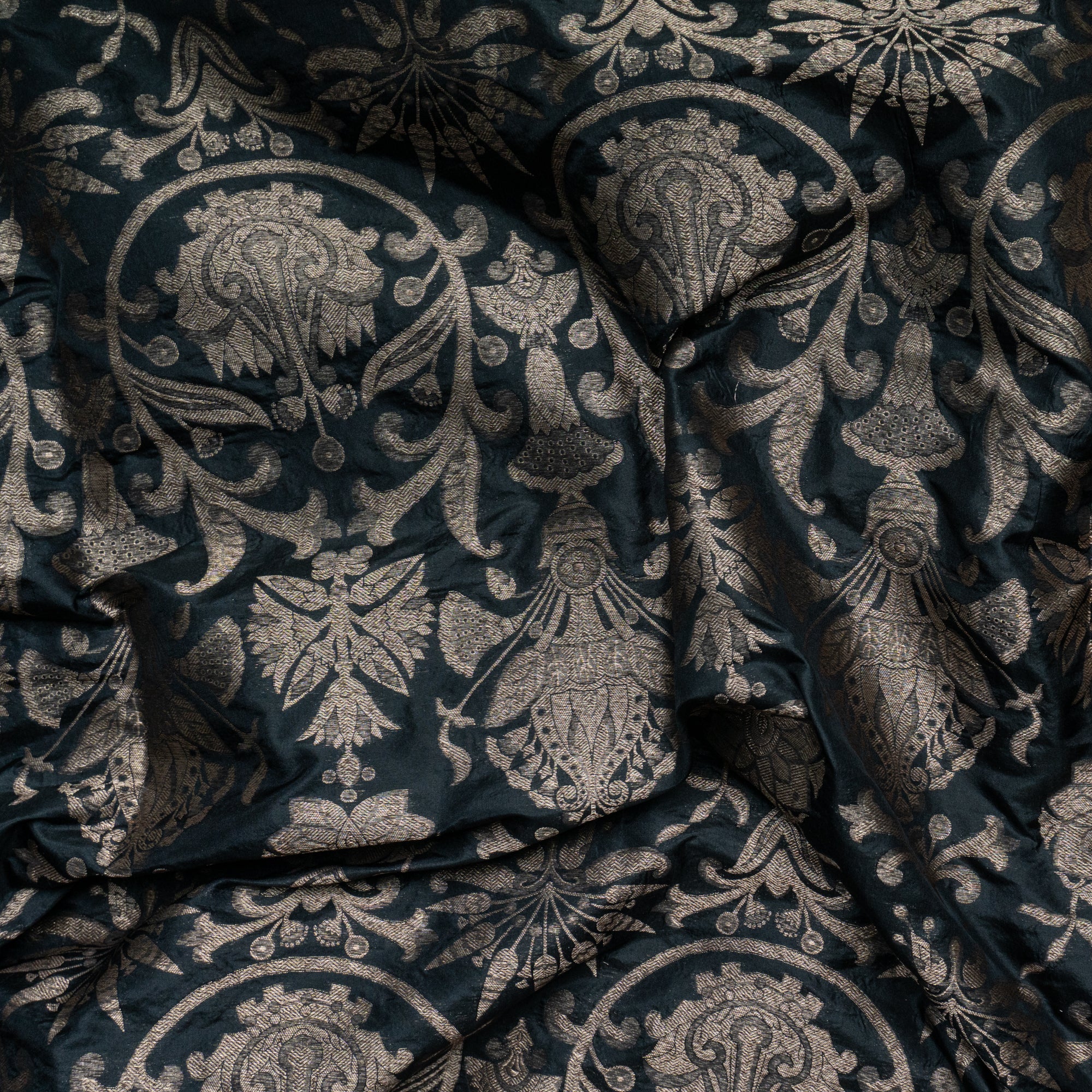 • If you store your saris folded, please ensure you open them and change the fold every so often. Fold lines can "settle" if not refolded, creating fade marks and weakening the weave and brocade patterns along the fold line stress points.