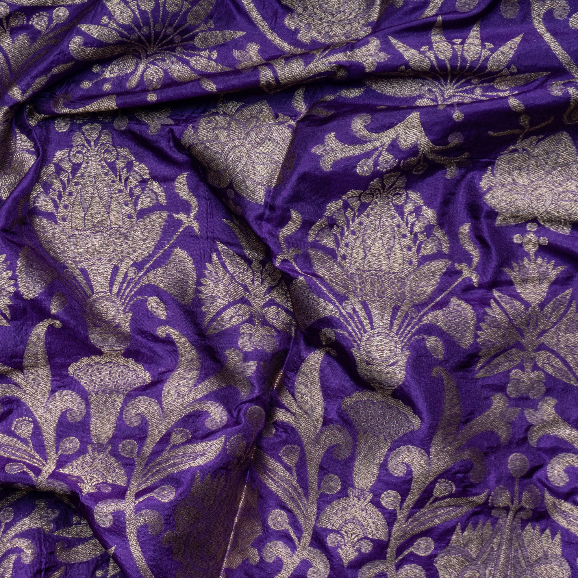 Purple Brocade Banarasi Silk Fabric