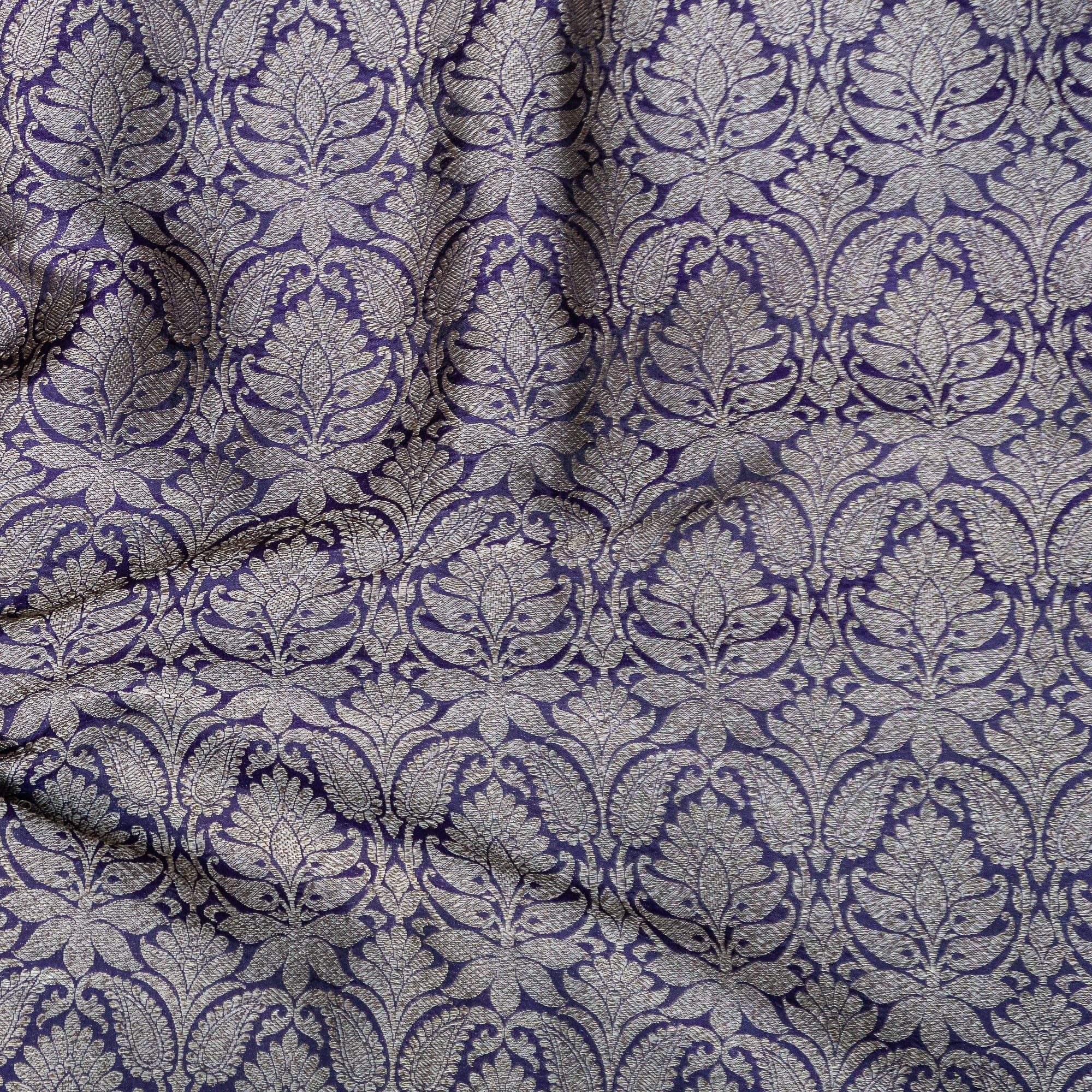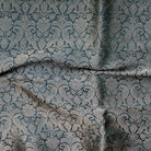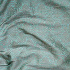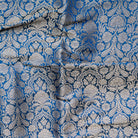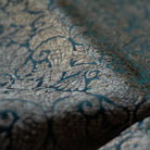 Peacock blue Banarasi brocade adorned with intricate gold zari motifs, showcasing timeless elegance and rich tradiotnal craftsmanip.