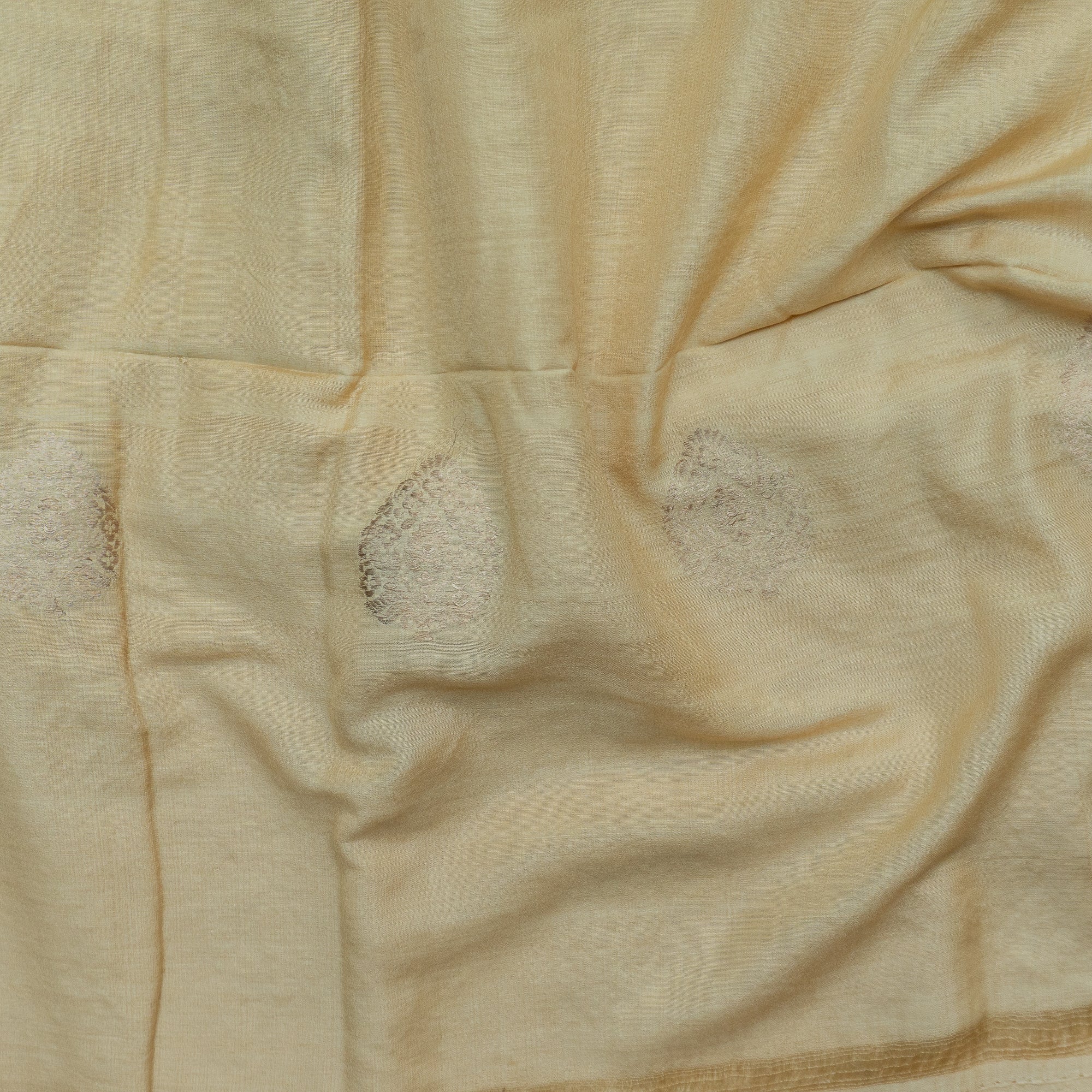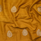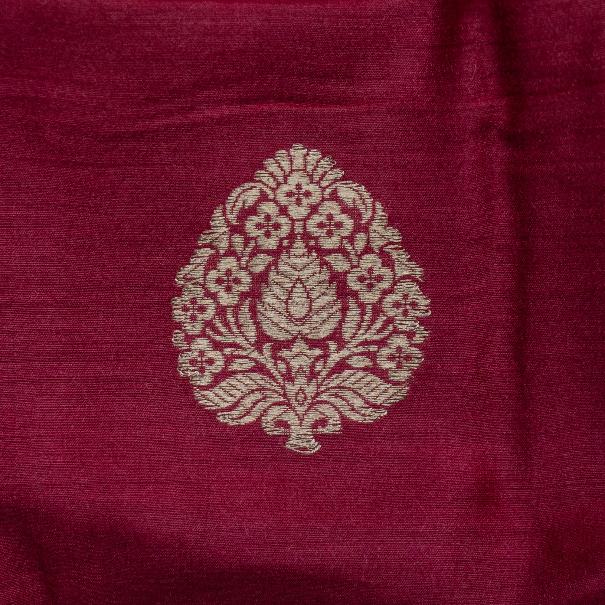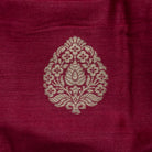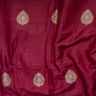 Crafted from luxurious moonga silk, it features a natural sheen and fine texture, enhanced by the deep, regal red hue. Adorned with motifs, this fabric is perfect for weddings and festive occasions.