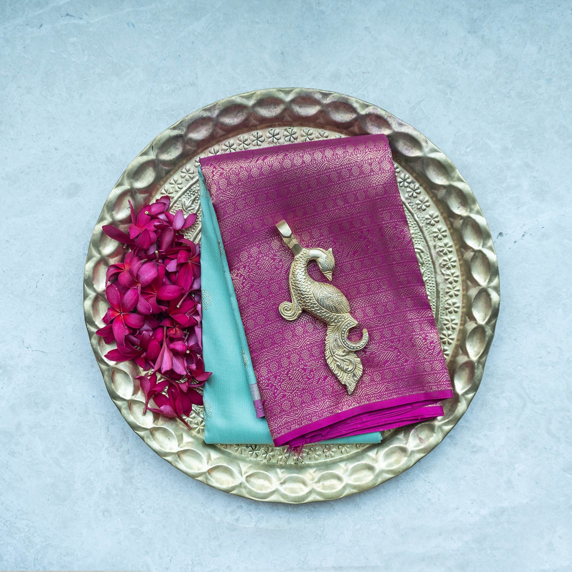The blouse styled with each saree is from our exclusive in-house collection and may differ from the blouse piece provided with the saree.