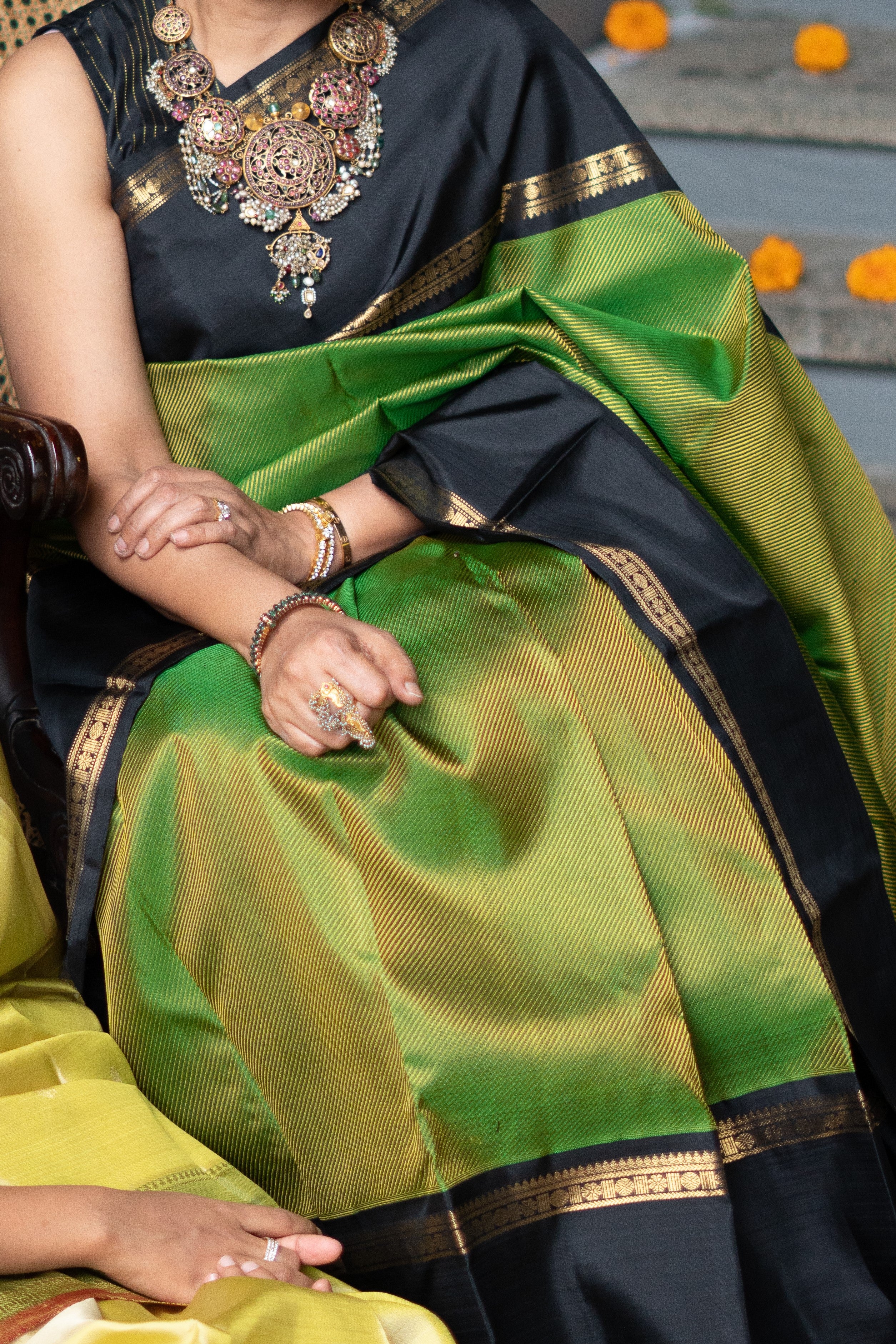 Rich Green Kanjivaram Silk Saree with Black Contrast Border