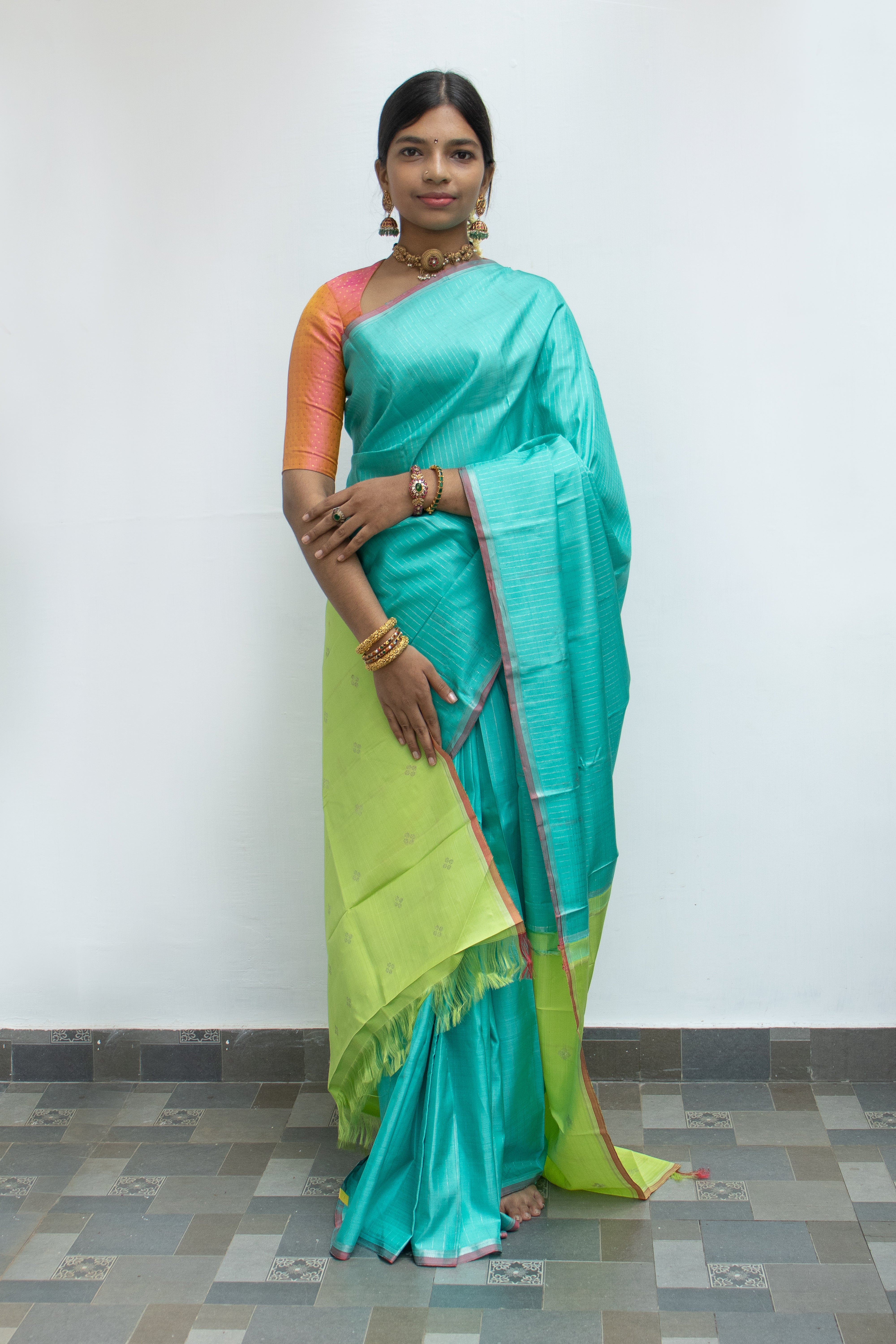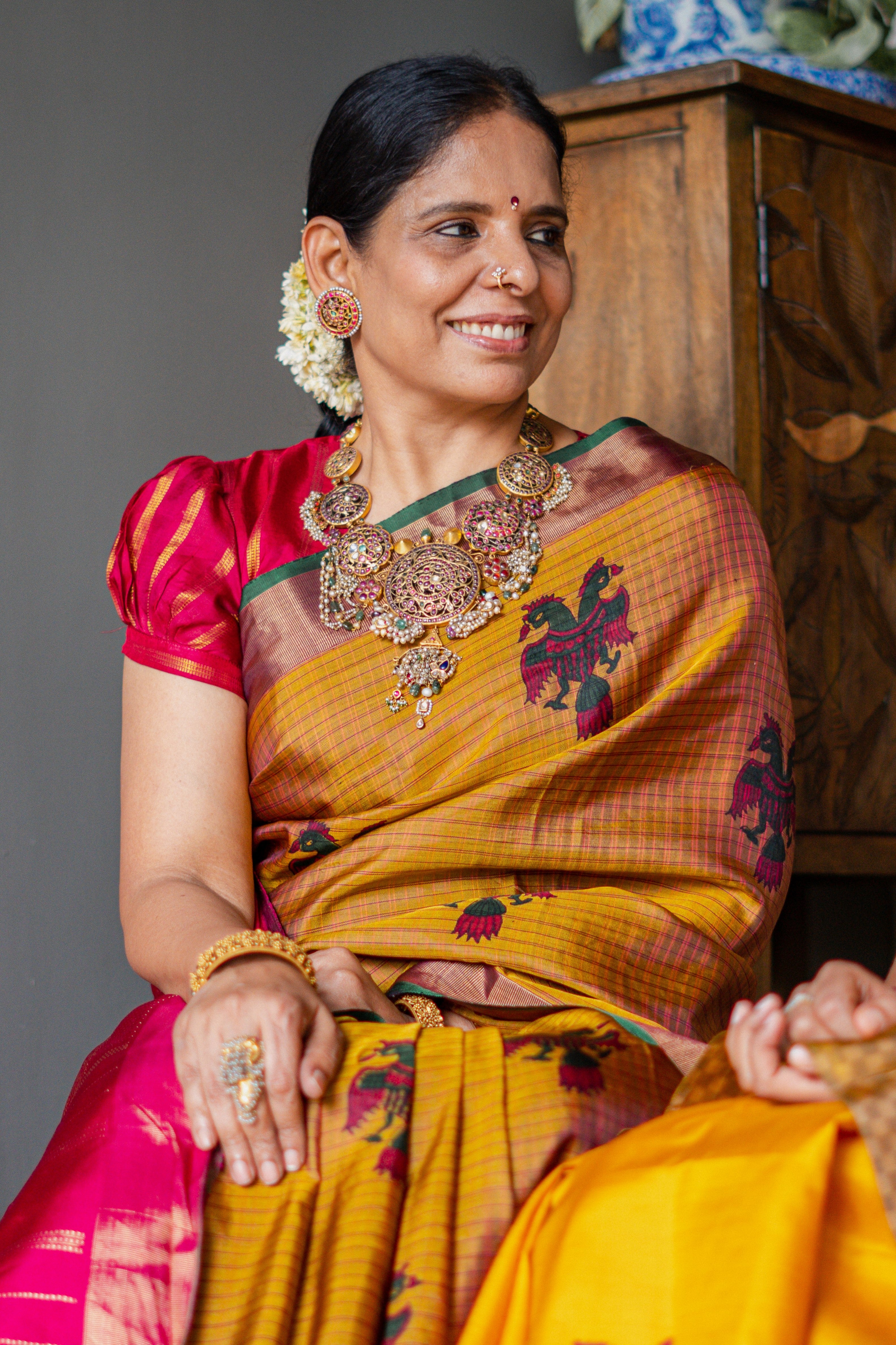 Green-Yellow Micro Checked Kanjivaram Silk Saree
