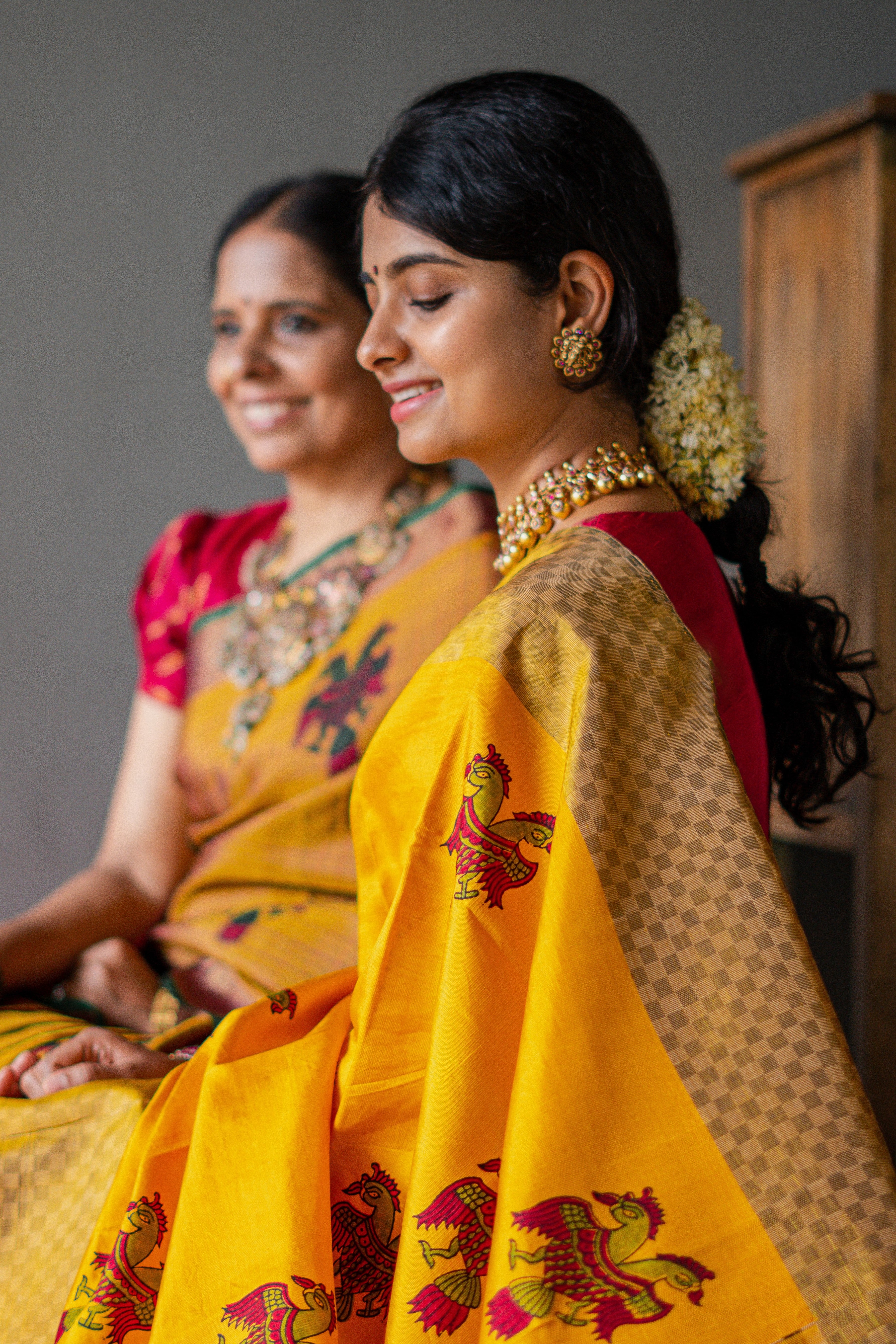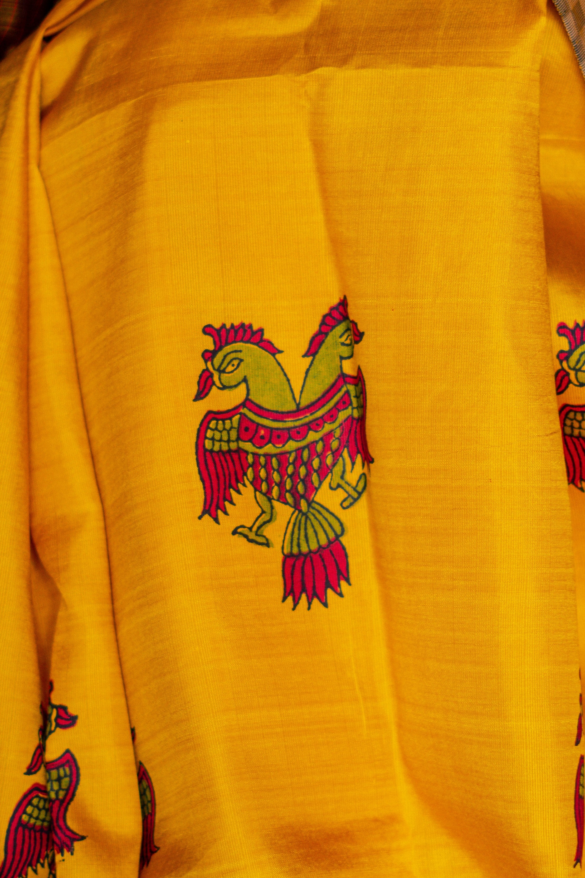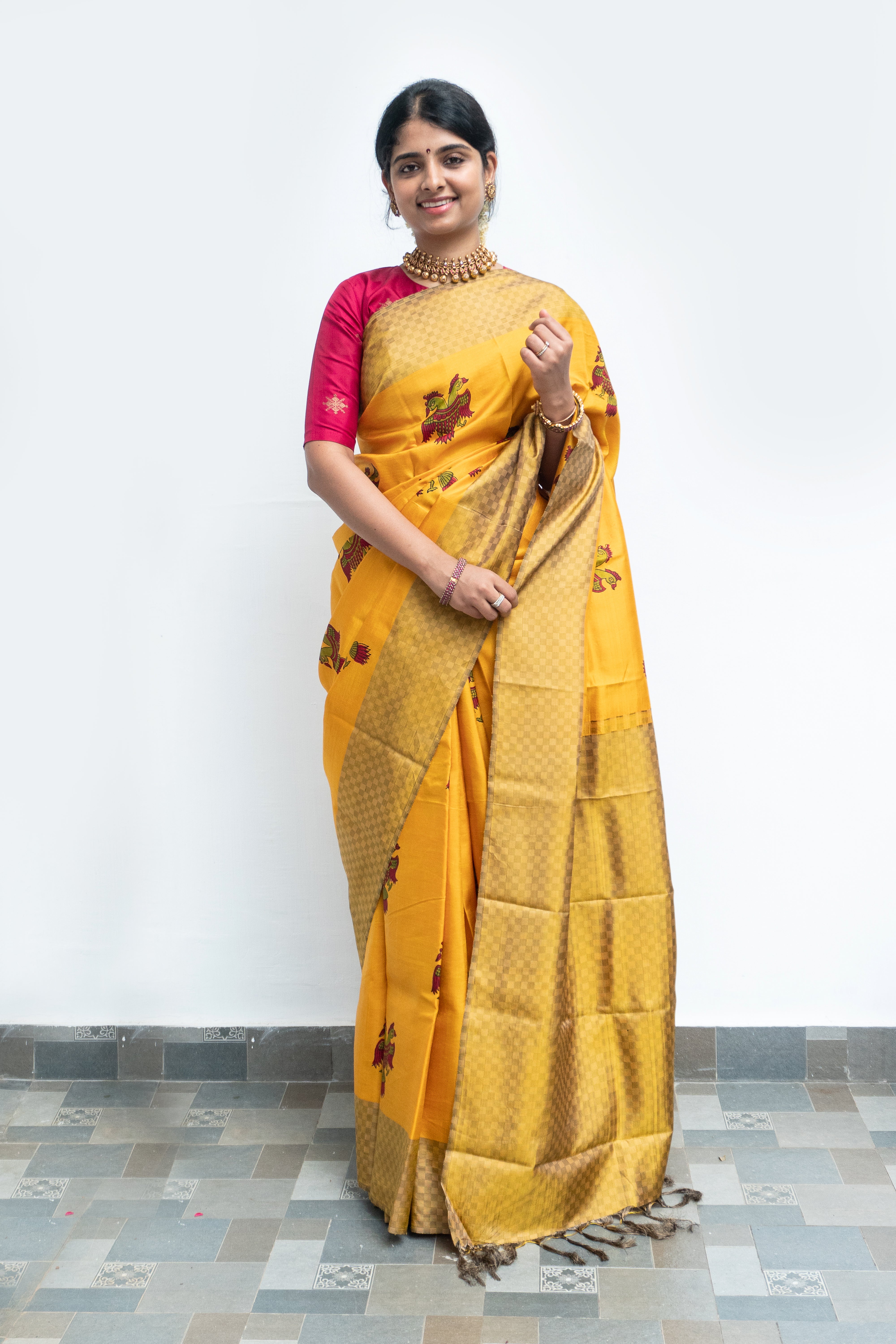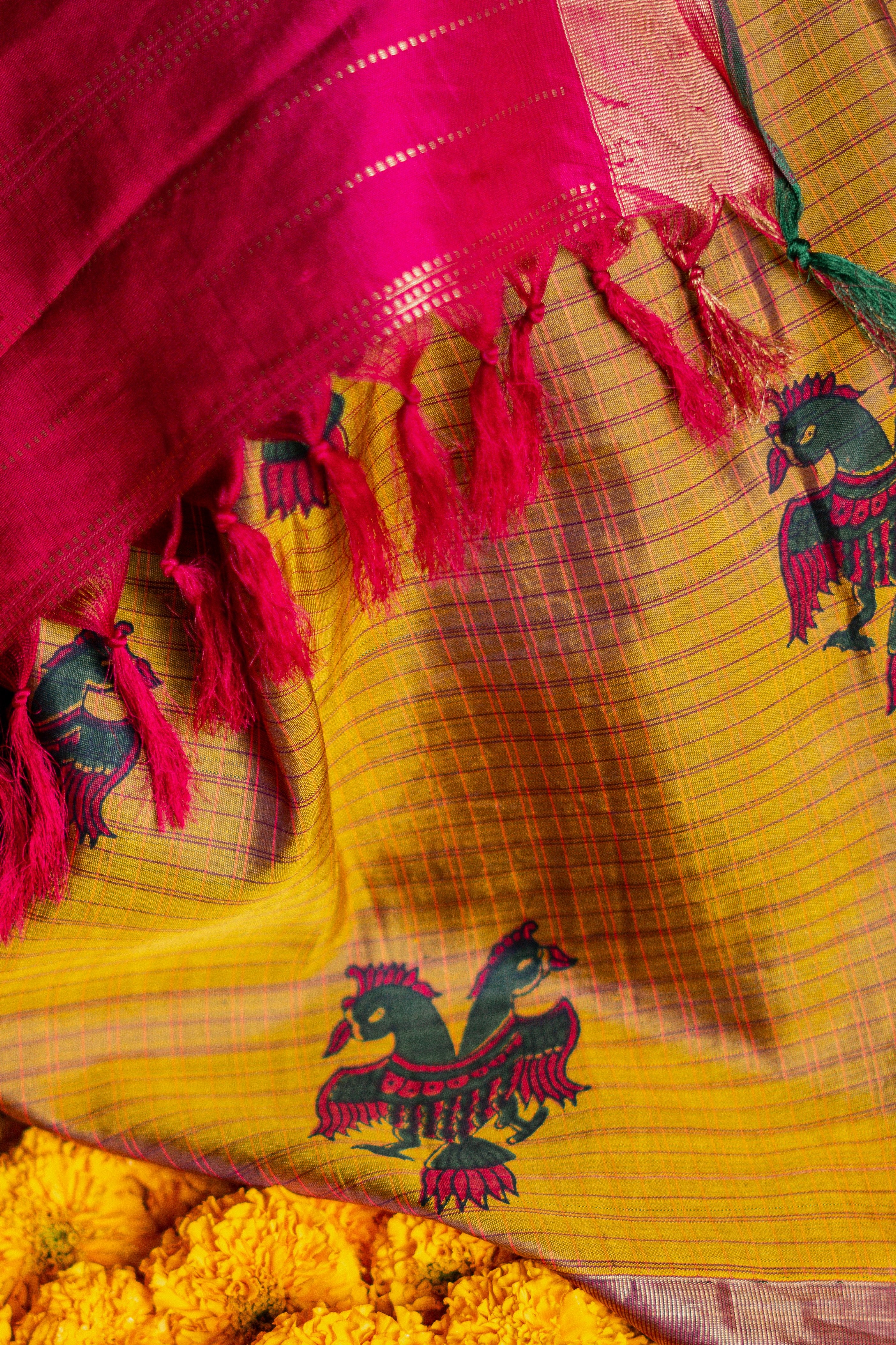 Yellow Kanjivaram Silk Saree with Iruthalai Pakshi Motifs & Payadi Border