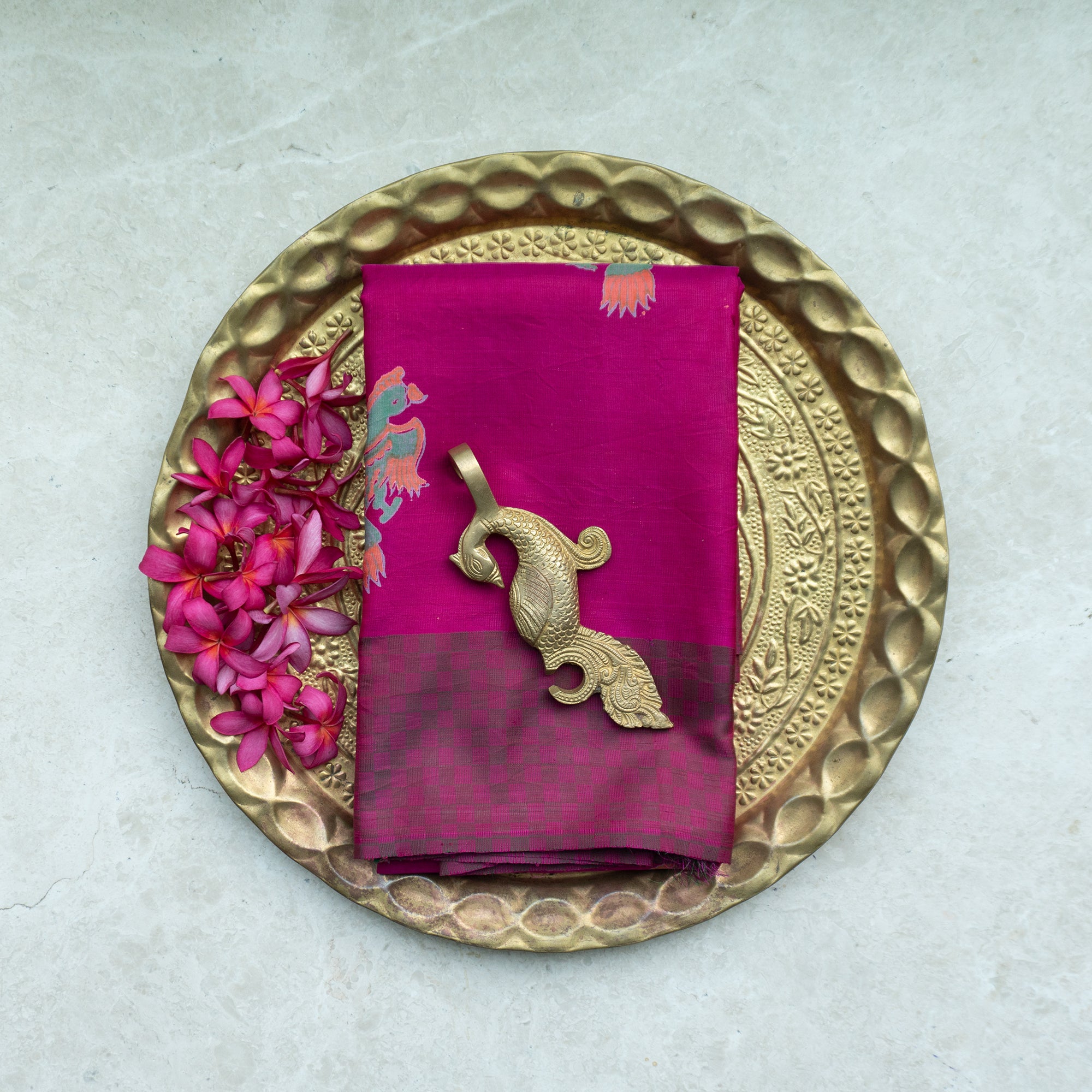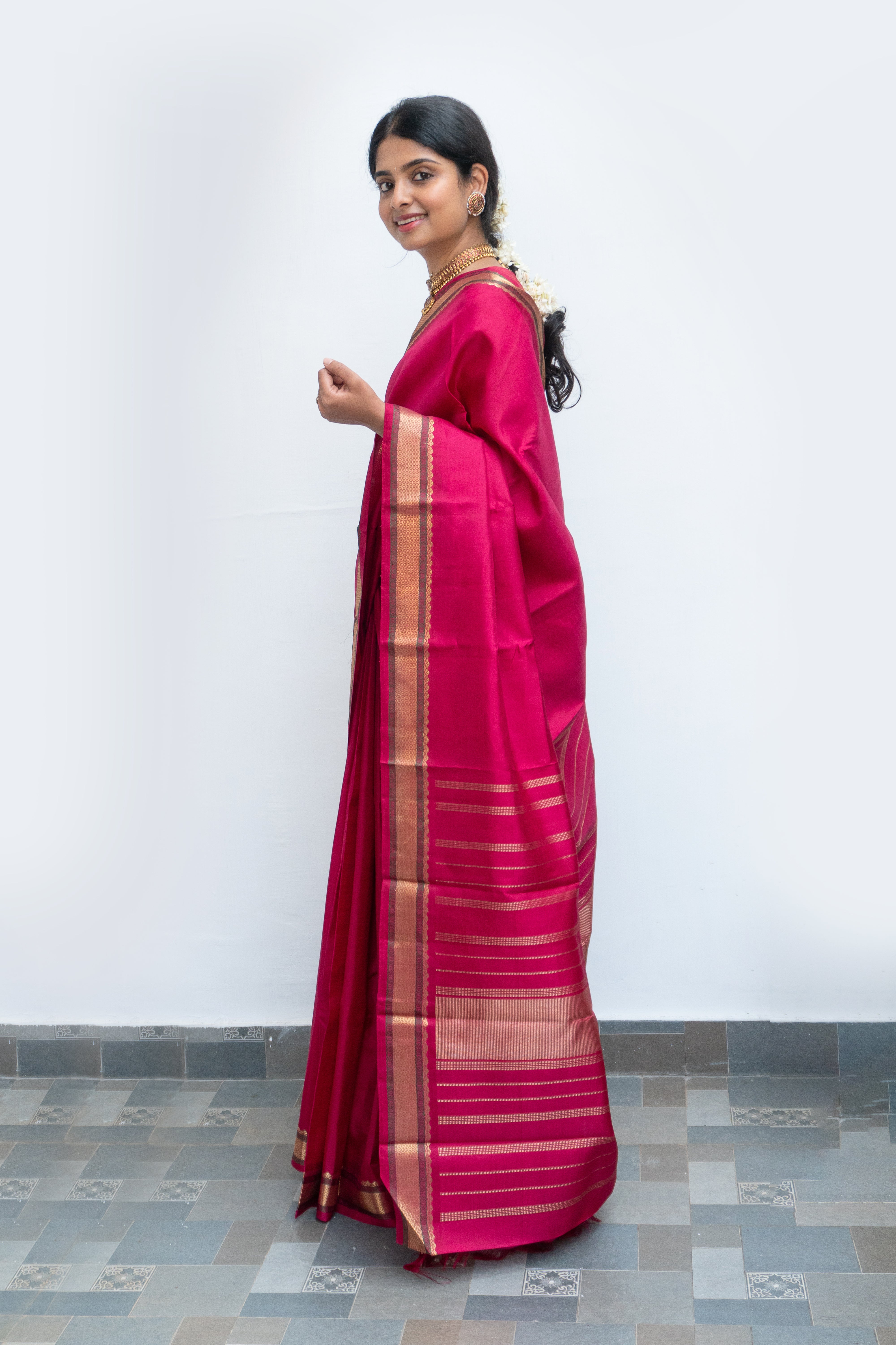 Deep Purple Kanjivaram Silk Saree with Gold Zari Border and Seer Pallu