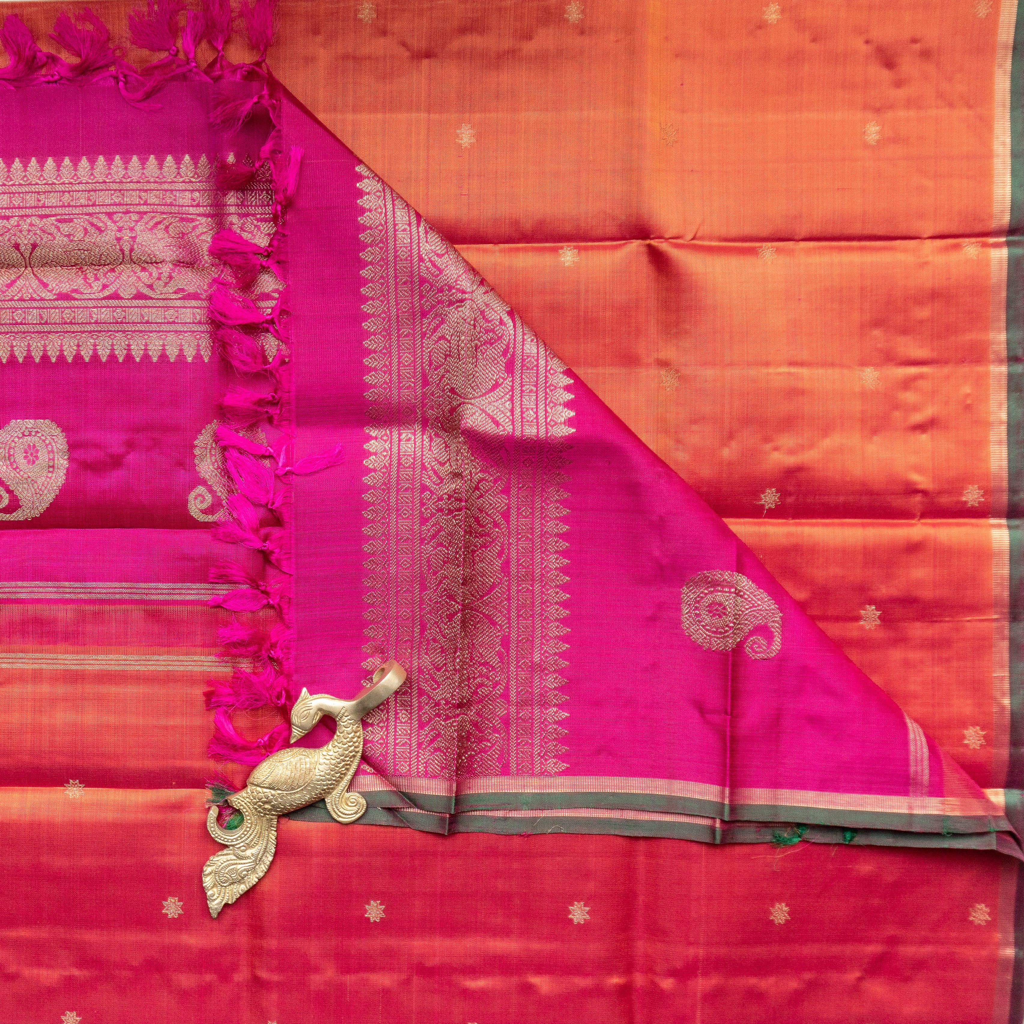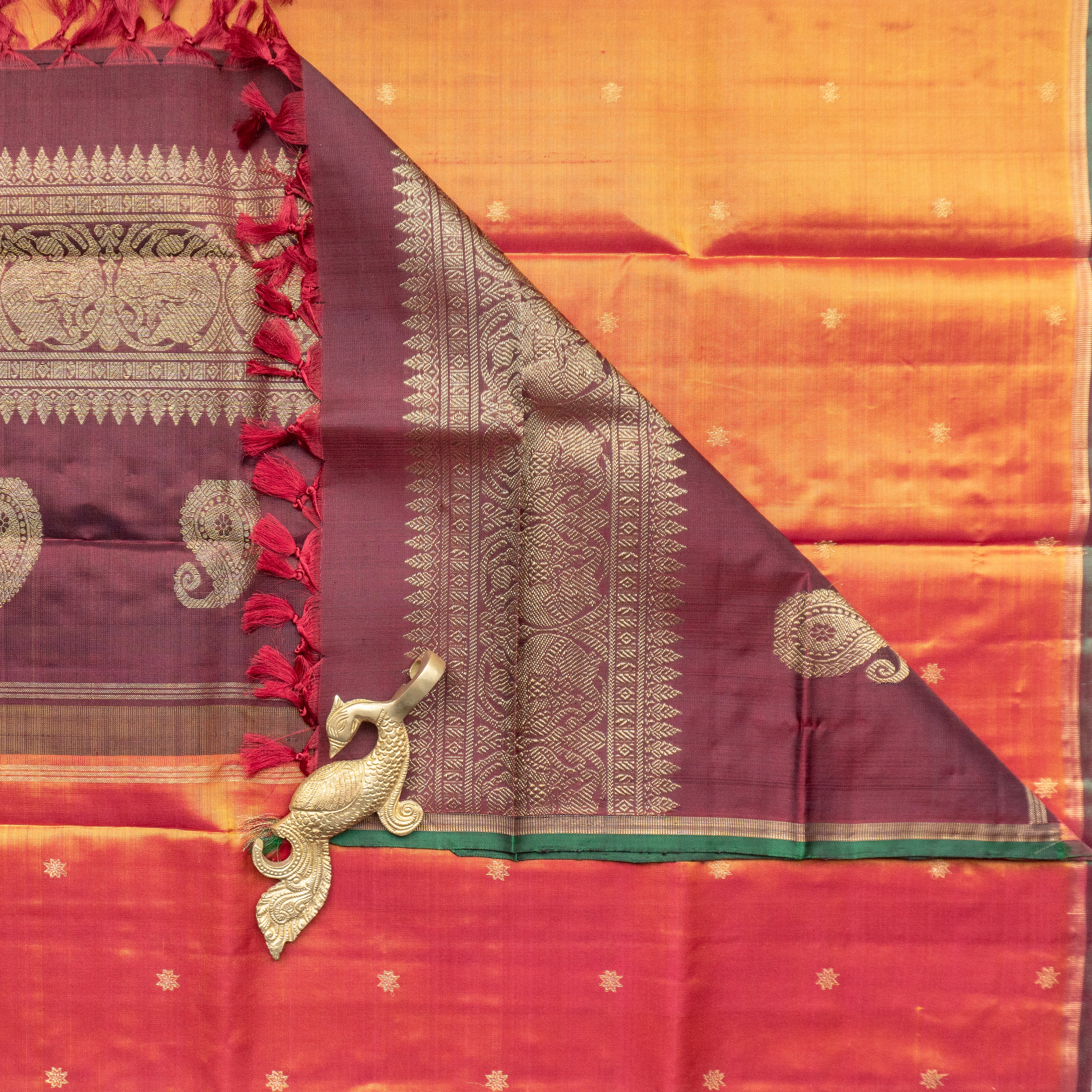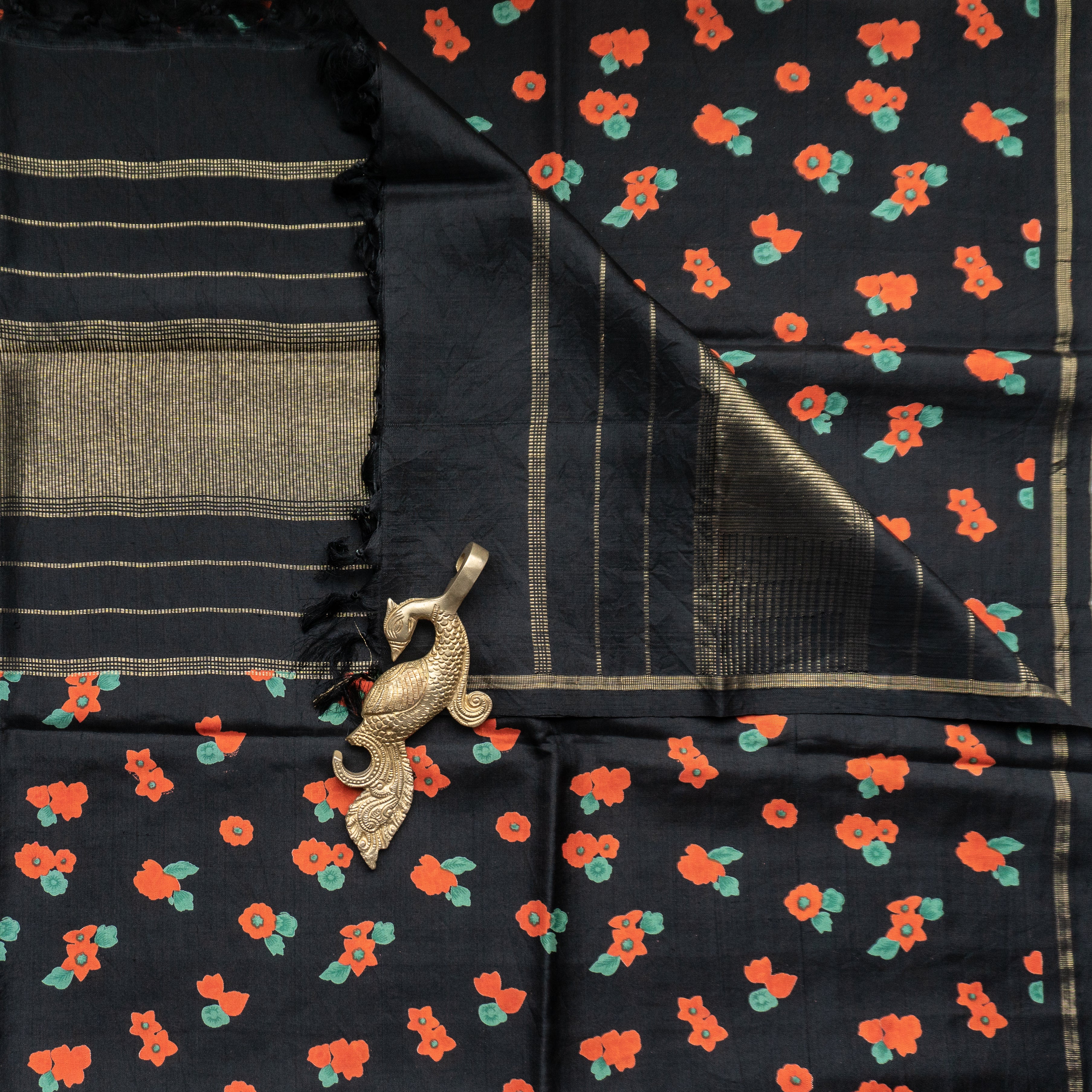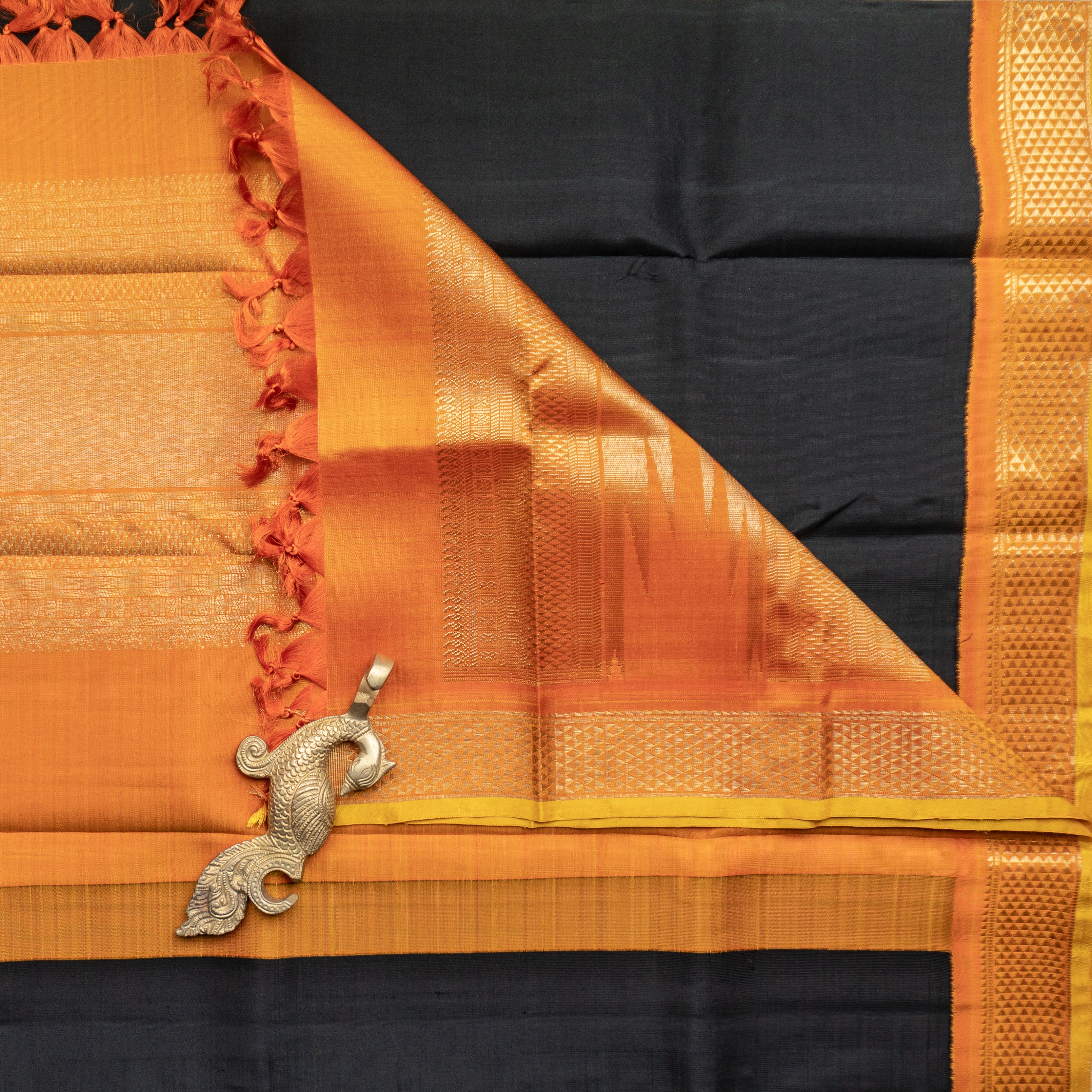 Black Kanjivaram Duppatta With Orange “Aramadam” Border