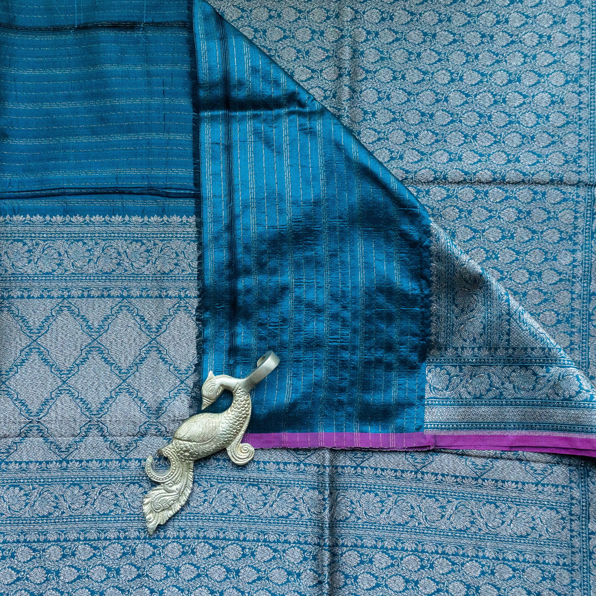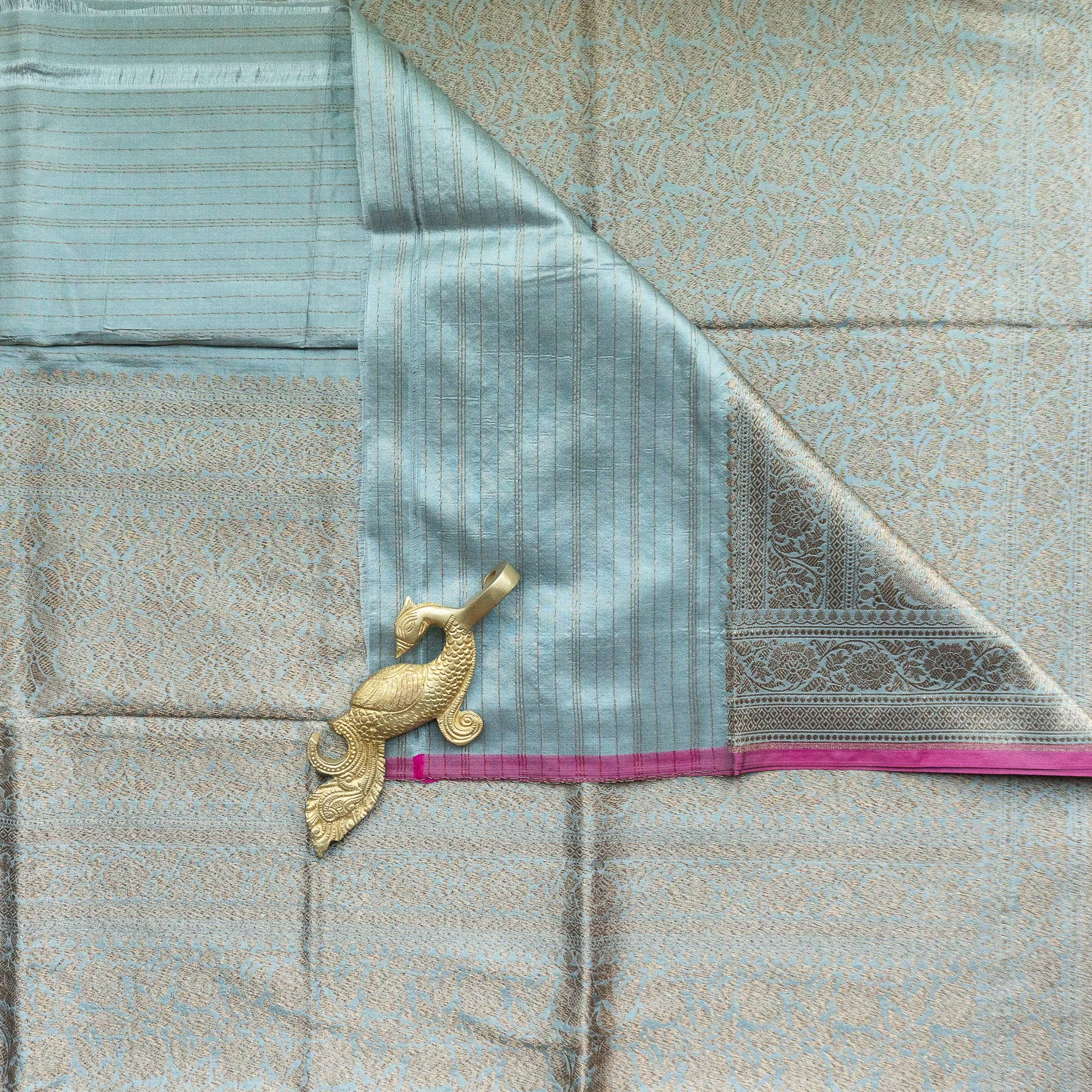 Greyish Blue Banarasi Silk Duppatta
