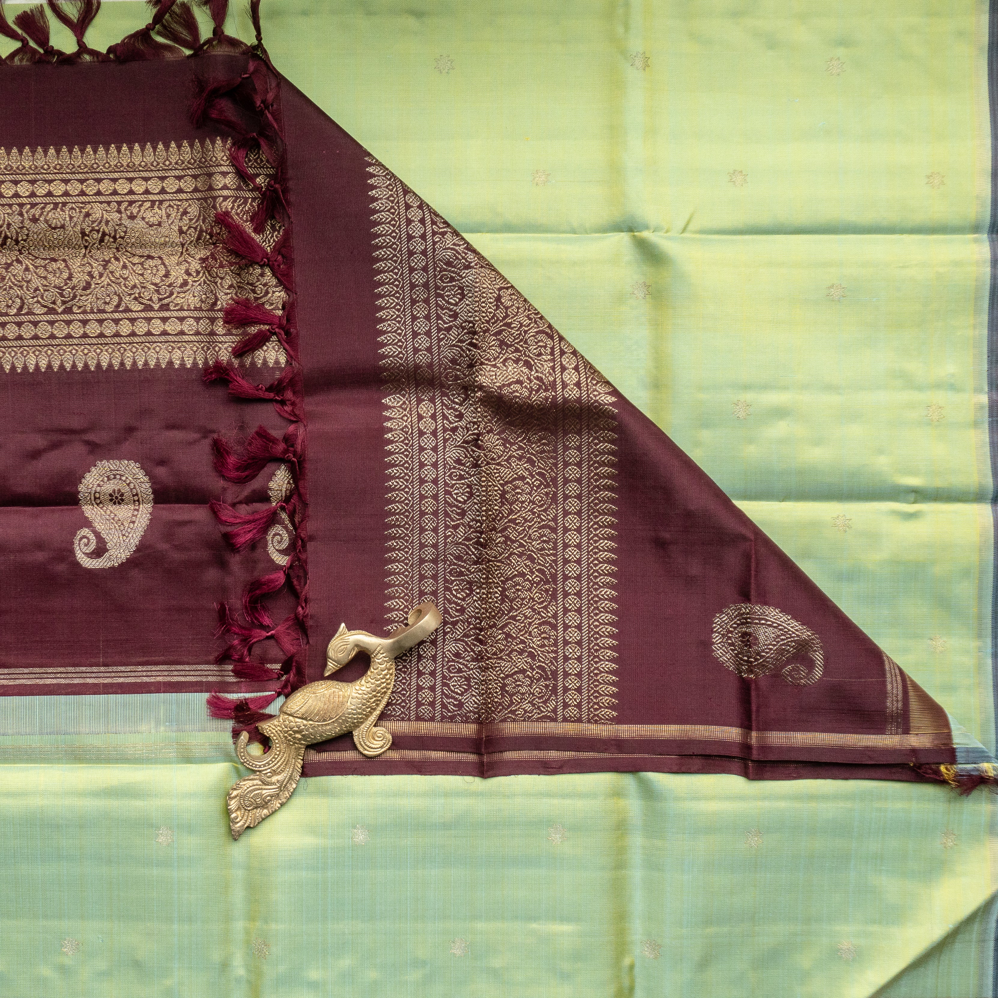 Bottle Green Kanjivaram Duppatta With Florals