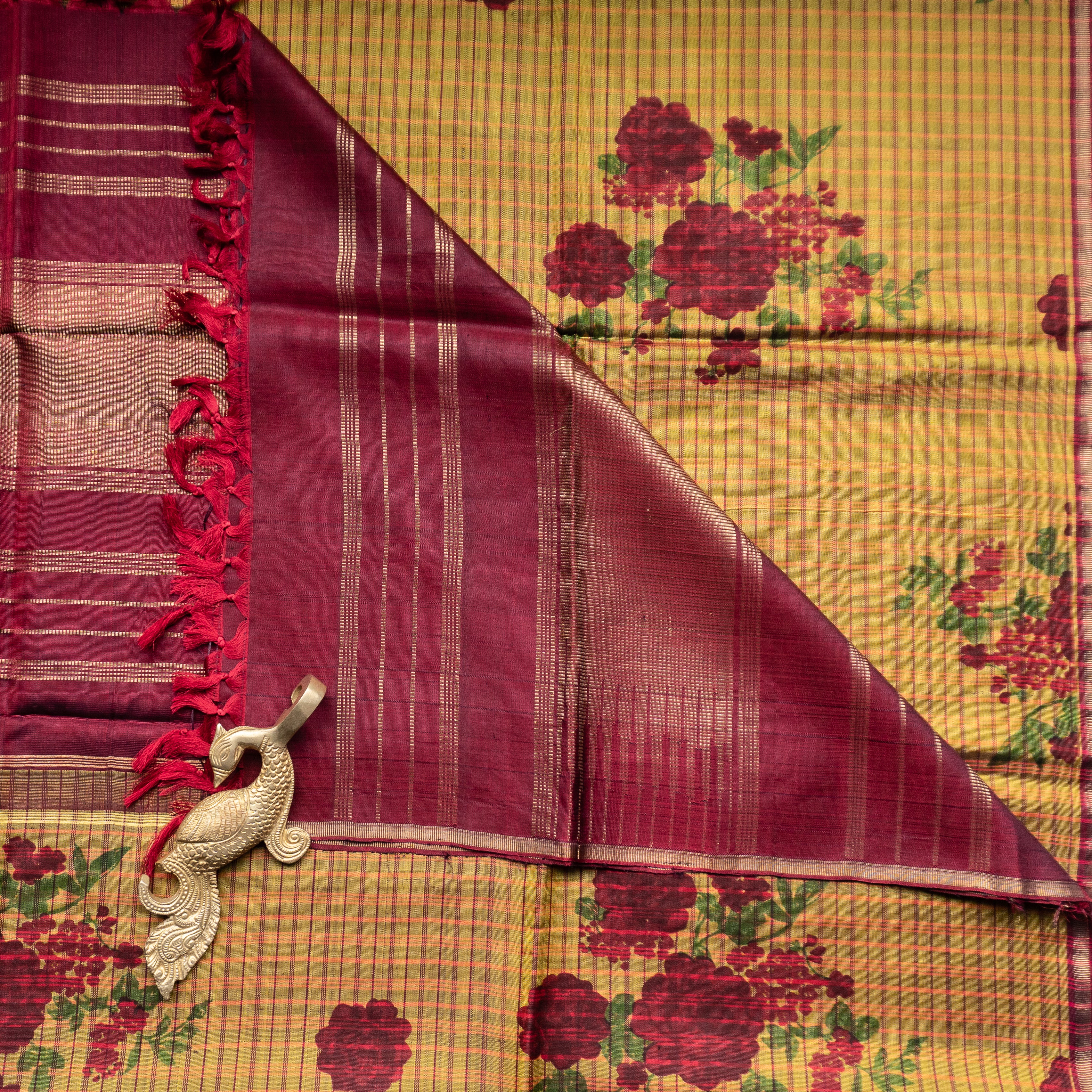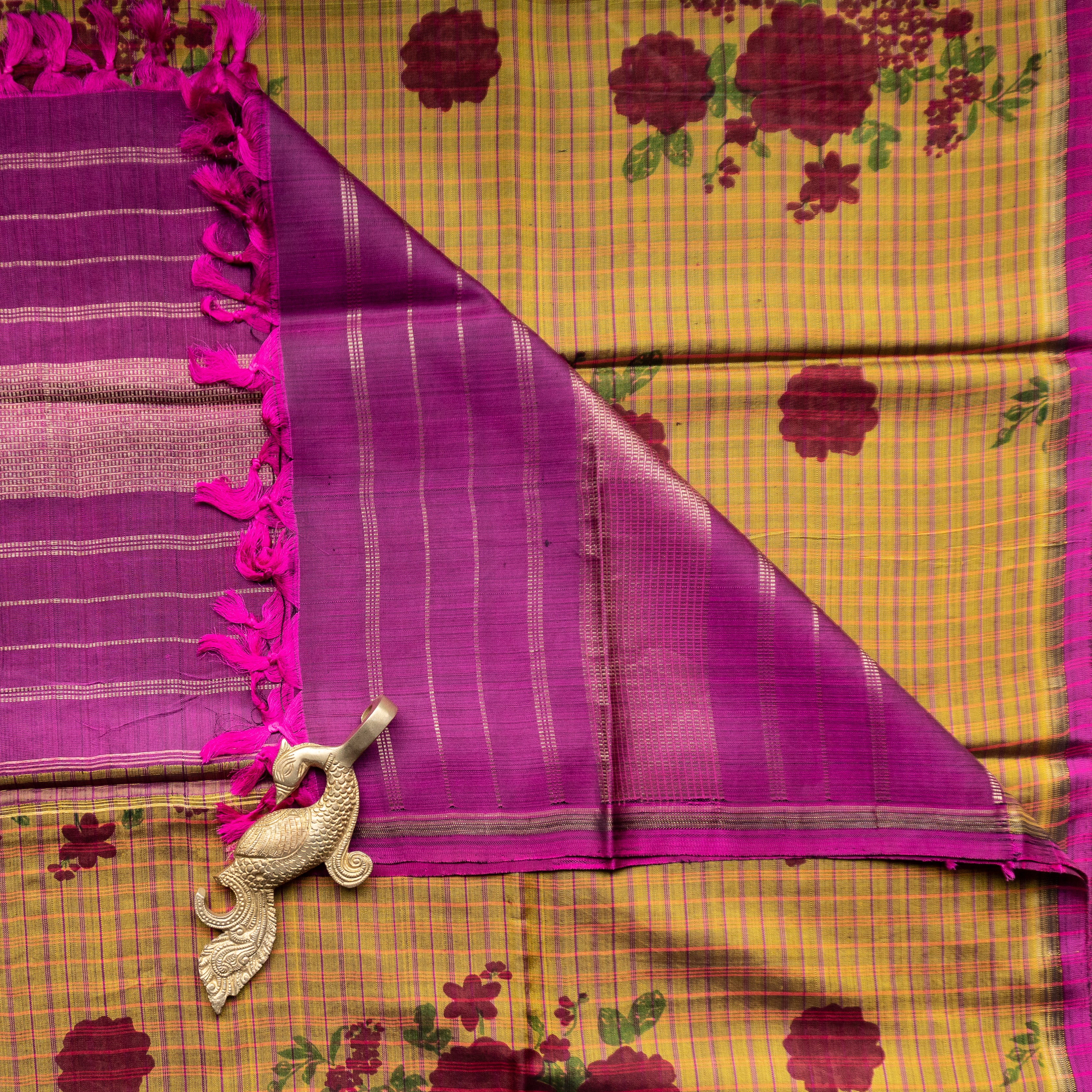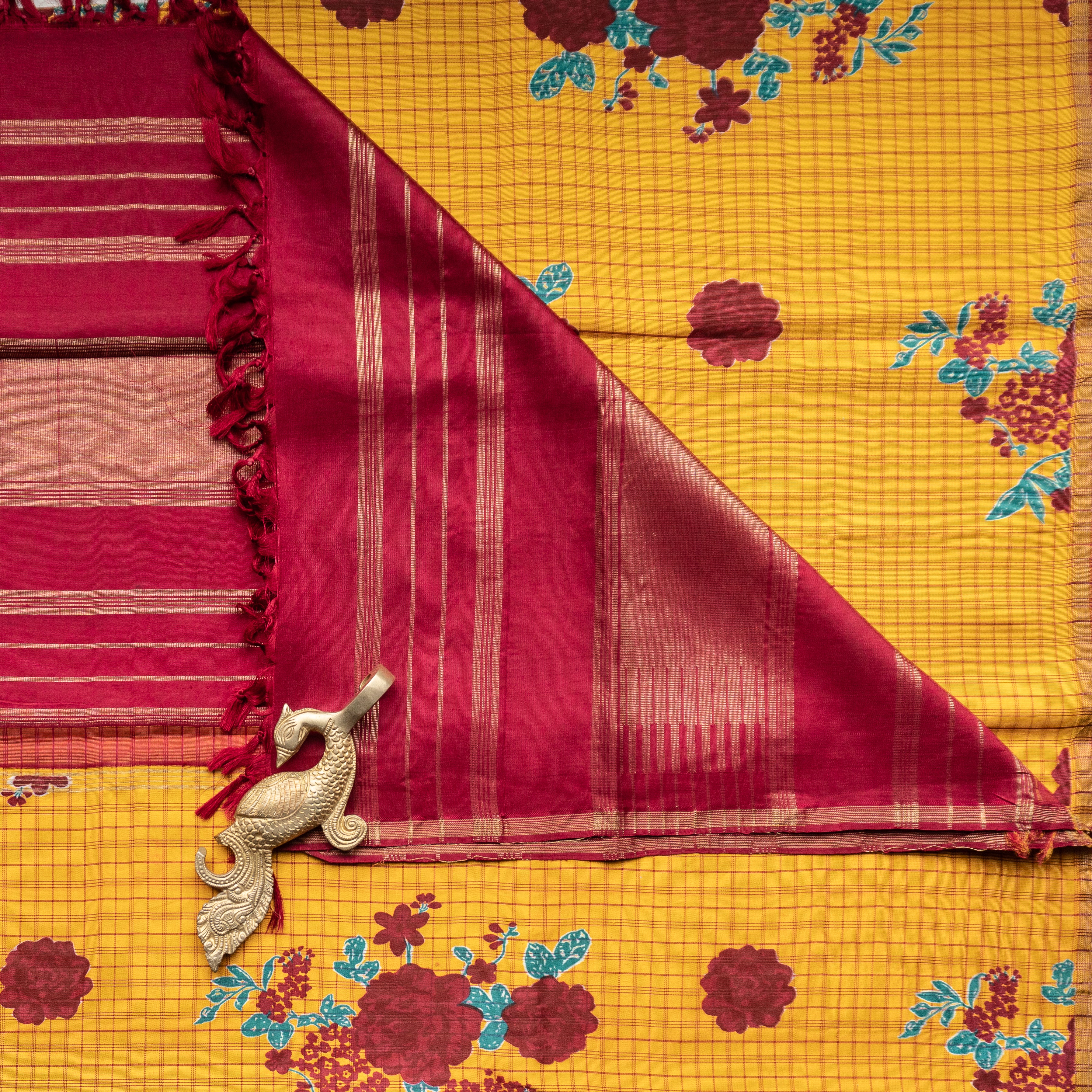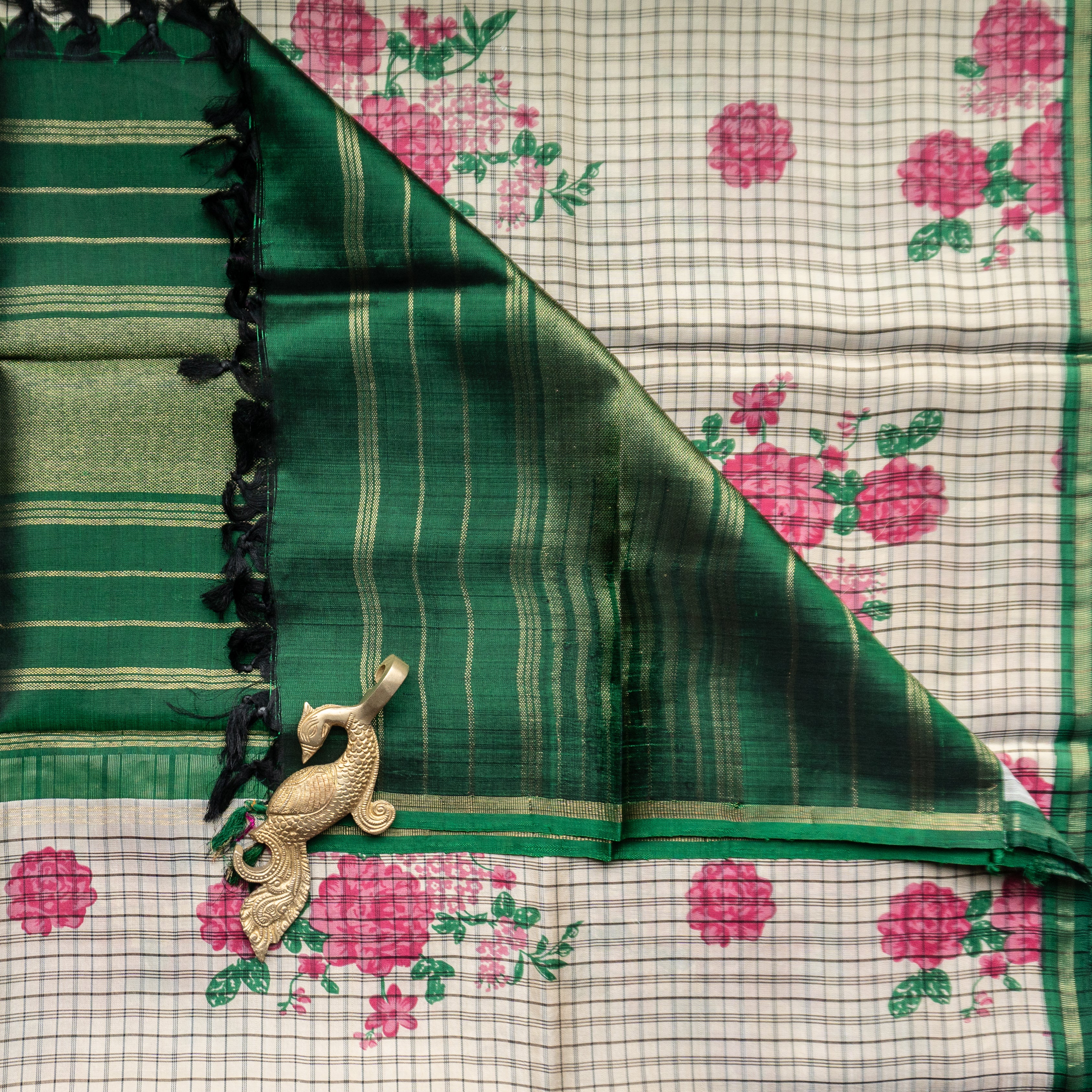 Checked Kanjivaram Floral Duppatta