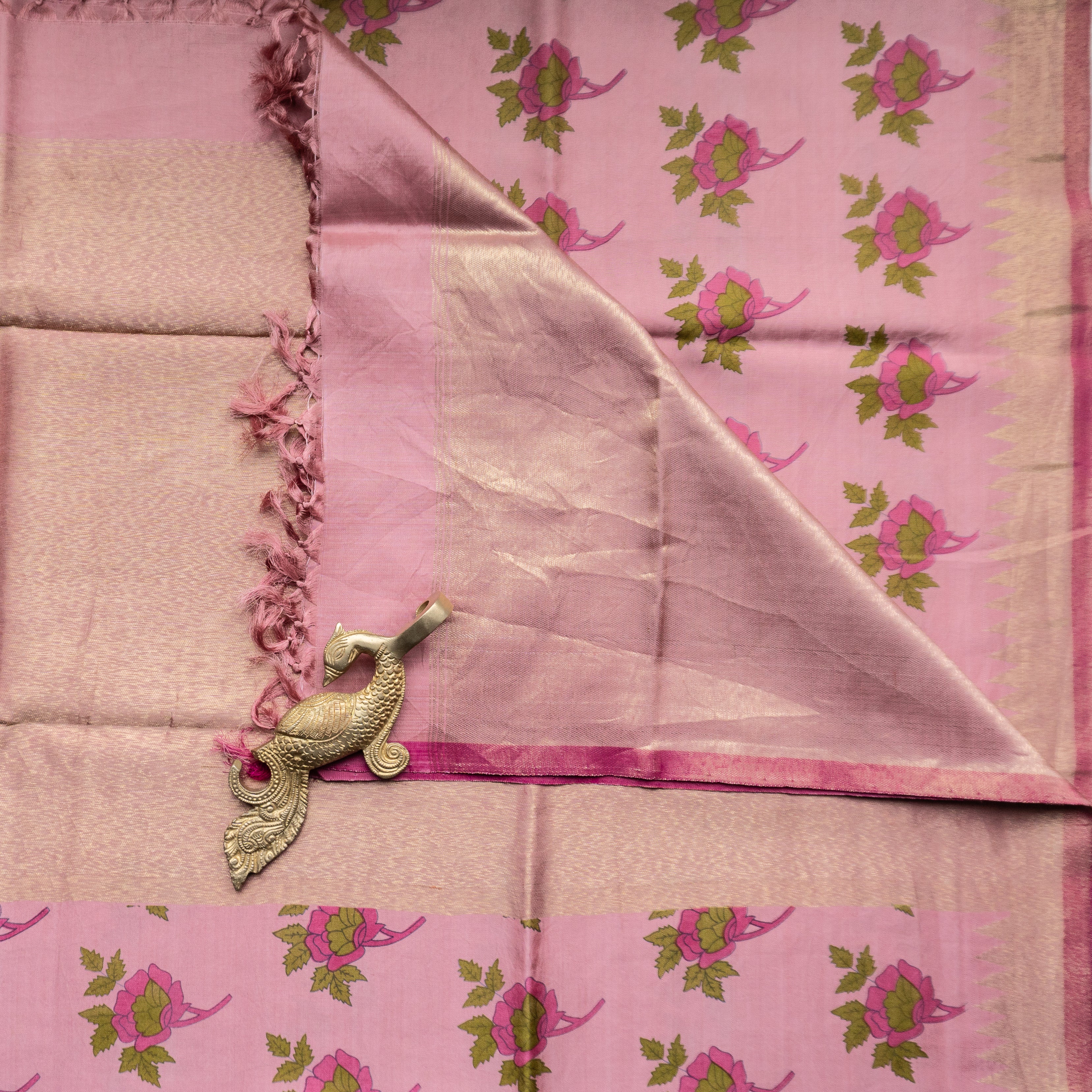 Pink Floral With Temple Border Kanjivaram Dupatta