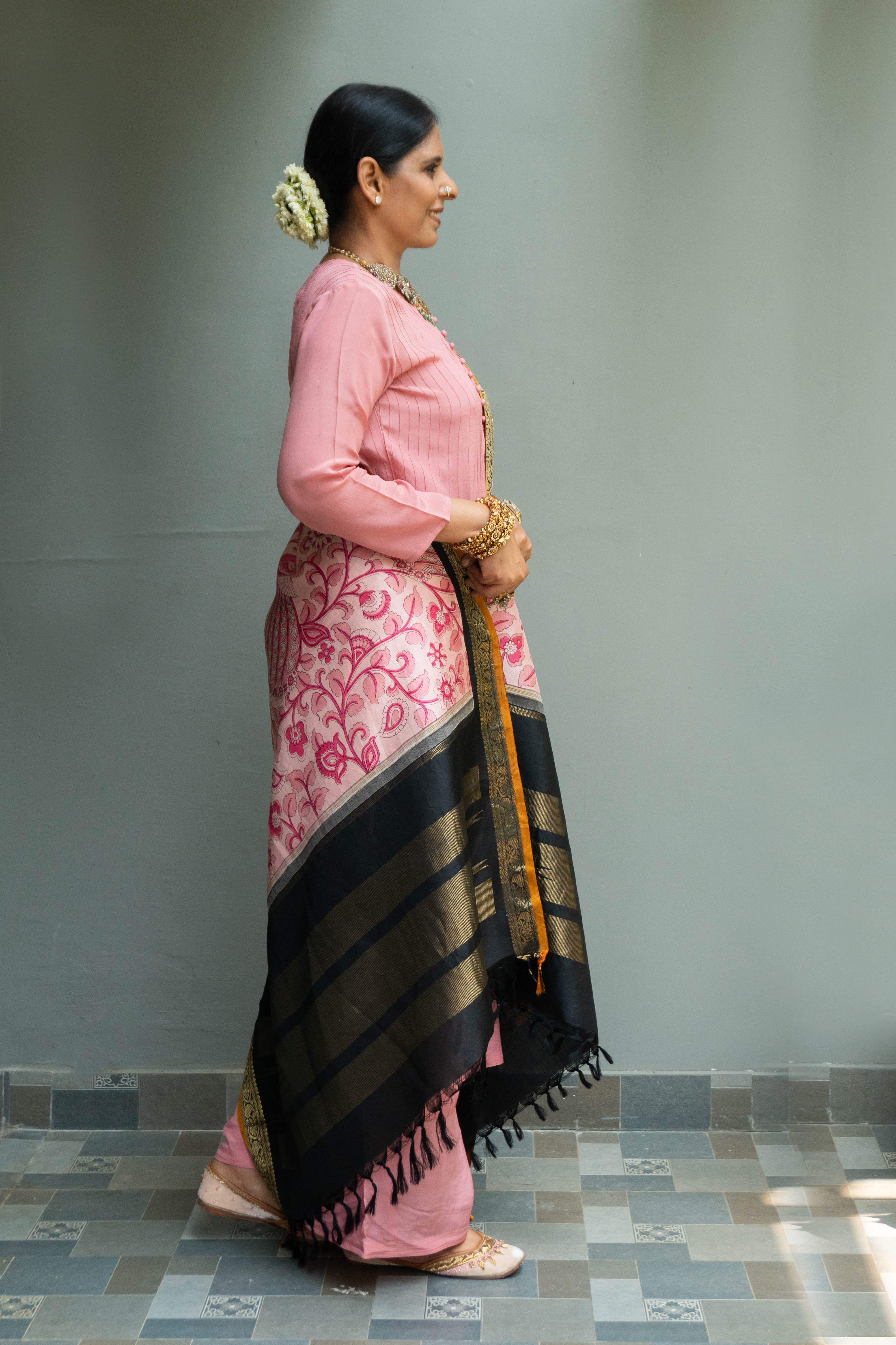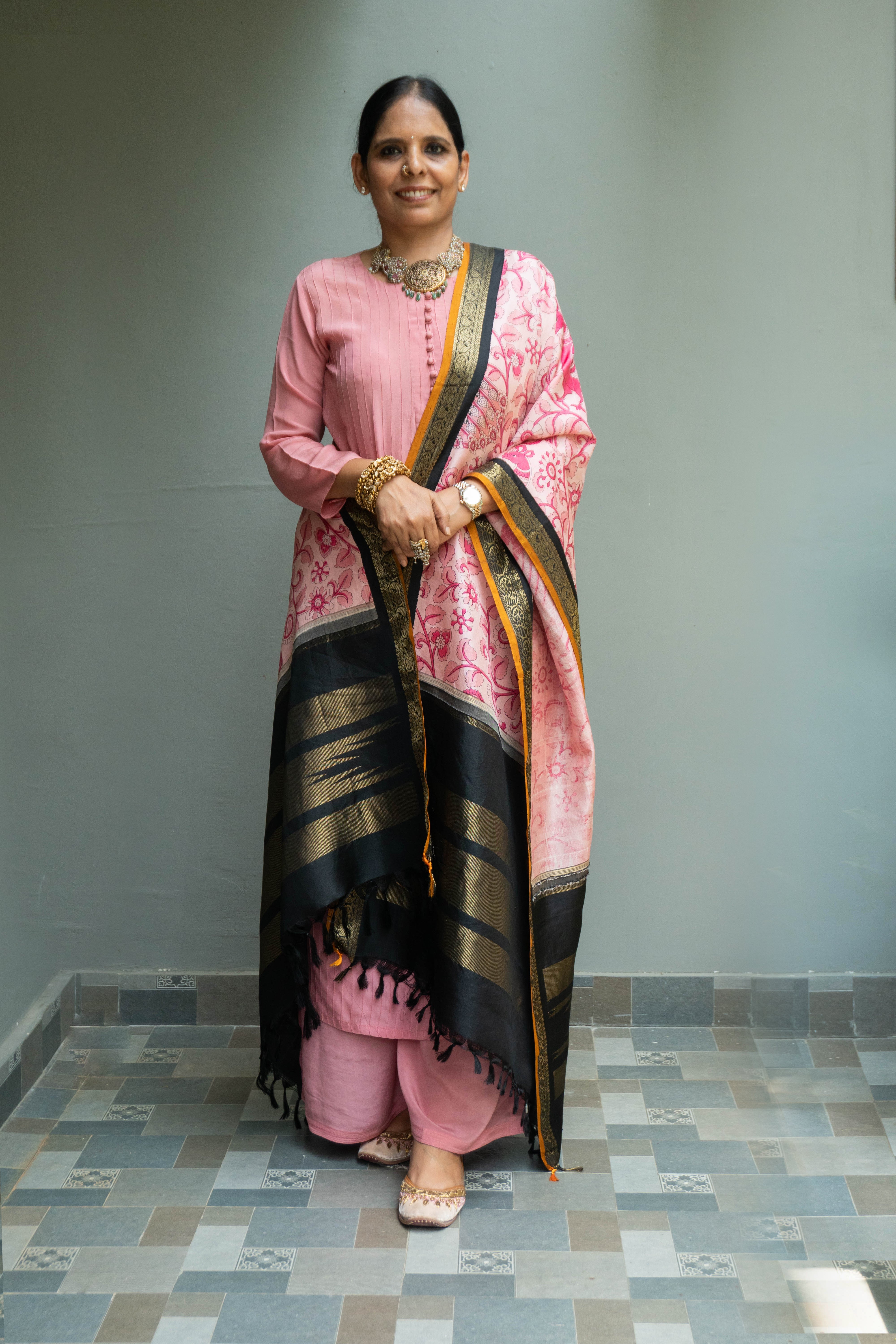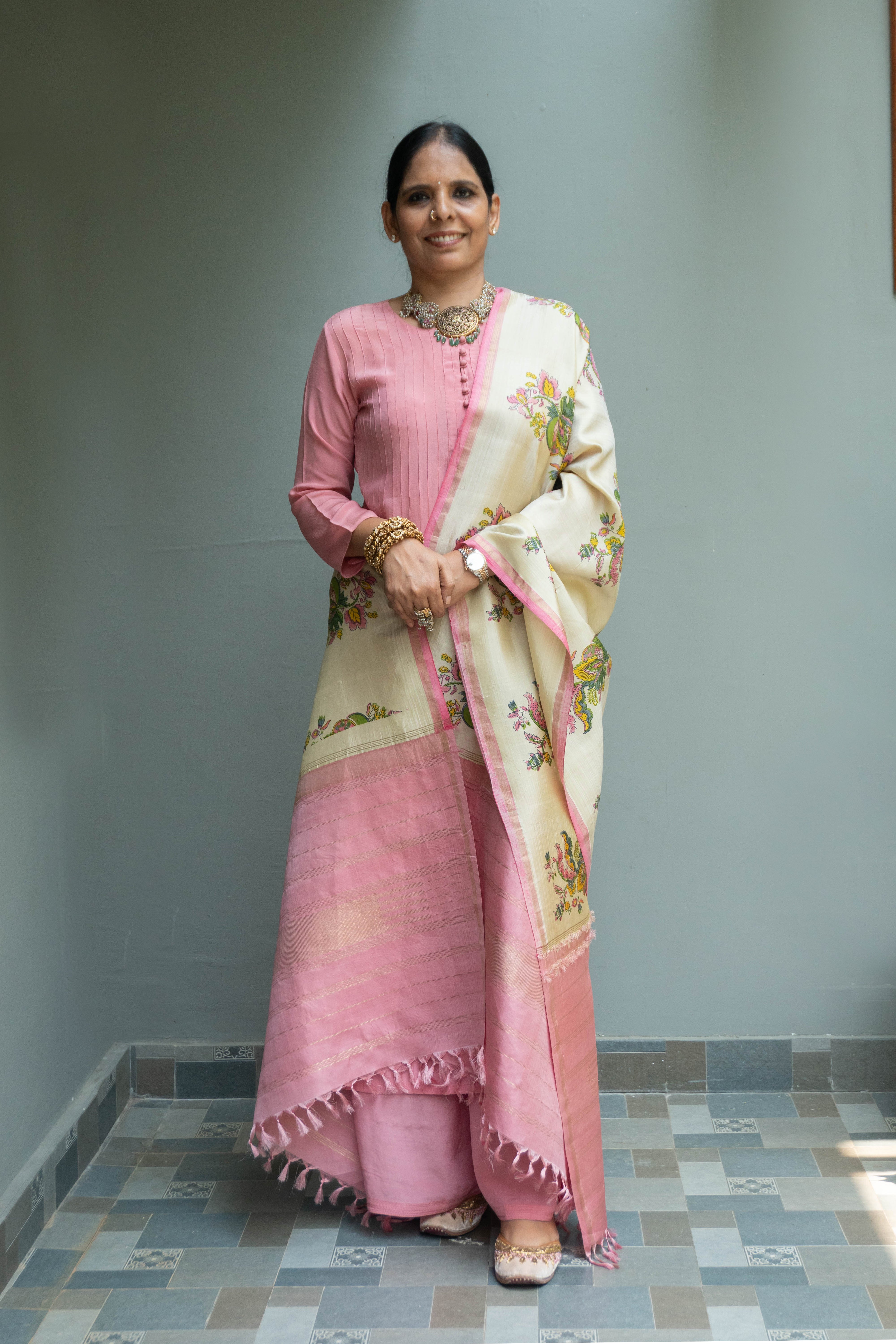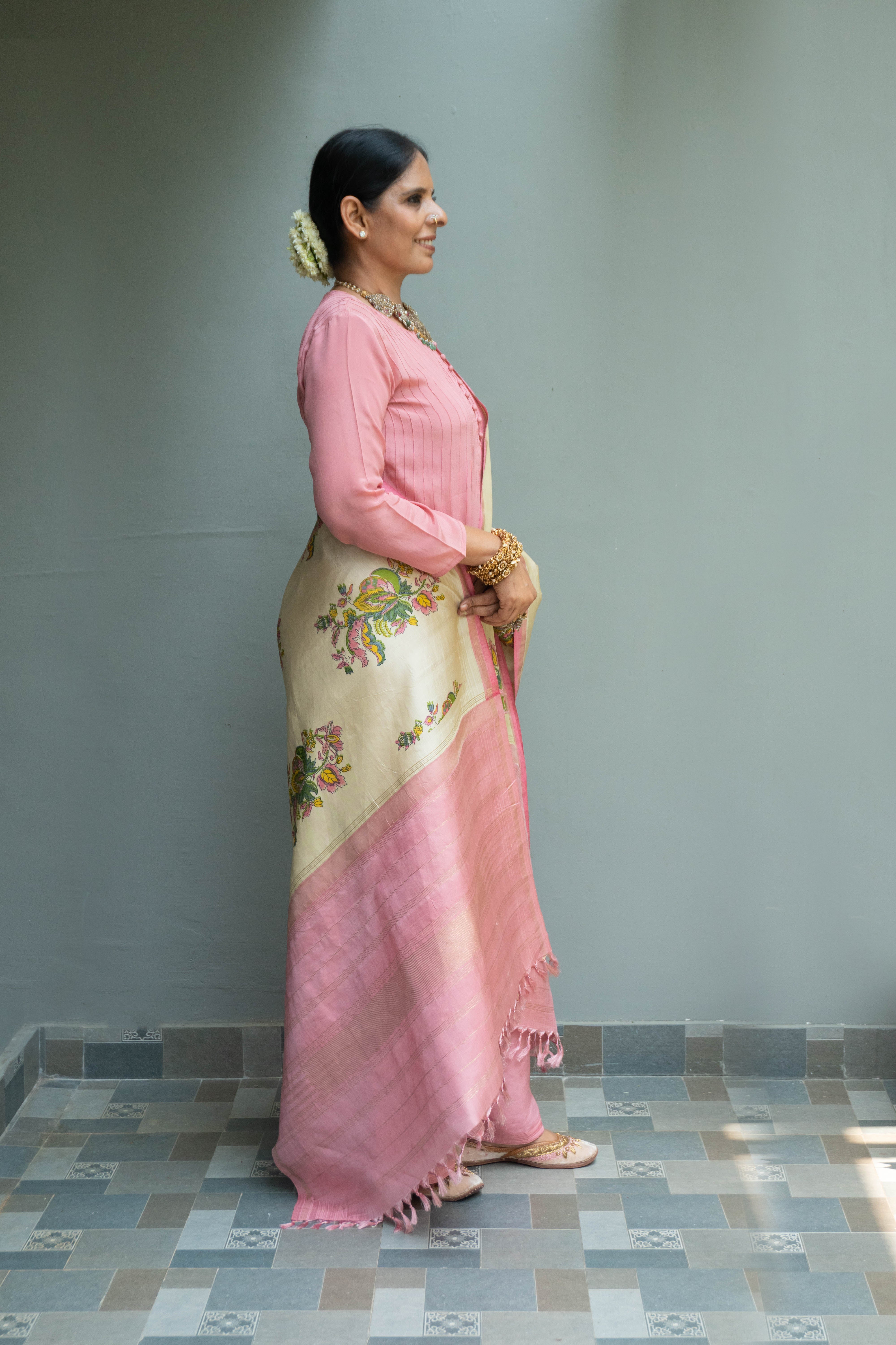 Pastel Pink Kalamakari Kanjivaram Duppatta