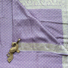 This lilac moonga banarasi silk Duppatta features a delicate dot pattern on the body and an intricate woven border. The soft sheen of moonga silk adds a luxurious touch, making it perfect for festive or formal occasions.