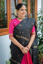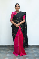 Black and Pink Half-and-Half Kanjivaram Silk Saree with Zari Motifs