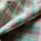 Crafted from luxurious Kanjivaram silk, this fabric features the traditional pazhum pazhmum checks pattern. The perfectly aligned checks brings visual harmony while the shimmering zari work adds an opulent touch.
