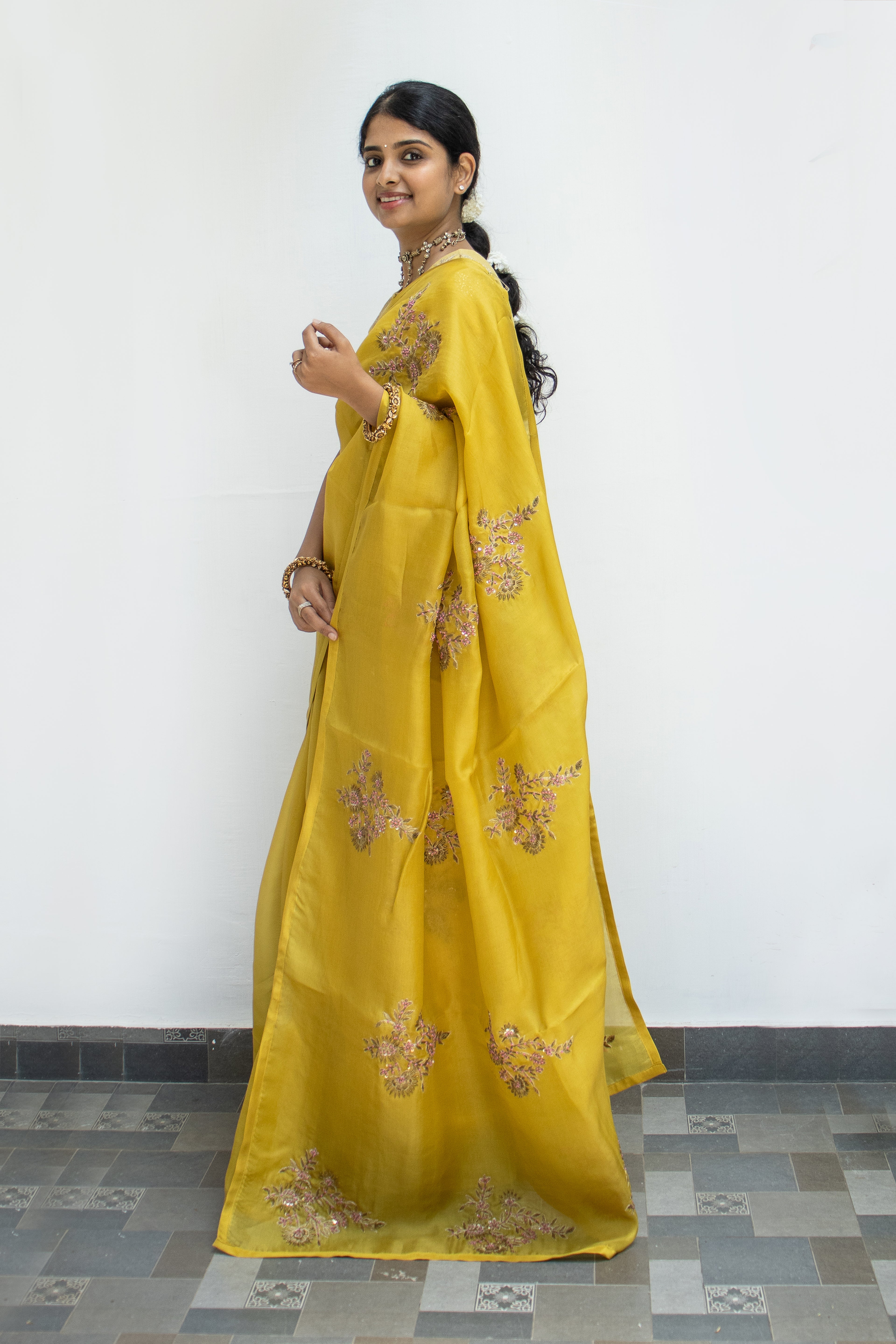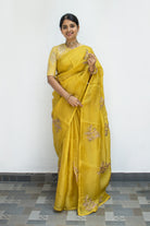 Yellow Organza Silk Saree with Zardosi Embroidery