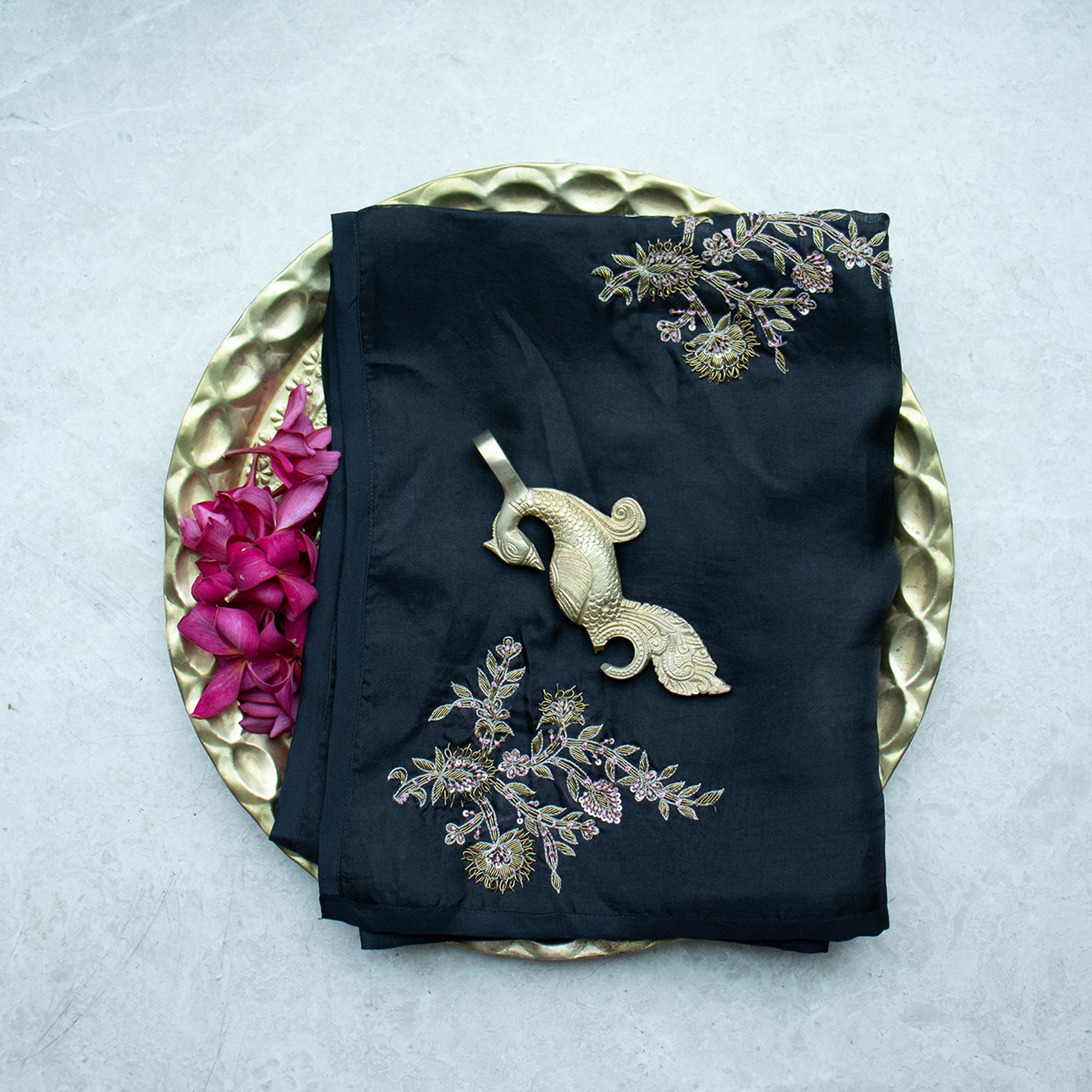Blending traditional artistry with contemporary refinement, this saree stands out for its timeless appeal and exquisite finish. Perfect for festive occasions, weddings, and intimate celebrations, it is designed for those who appreciate fine craftsmanship and understated luxury.