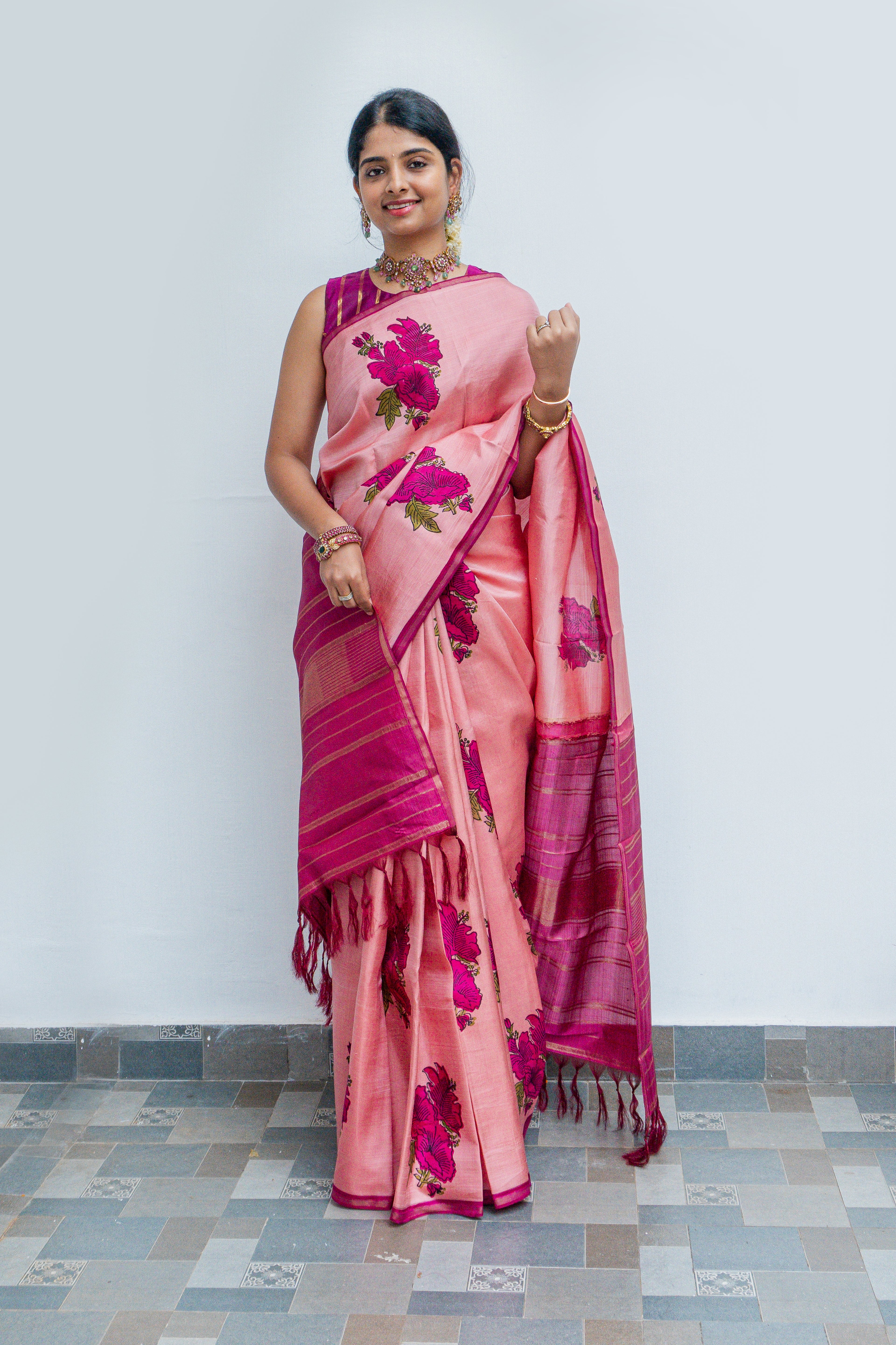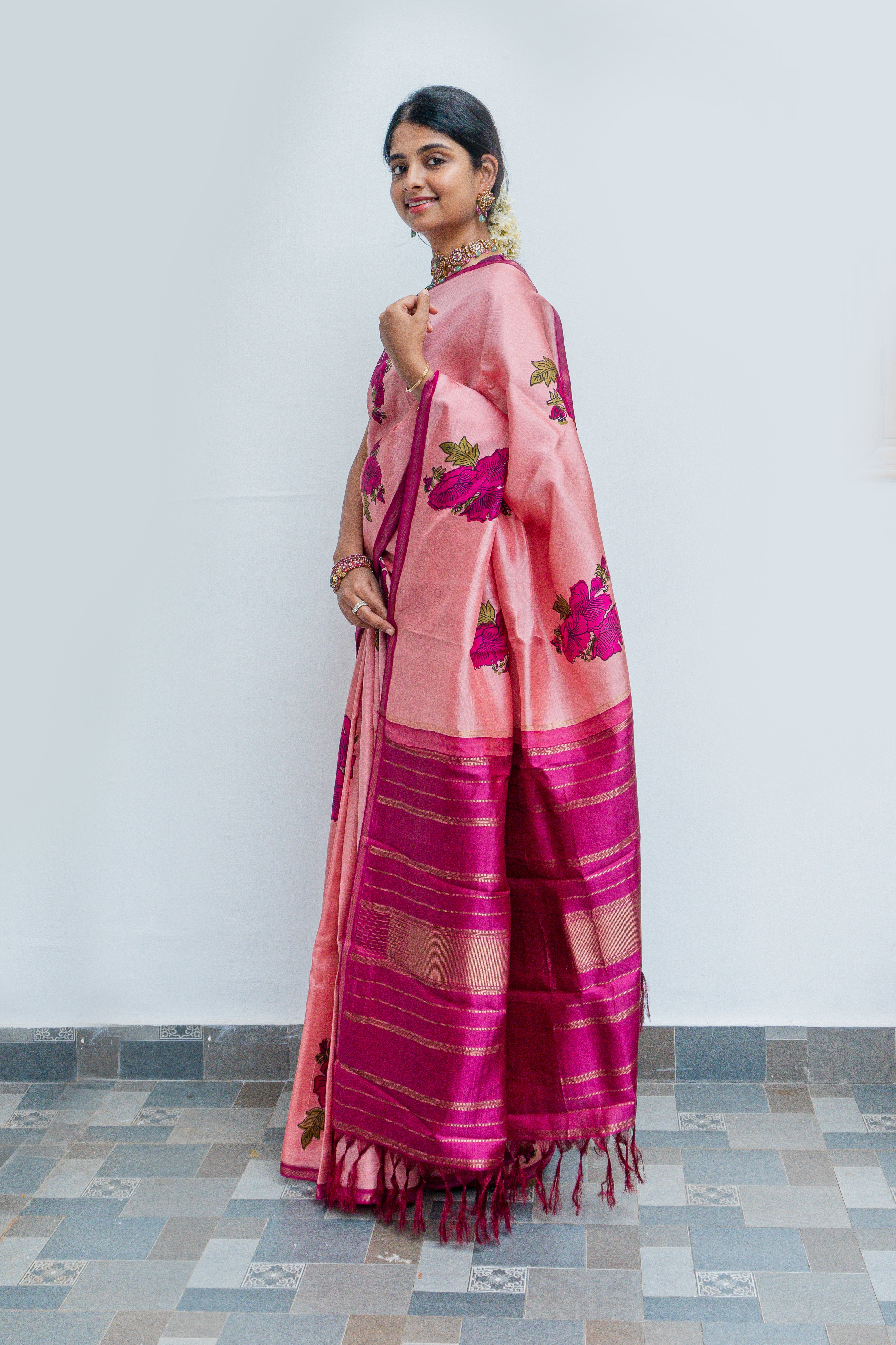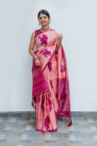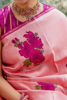 Pastel Pink Kanjivaram Silk Sarees with Hibiscus Motifs