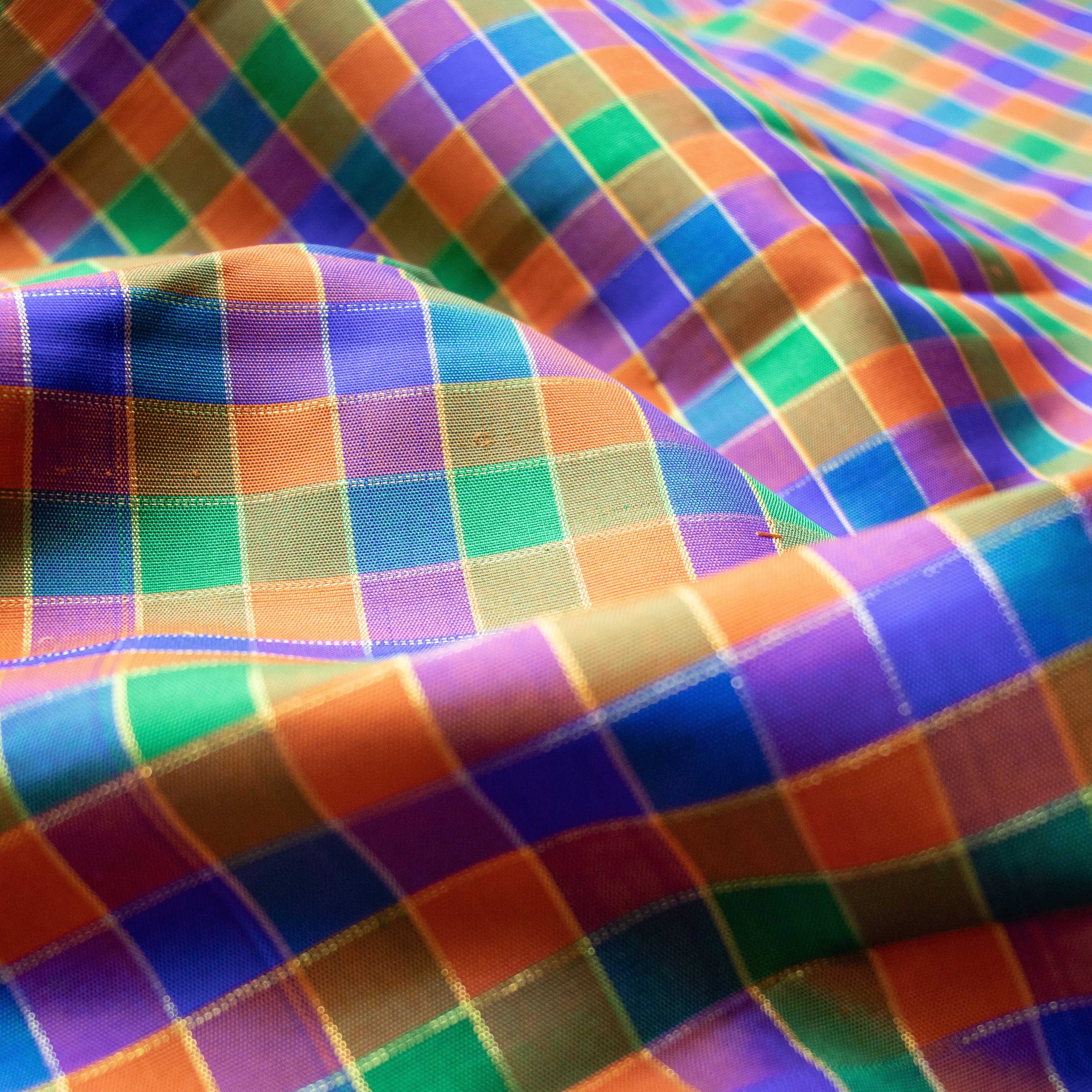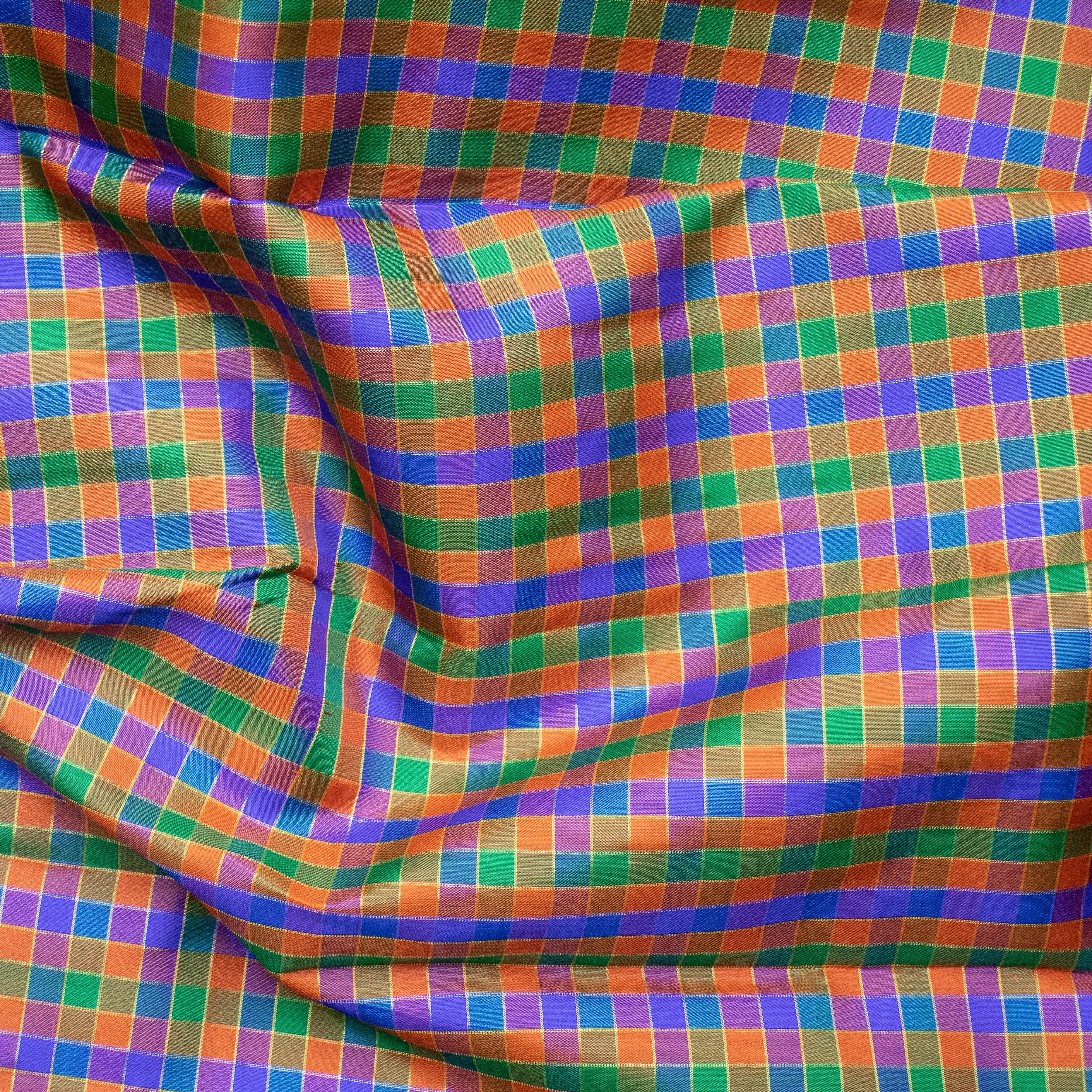 Ideal for pairing with plain or contrast silk sarees, this vibrant checked blouse fabric elevates festive and wedding ensembles with its rich heritage charm.