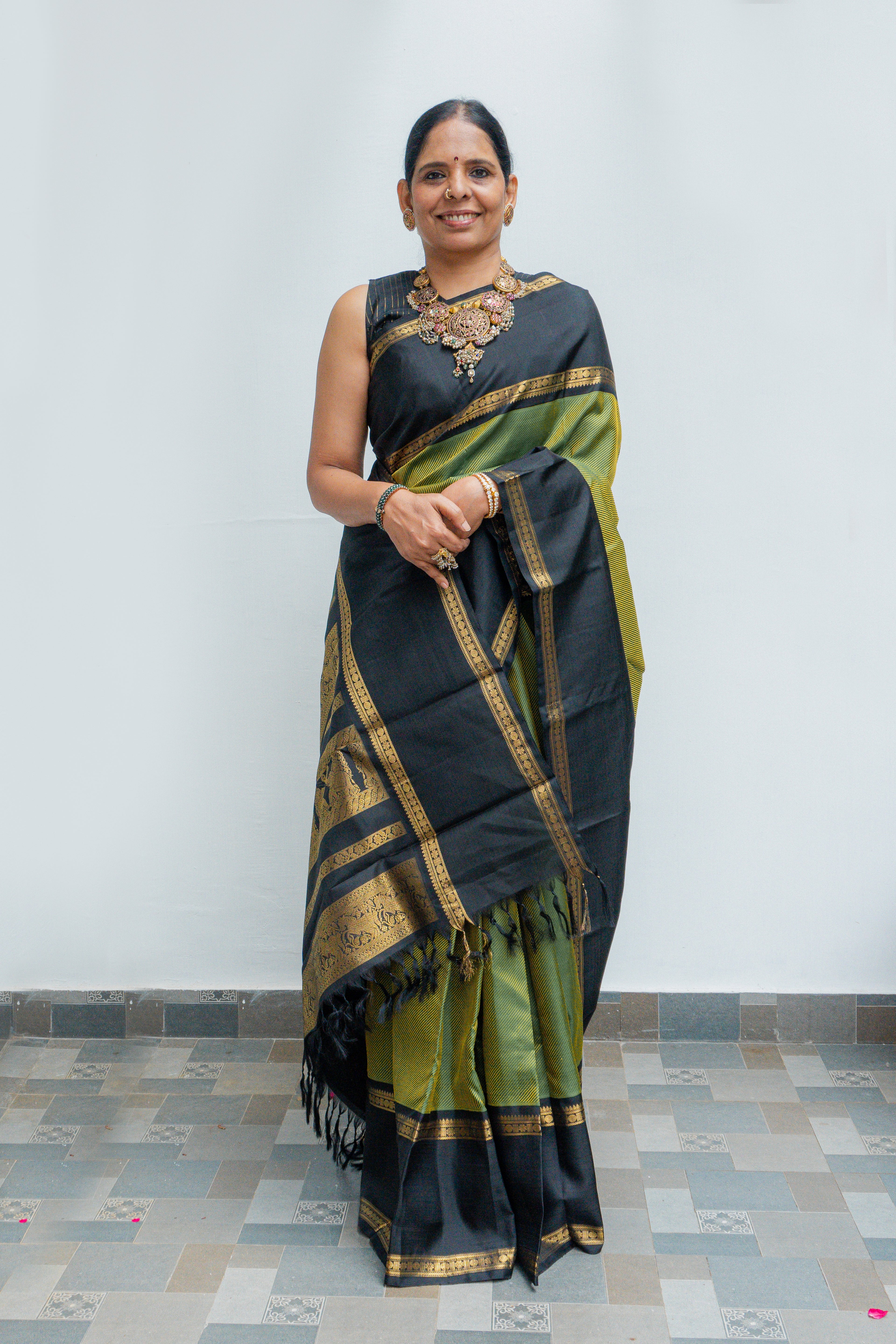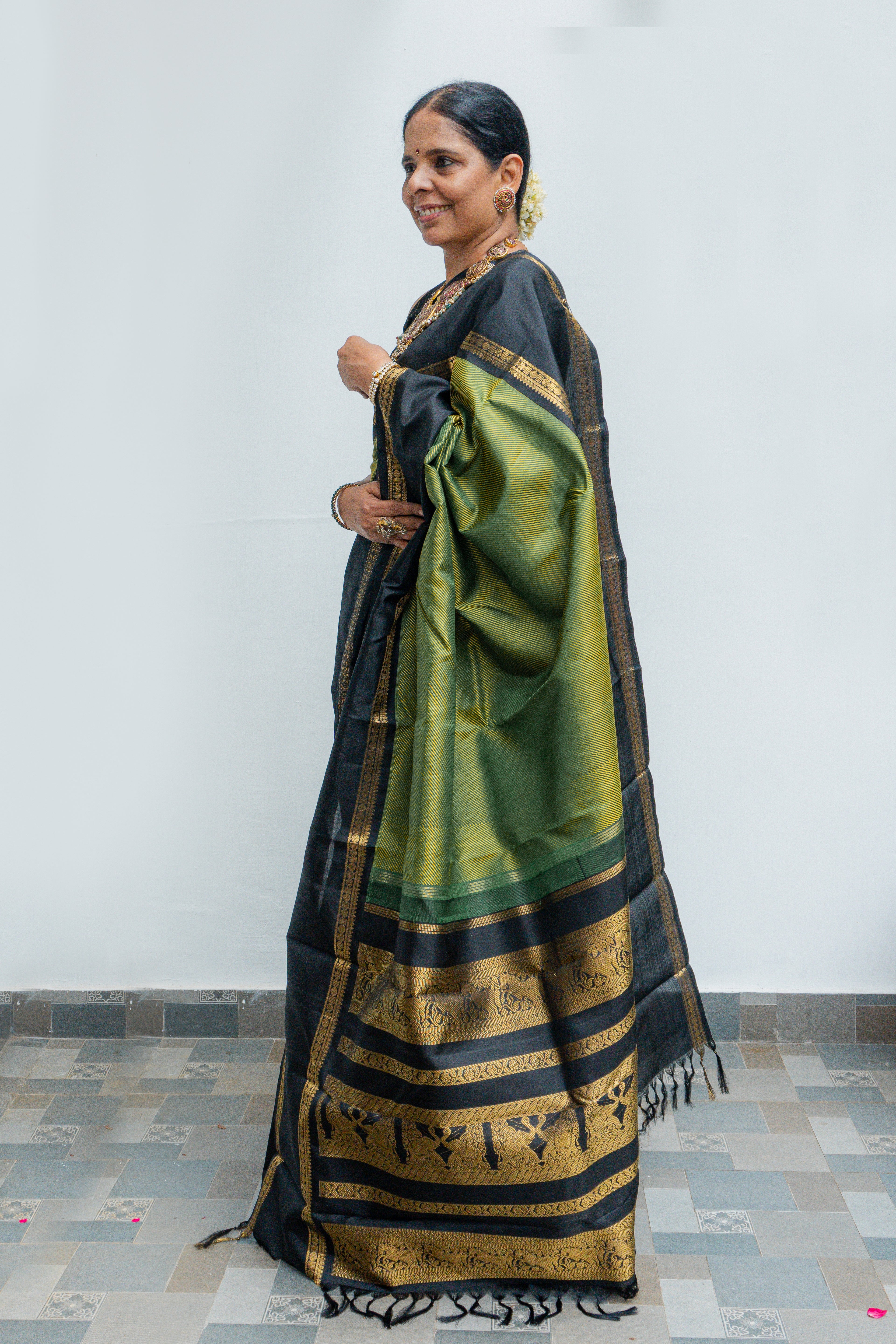Rich Green Kanjivaram Silk Saree with Black Contrast Border