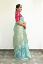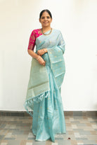 Kanchi Organza Silk Saree with Chakram & Kuthuvilakku Motifs
