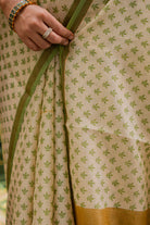 Tussar Silk Saree with Gold Zari Checks