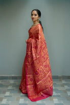 Orange Red Tussar Silk Saree