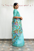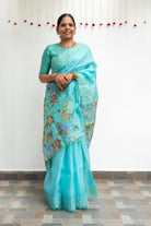 Blue Organza Cutwork Border Saree