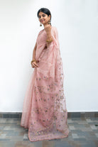 Pastel Pink Organza Silk Saree with Embroidered Floral Pallu