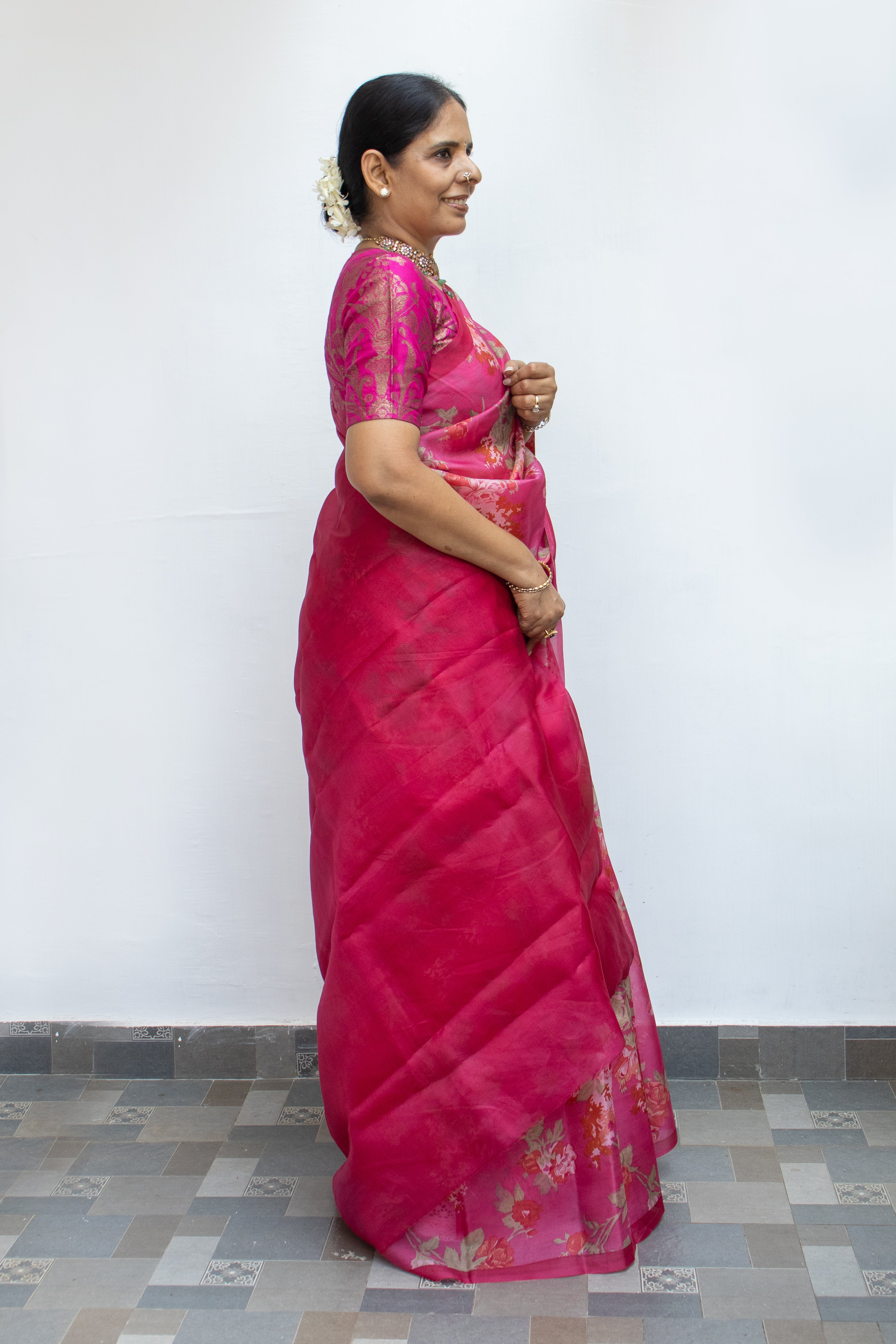 Pink Floral Organza Silk Saree