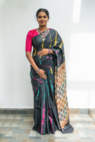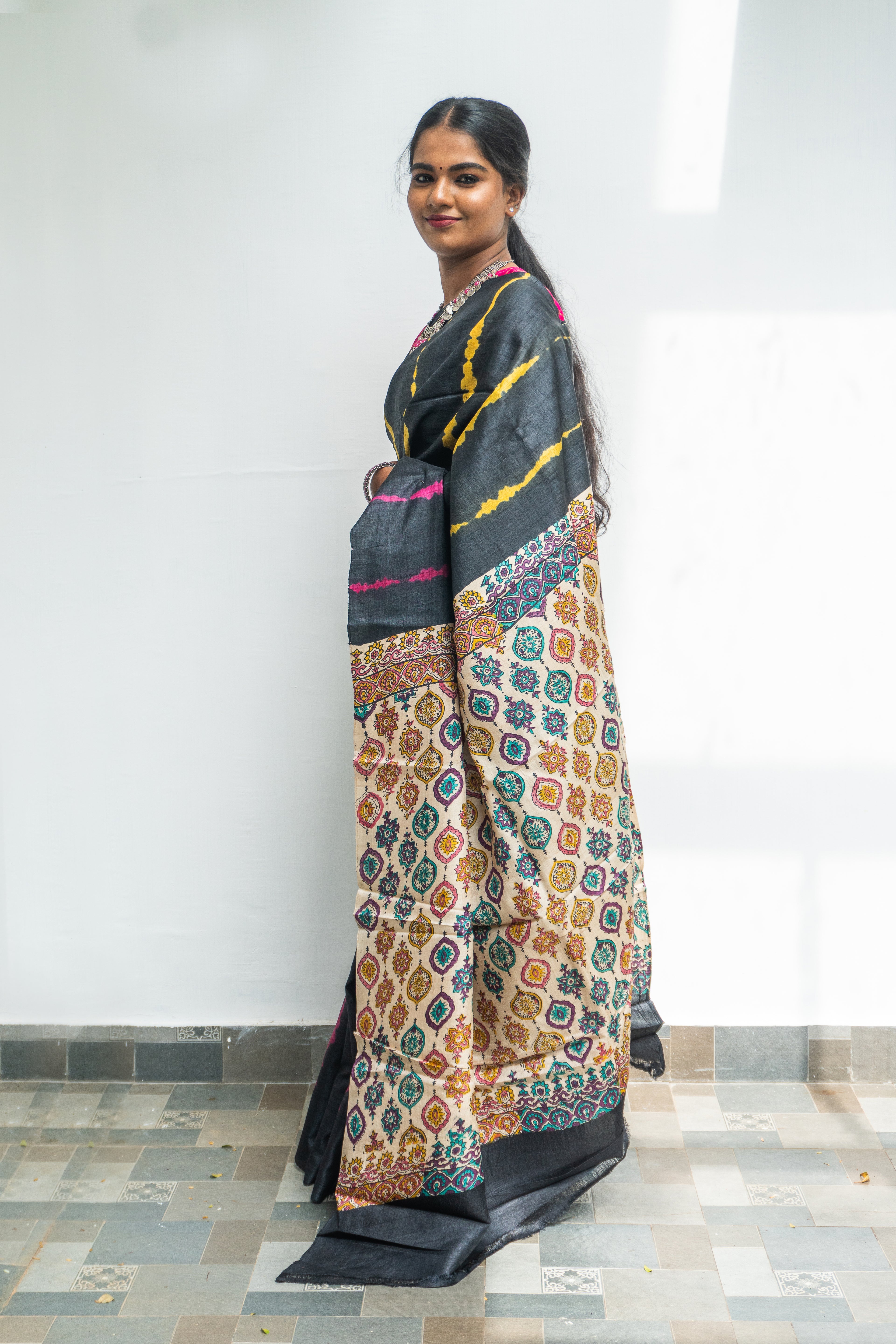 Black Tussar Silk Saree with Vibrant Shibori Body